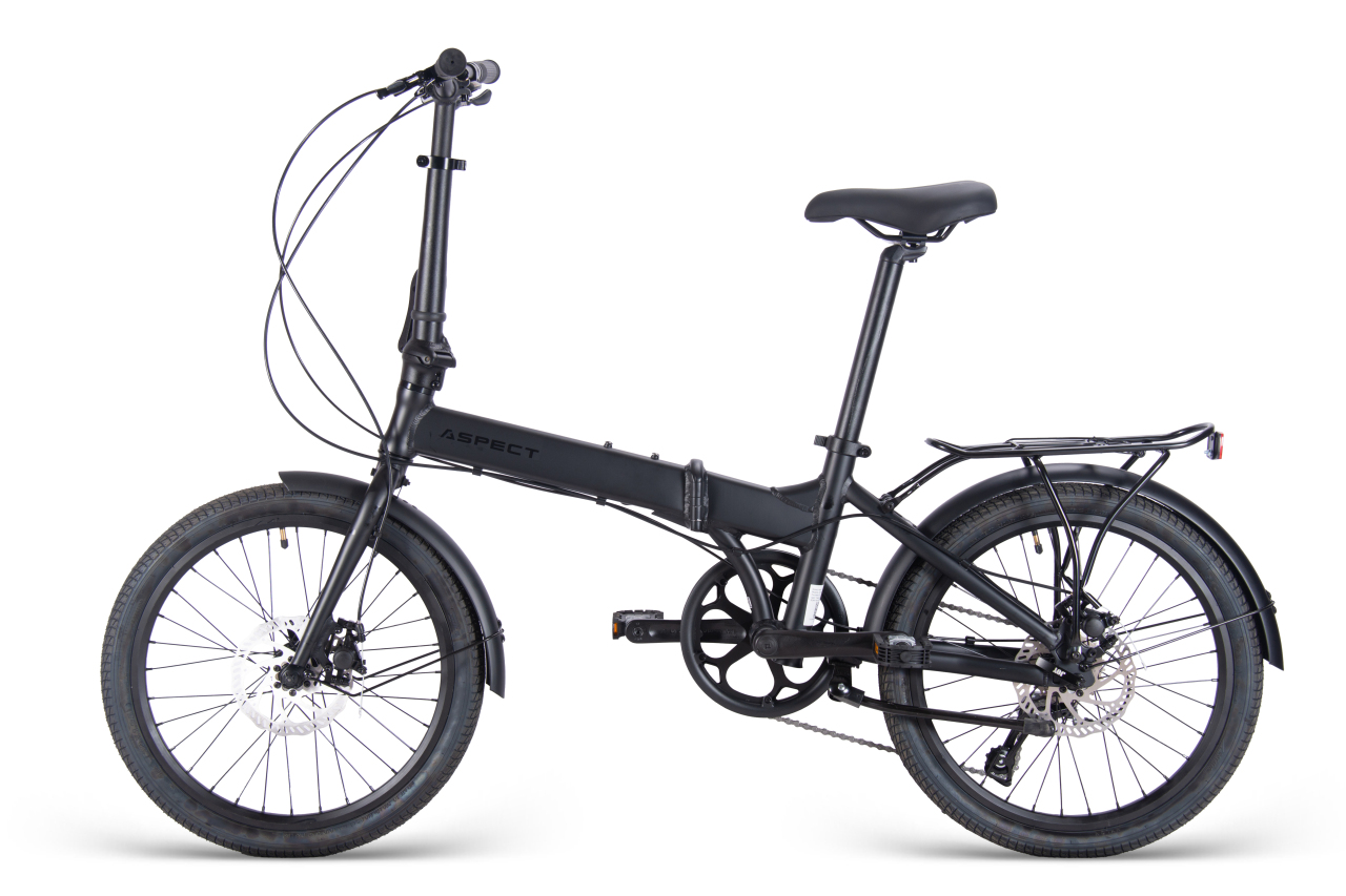 Складной прогулочный велосипед с навесным оборудованием Shimano, 7 скоростей. Технические особенности: складная алюминиевая рама (сплав 6061, складная с эксцентриковым фиксатором, каретка BSA, рулевой стакан ZS), жесткая алюминиевая вилка (сплав 6061, дропауты 10 мм), двойные алюминиевые обода Alloy Double Wall (под AV ниппель), дисковые механические тормоза Radius BX-350 (роторы 160/160 мм), защита цепи, длинные крылья, багажник, подножка, катафоты, чехол для переноски. Подходит для прогулочного катания в городских условиях. Диаметр колес - 20 дюйма. Вес - 14 кг.