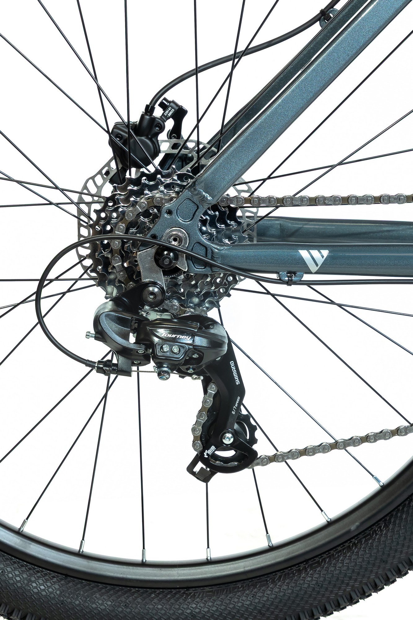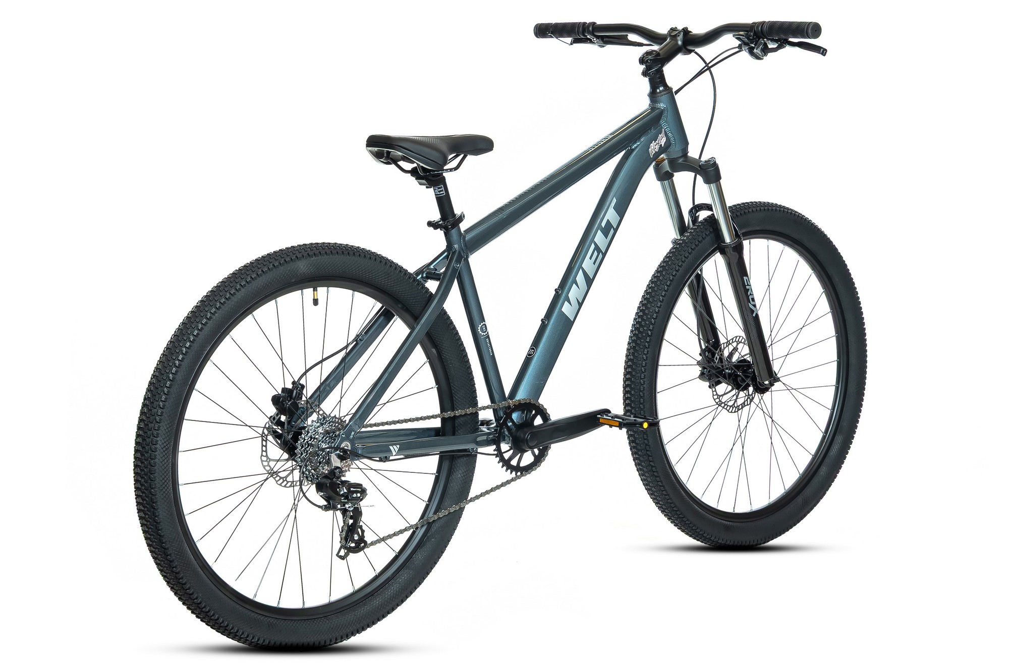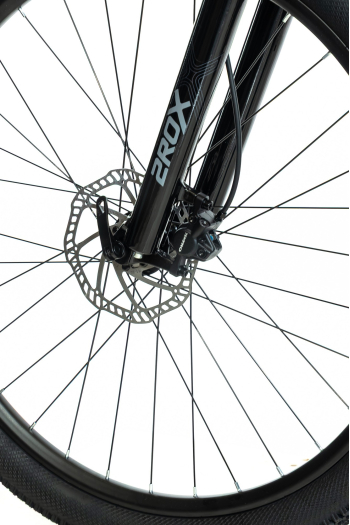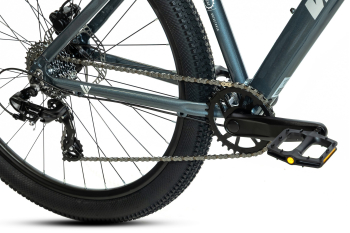 Горный велосипед с оборудованием начального класса Shimano, 7 скоростей. Технические особенности: легкая алюминиевая рама (сплав 6061, внутренняя прокладка тросов, съёмный петух, рулевой стакан ZS, крепление калипера PM, каретка BSA), амортизационная вилка 2ROXX 981 (пружинно-эластомерная, ход 100 мм, алюминиевые штаны, блокировка хода), двойные алюминиевые обода (под AV ниппель), дисковые гидравлические тормоза Shimano MT-200 (роторы 160/160 мм). Подходит для активной езды по различным дорогам и пересеченной местности. Диаметр колес - 27,5 дюймов. Вес - 14,6 кг.