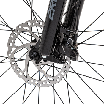 Горный велосипед с оборудованием начального класса Shimano, 7 скоростей. Технические особенности: легкая алюминиевая рама (сплав 6061, внутренняя прокладка тросов, съёмный петух, рулевой стакан ZS, крепление калипера PM, каретка BSA), амортизационная вилка 2ROXX 981 (пружинно-эластомерная, ход 100 мм, алюминиевые штаны, блокировка хода), двойные алюминиевые обода (под AV ниппель), дисковые гидравлические тормоза Shimano MT-200 (роторы 160/160 мм). Подходит для активной езды по различным дорогам и пересеченной местности. Диаметр колес - 29 дюймов. Вес - 14,7 кг.