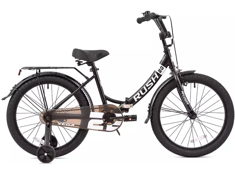 Велосипед, предназначенный для детей в возрасте от пяти до девяти лет, без переключения передач. Технические особенности: складная стальная рама (сплав Hi-Ten, техноформинг), жесткая стальная вилка (резьбовая, шток 25.4 мм), одинарные стальные обода (под AV ниппель), передний тормоз - ручной клещевой, задний тормоз - ножной, широкое седло с пружинами, полная защита цепи, съемные боковые колеса, длинные крылья с брызговиками, задний багажник, звонок, катафоты. Подходит для обучения и легких прогулок. Диаметр колес - 20 дюймов. Вес - 12,5 кг.