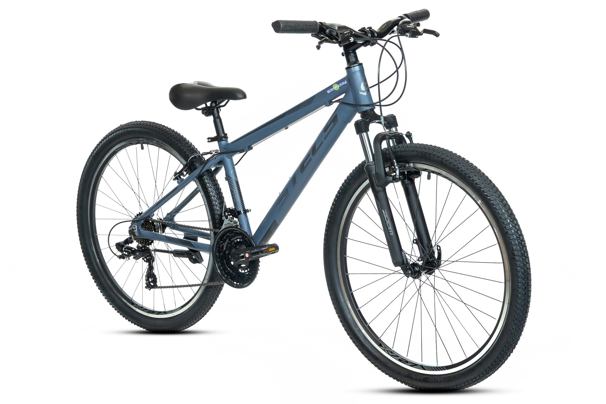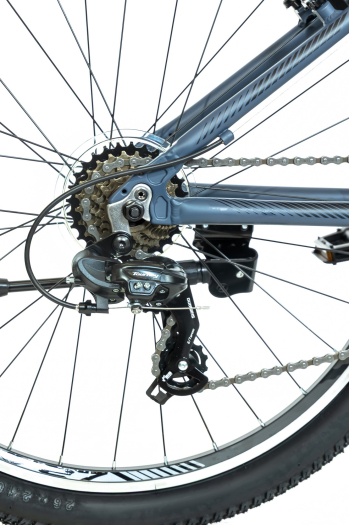 Горный велосипед для начинающих с навесным оборудованием Shimano, 21 скорость. Технические особенности: легкая алюминиевая рама (частично скрытая прокладка тросов, кареточный стакан BSA), амортизационная вилка (пружинно-эластомерная, стальная с алюминиевой короной, ход 60 мм, крепление калипера IS), двойные алюминиевые обода (под AV ниппель), надежные ободные тормоза V-Brake, подножка, катафоты. Подходит для прогулочной езды по различным дорогам и пересеченной местности. Диаметр колес - 26 дюймов. Вес - 15,5 кг.