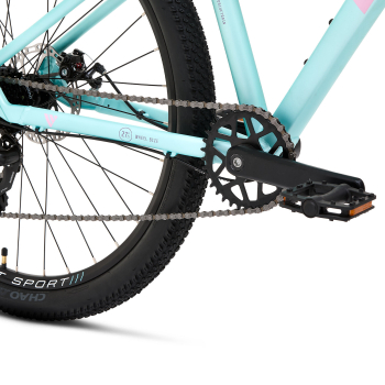 Женский горный велосипед с оборудованием начального класса Shimano, 7 скоростей. Подходит для активной езды по различным дорогам и пересеченной местности. Диаметр колес - 27,5 дюймов. Вес - 14,8 кг.