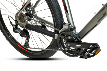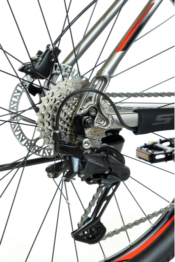 Горный велосипед с навесным оборудованием любительского класса Shimano, 18 скоростей. Технические особенности: легкая алюминиевая рама (скрытая проводка, съемный петух, кареточный стакан BSA), амортизационная вилка (магниевый сплав, с алюминиевой короной, блокировка, предварительная нагрузка, ход 100 мм, крепление калипера Post Mount), двойные алюминиевые обода (под AV ниппель), дисковые гидравлические тормоза (роторы 160/160 мм с креплением на 6 болтов), подножка, катафоты. Подходит для активной езды по различным дорогам и пересеченной местности. Диаметр колес - 26 дюймов. Вес - 14,4 кг.