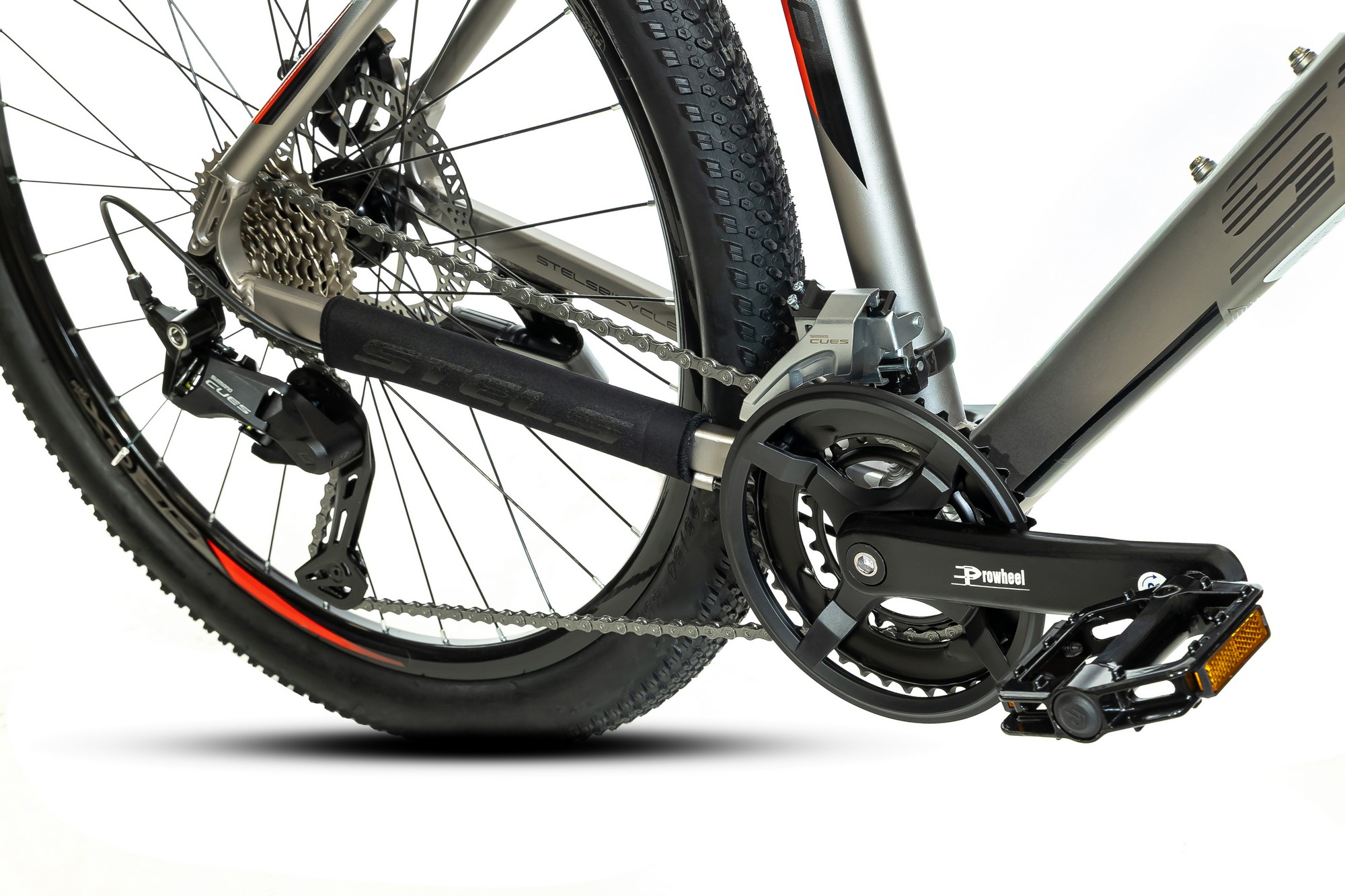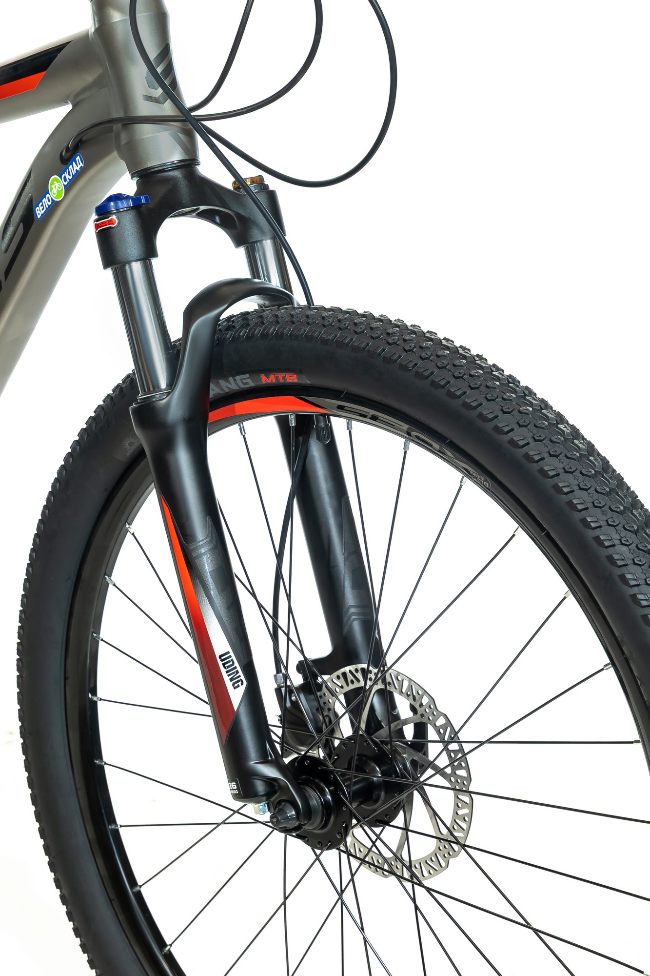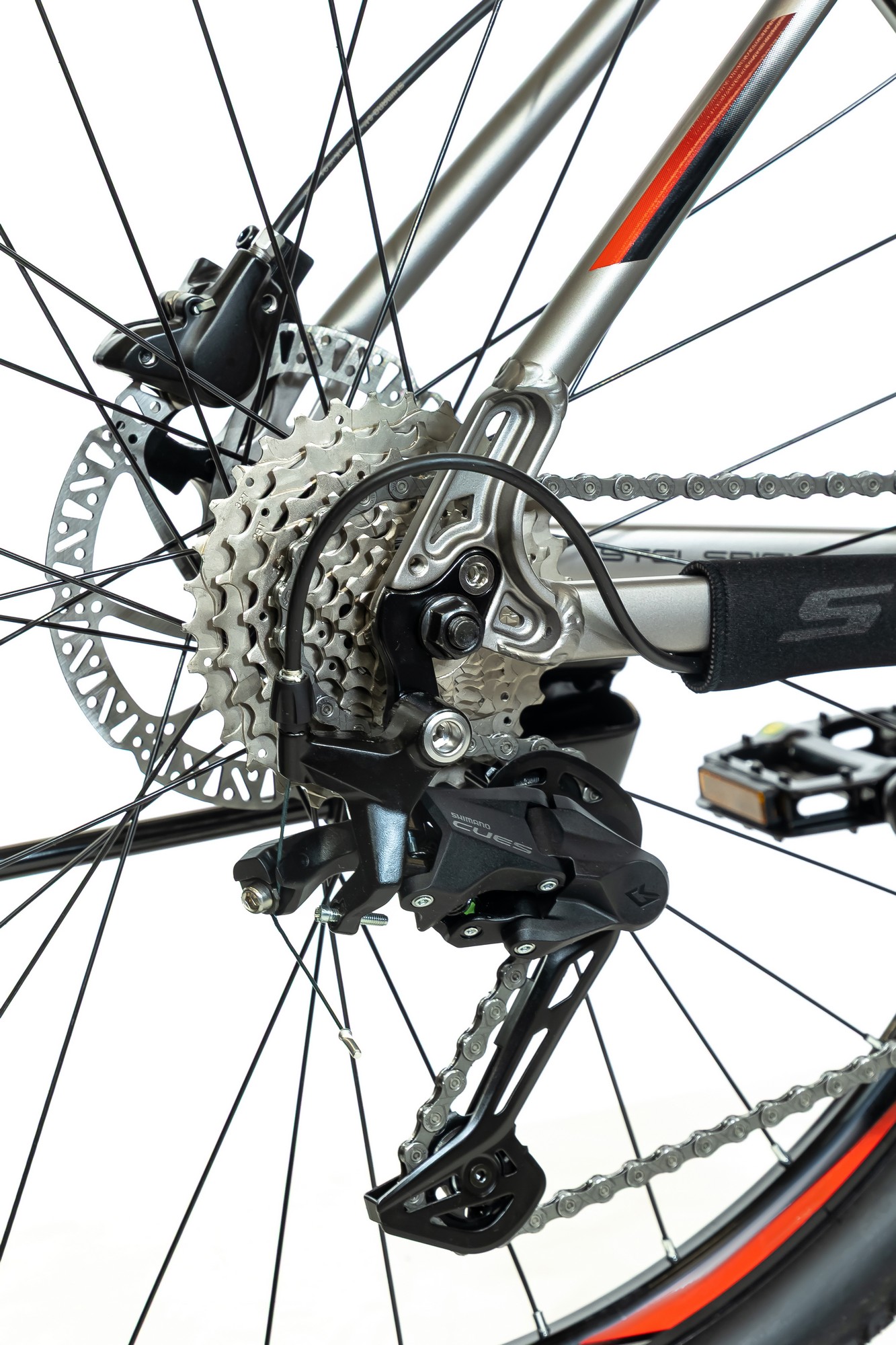 Горный велосипед с навесным оборудованием любительского класса Shimano, 18 скоростей. Технические особенности: легкая алюминиевая рама (скрытая проводка, съемный петух, кареточный стакан BSA), амортизационная вилка (магниевый сплав, с алюминиевой короной, блокировка, предварительная нагрузка, ход 100 мм, крепление калипера Post Mount), двойные алюминиевые обода (под AV ниппель), дисковые гидравлические тормоза (роторы 160/160 мм с креплением на 6 болтов), подножка, катафоты. Подходит для активной езды по различным дорогам и пересеченной местности. Диаметр колес - 26 дюймов. Вес - 14,4 кг.
