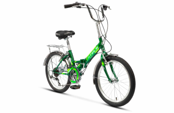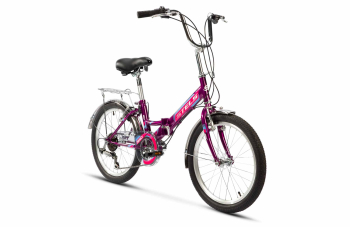 Складной прогулочный велосипед с оборудованием начального класса Shimano, 6 скоростей. Технические особенности: складная стальная рама (замок складного механизма на эксцентрике, интегрированный подседельный зажим, кареточный стакан BSA, открытая прокладка тросов), жесткая стальная вилка (резьбовой шток), двойные алюминиевые обода (под AV ниппель), надежные ободные тормоза V-Brake (алюминиевые рычаги), защита цепи, длинные крылья, задний багажник, подножка, катафоты, звонок. Подходит для прогулочного катания в городских условиях. Диаметр колес - 20 дюймов. Вес - 15,61 кг.