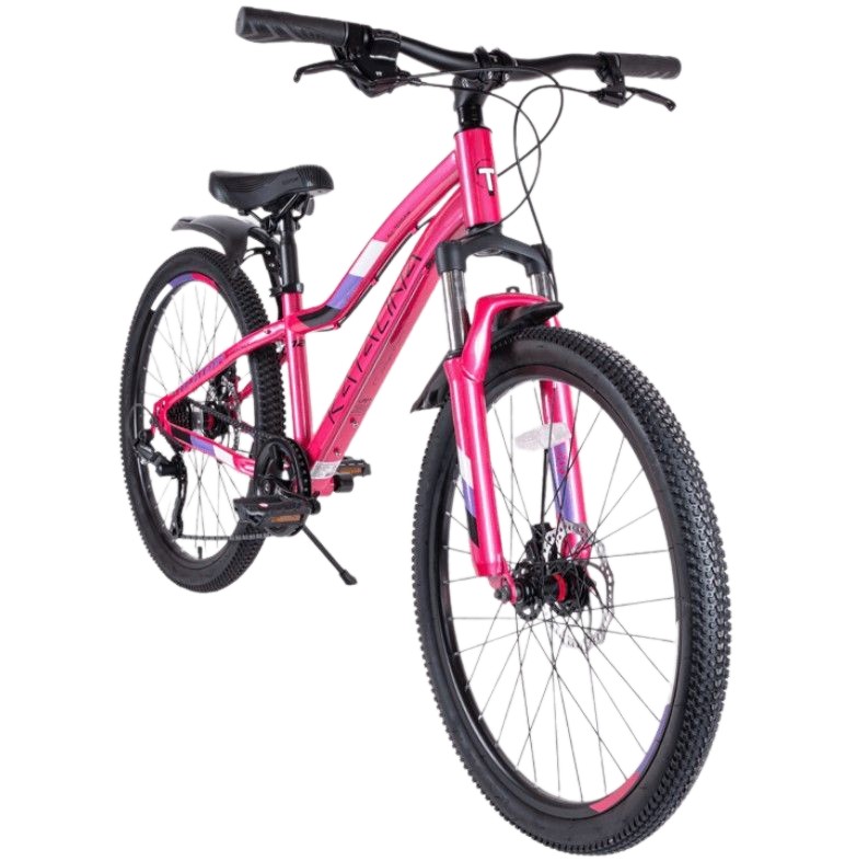Велосипед, предназначенный для детей в возрасте от восьми до тринадцати лет, с навесным оборудованием Microshift, 7 скоростей. Технические особенности: прочная стальная рама (открытая прокладка тросов, кареточный стакан BSA, крепление калипера IS, интегрированный петух, прямой рулевой стакан), амортизационная вилка (пружинно-эластомерная, ход 50 мм, с алюминиевой короной, безрезьбовой шток 1-1/8″), двойные алюминиевые обода (под ниппель AV), дисковые механические тормоза (роторы 160/160 мм), защита цепи, подножка, крылья, катафоты. Подходит для прогулочного катания в городских условиях и по несложным маршрутам в лесу. Диаметр колес - 24 дюйма. Вес - 16 кг.