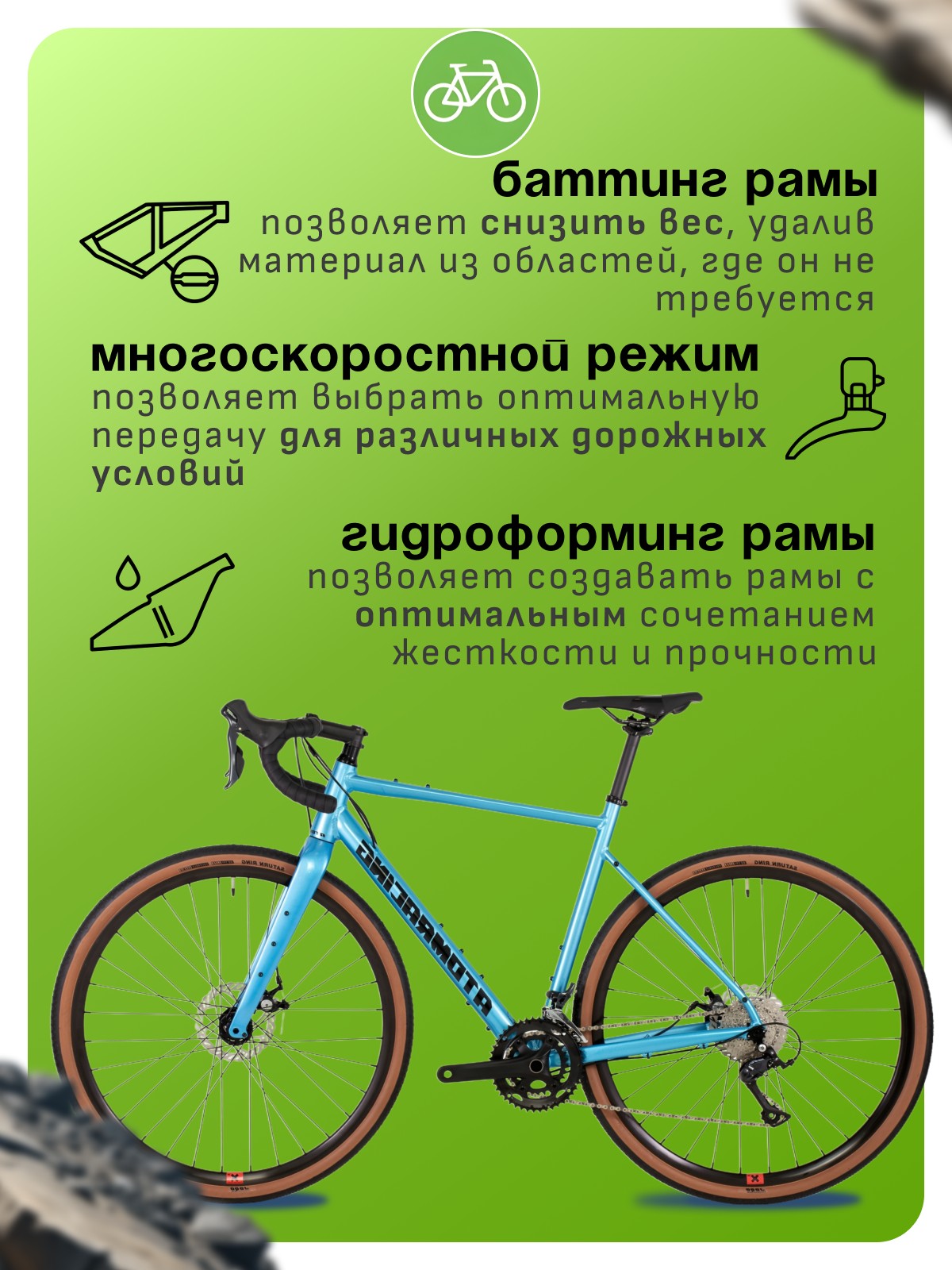 Гравийный велосипед с оборудованием любительского класса Shimano, 18 скоростей. Подходит для активной езды по различным дорогам и пересеченной местности. Диаметр колес - 28 дюймов. Вес - 10,6 кг.