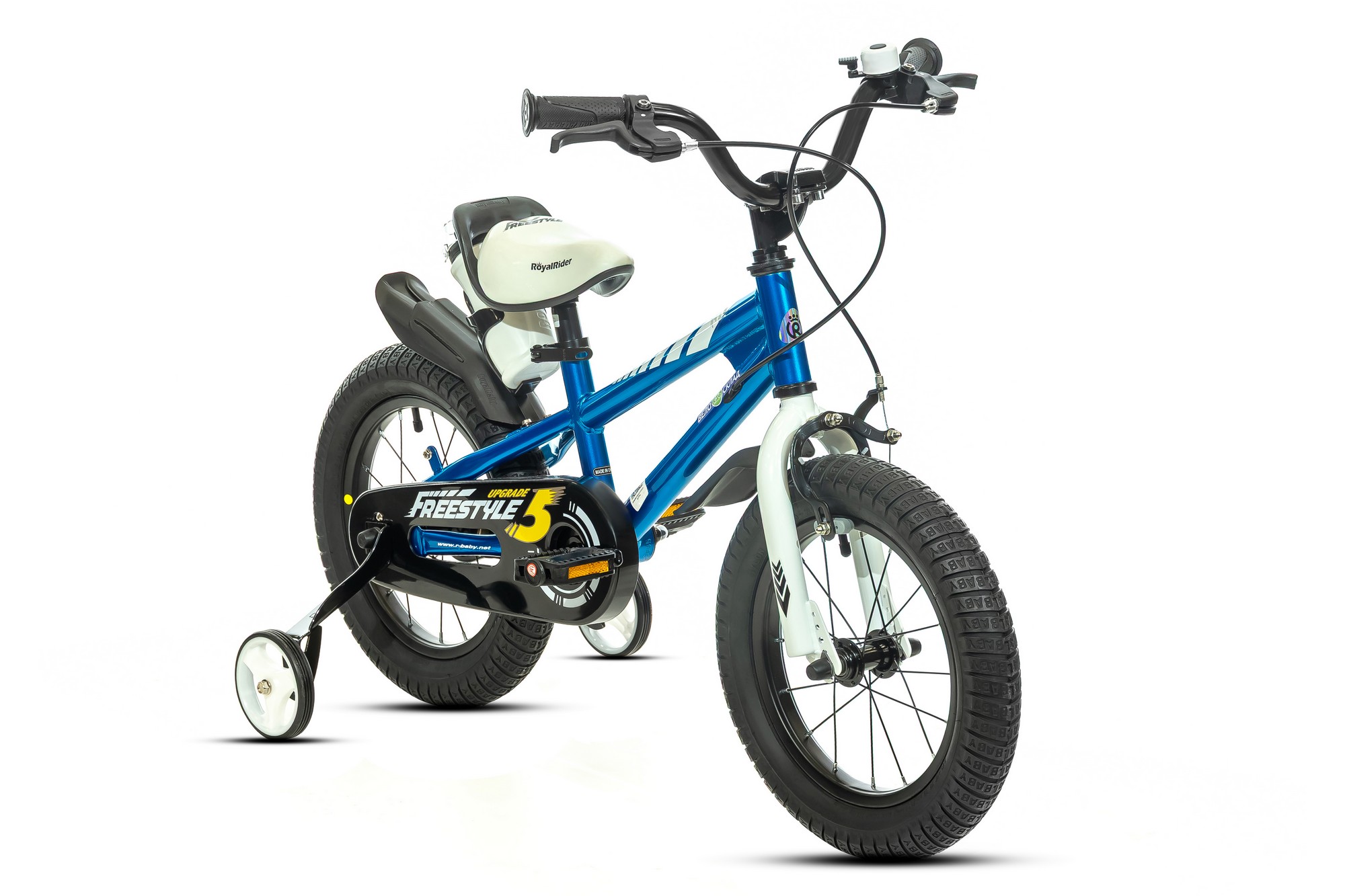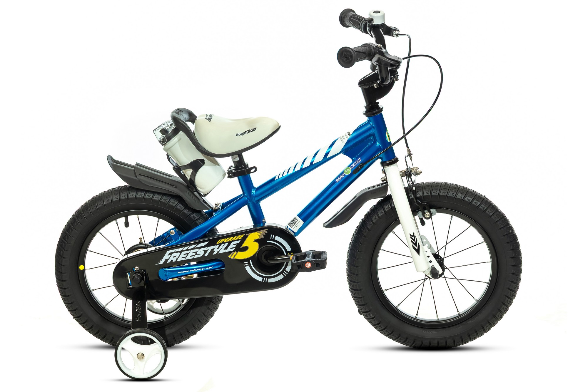 Велосипед, предназначенный для детей в возрасте от трех до пяти лет, без переключения передач. Технические особенности: прочная стальная рама, жесткая стальная вилка, одинарные стальные обода, передний тормоз - ободной V-Brake, задний - барабанный, полная защита цепи, съемные боковые колеса, флягодержатель, звонок. Подходит для обучения и легких прогулок. Диаметр колес - 14 дюймов. Вес - 9 кг.