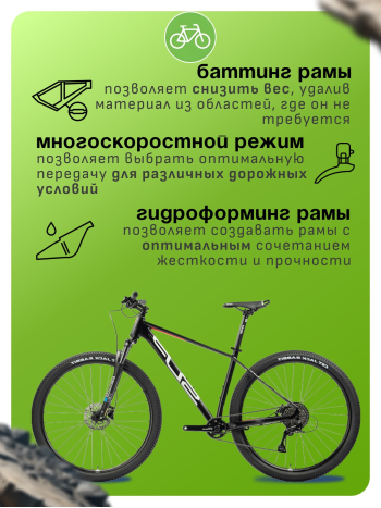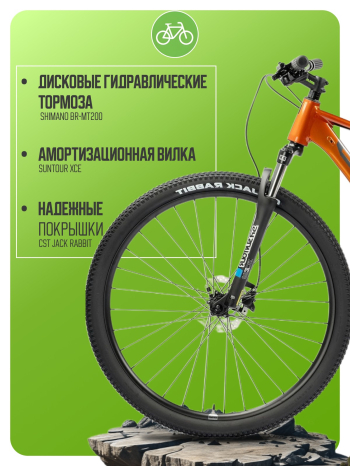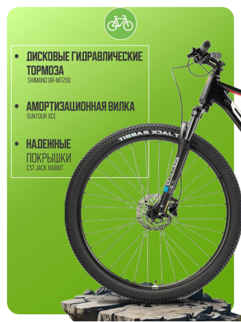 Легкий хардтейл для езды в стиле кросс-кантри с оборудованием любительского класса Shimano, 8 скоростей. Технические особенности: легкая алюминиевая рама Alu 6061 T6 Double Butted (двойной баттинг, гидроформинг, сглаженные швы, скрытая проводка, конический рулевой стакан), амортизационная вилка Suntour XCE (пружинно-эластомерная, ход 100 мм, регулировка преднагрузки), двойные алюминиевые обода One HLQC-GA75 (под ниппель Presta), дисковые гидравлические тормоза Shimano BR-MT200 (роторы Shimano SM-RT10, 160/160 мм). Подходит для спортивного катания в стиле кросс-кантри и участия в гонках. Диаметр колес - 29 дюймов. Вес - 14,5 кг.