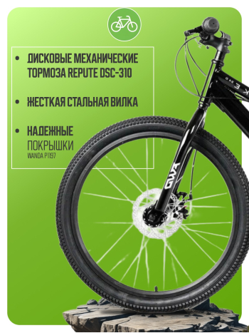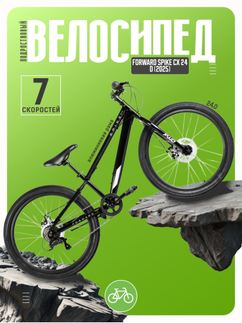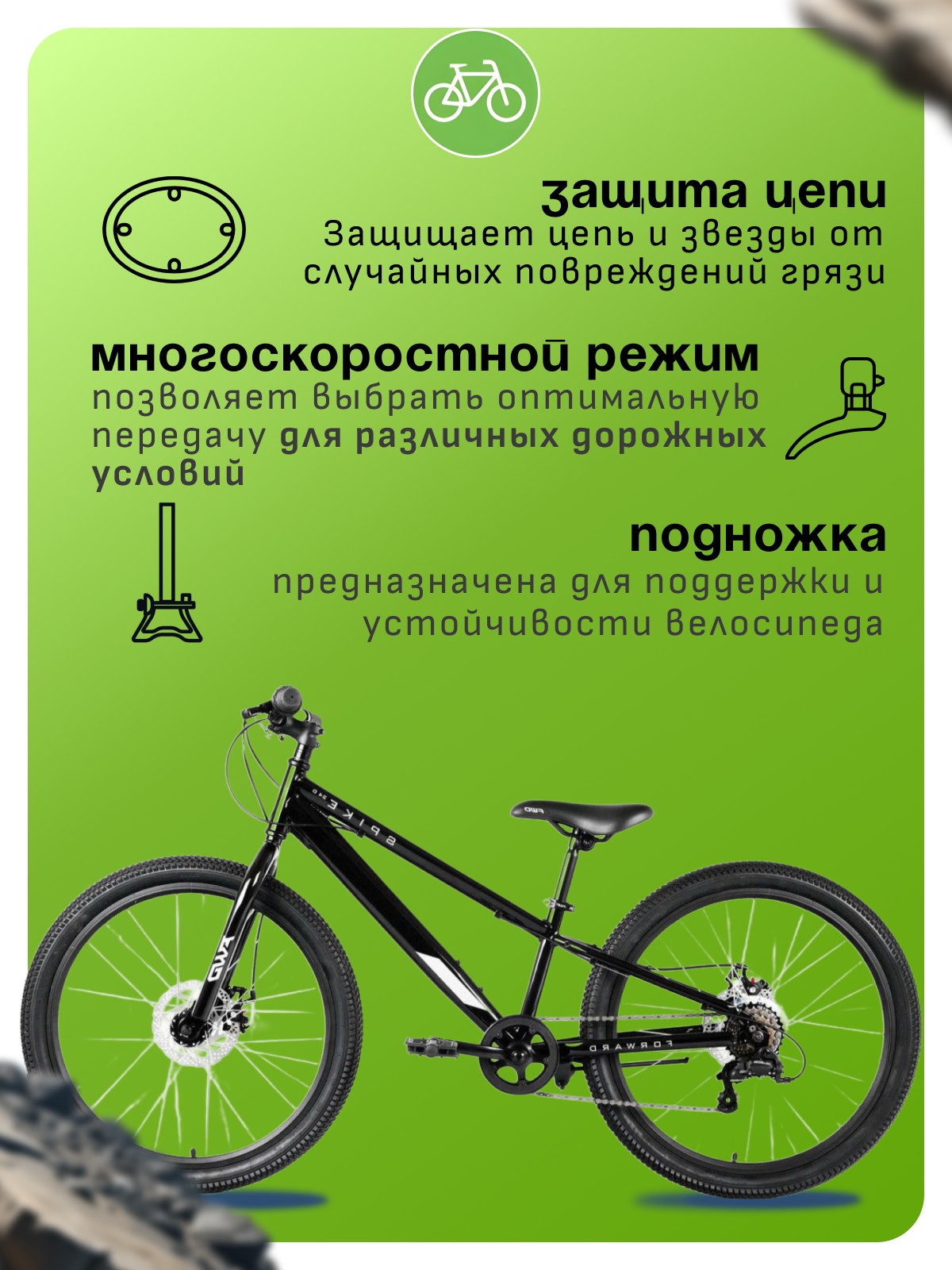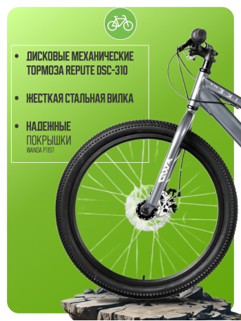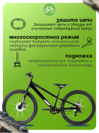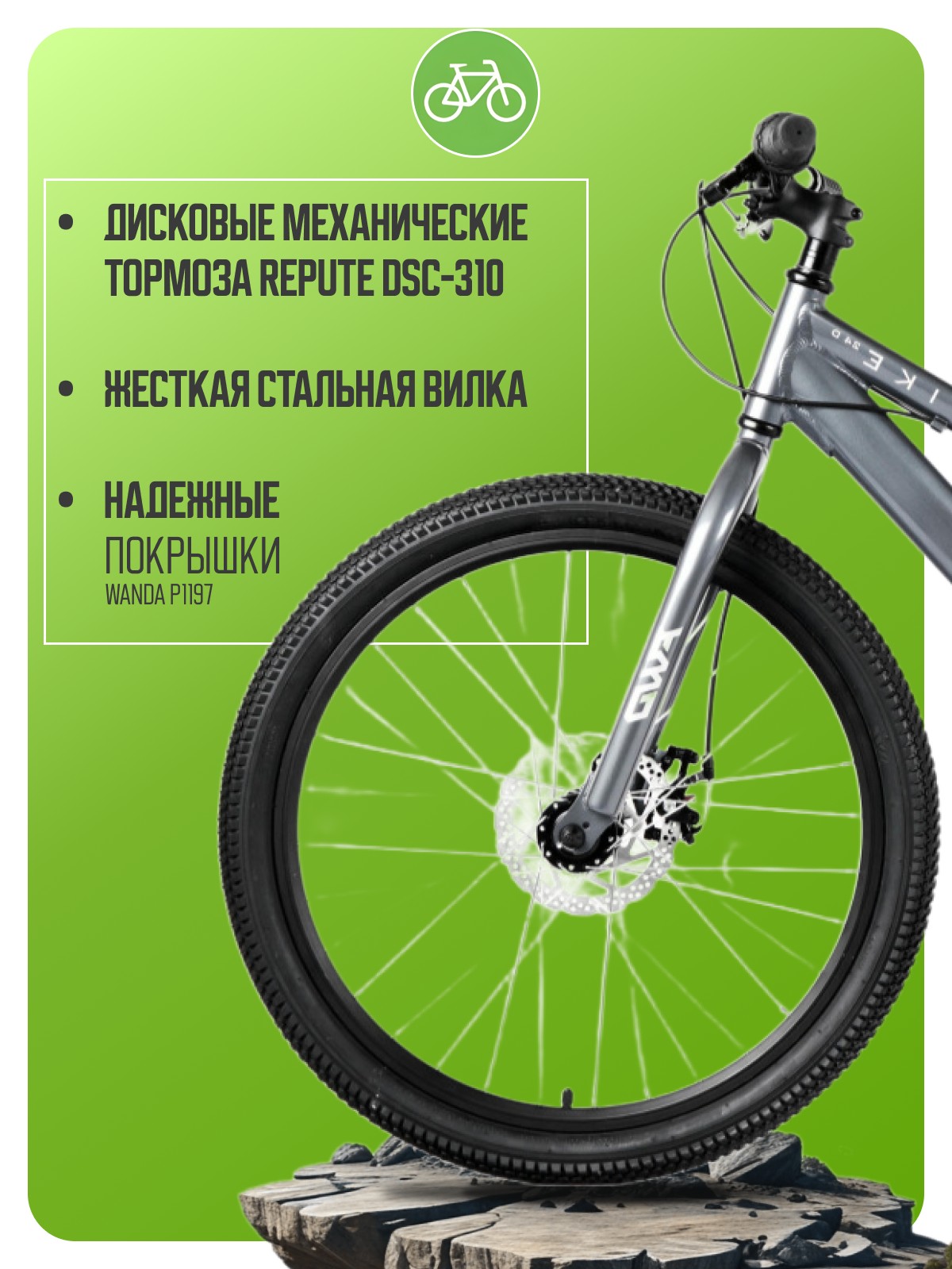 Подростковый велосипед с навесным оборудованием Microshift, 7 скоростей. Технические особенности: алюминиевая рама (сплав 6061, открытая проводка, прямой рулевой стакан, интегрированный петух), жесткая стальная вилка, двойные алюминиевые обода (под ниппель AV), дисковые механические тормоза Repute DSC-310 (роторы 160/160 мм с креплением на 6 болтов), подножка. Подходит для комфортного катания по городским улицам и по несложным маршрутам в лесу. Диаметр колес - 24 дюйма. Вес - 13 кг.