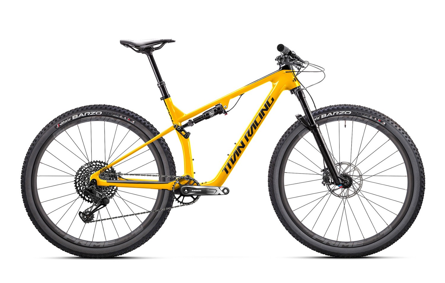 Двухподвес высшего уровня с оборудованием предпрофессионального класса SRAM, 12 скоростей. Подходит для спортивного катания в стиле даункантри/трейл и участия в гонках. Диаметр колес - 29 дюймов. Вес - 12,5 кг.