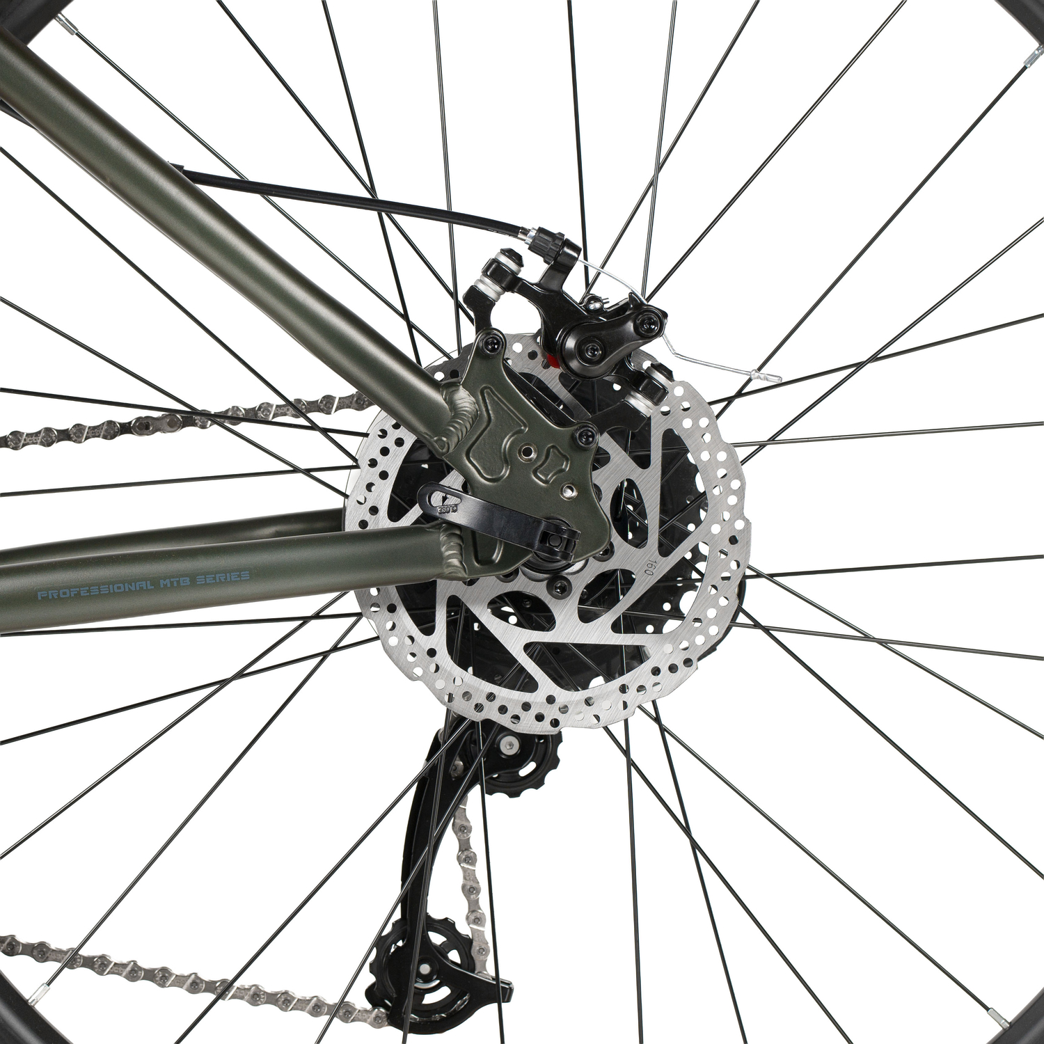Передает вращение от шатунов на кассету. Теоретически цепь представляет собой подшипники скольжения (втулки), соединенные между собой боковыми пластинами. Цепи разнятся по длине, то есть количеству звеньев, и по ширине. Чем больше скоростей на велосипеде, тем цепь уже. Данный элемент является открытым, поэтому нуждается в частой смазке и чистке. Во многом плавное переключение передач, а соответственно и ход велосипеда зависят от смазки цепи и степени ее загрязнения.