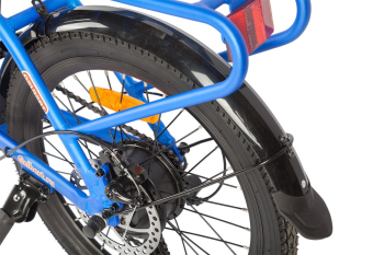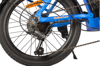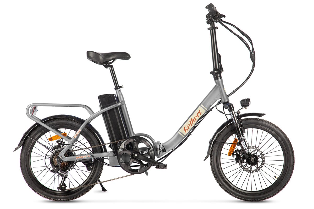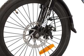 Складной электровелосипед с оборудованием начального класса Shimano, 7 скоростей. Подходит для прогулочного катания в городских условиях и по несложным маршрутам в лесу. Пробег до 40 км на одной зарядке. Грузоподъемность - 110 кг. Рекомендуемая температура эксплуатации: -10°C до +40°C. Диаметр колес - 20 дюймов. Вес - 22 кг.