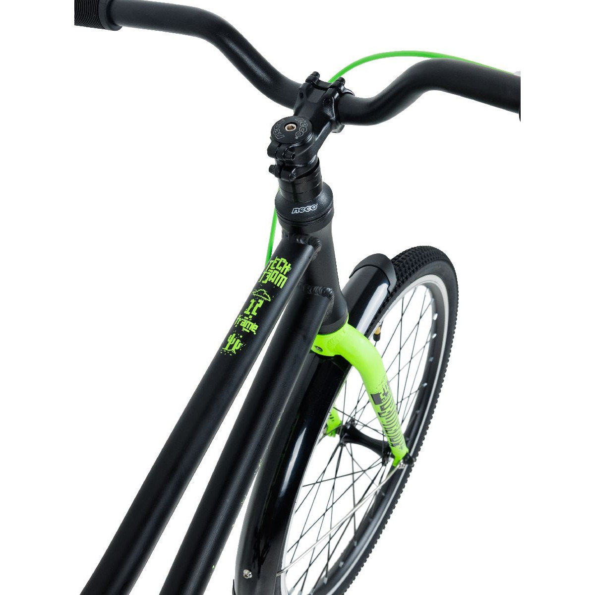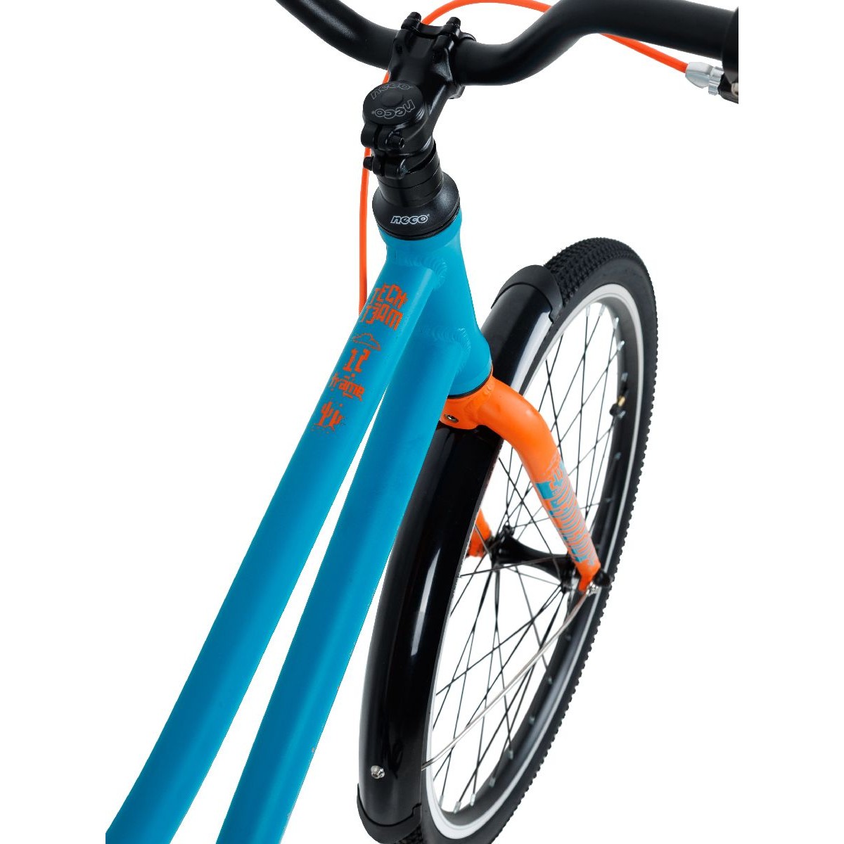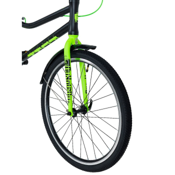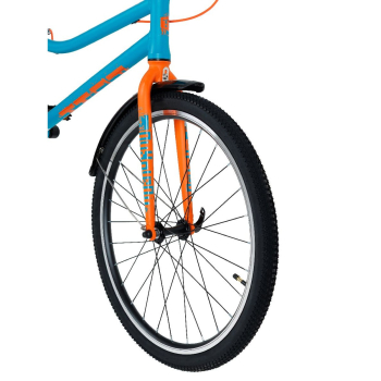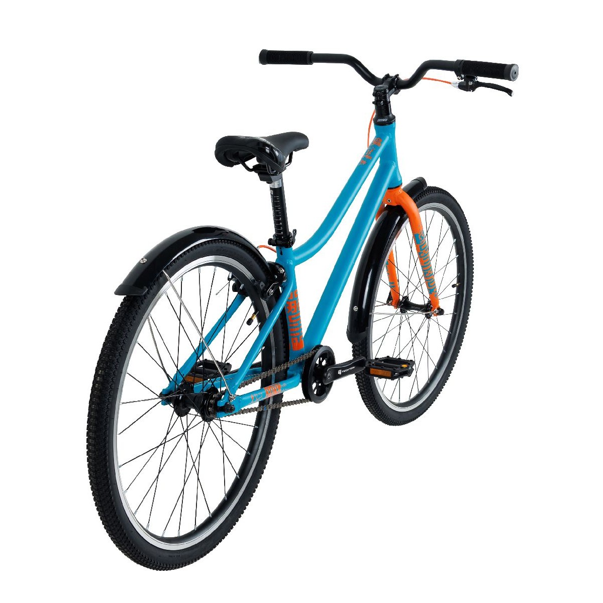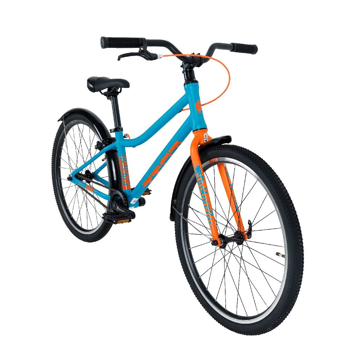 Велосипед, предназначенный для детей в возрасте от восьми до тринадцати лет, без переключения передач. Технические особенности: легкая алюминиевая рама (сплав 6061-Т6, баттинг, кареточный стакан BSA, прямой рулевой стакан), жесткая алюминиевая вилка (сплав 6061-Т6, рулевой шток 1-1/8″), двойные алюминиевые обода (под AV ниппель), надежный ободной тормоз клещевого типа (задний), полноразмерные крылья, катафоты. Подходит для обучения и прогулочного катания в городских условиях. Диаметр колес - 24 дюйма. Вес - 8,2 кг.