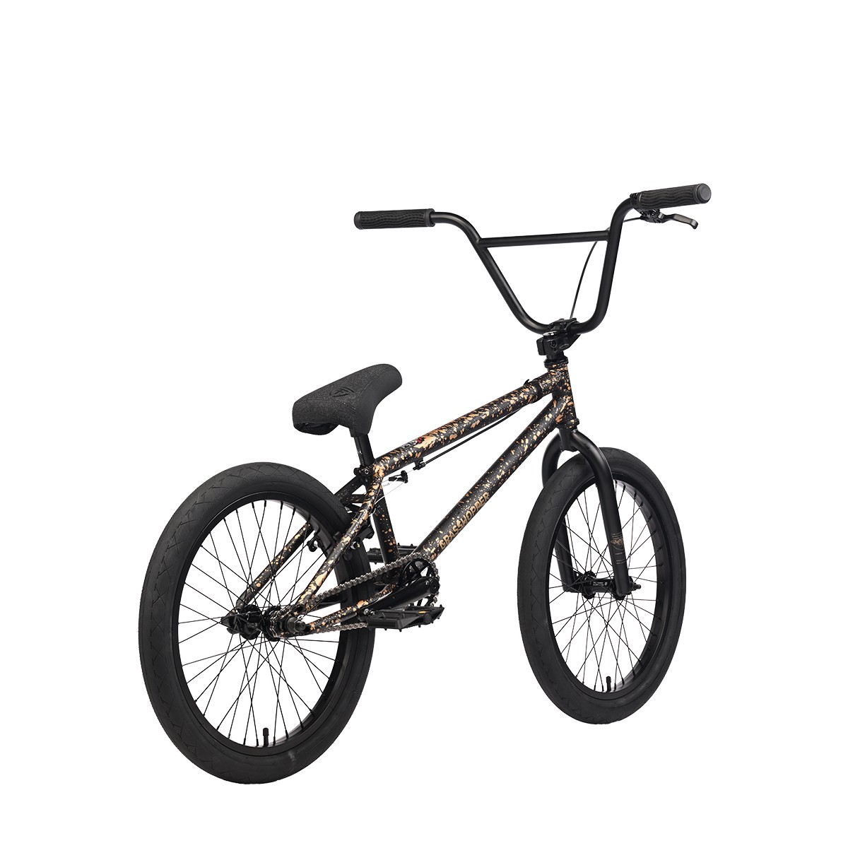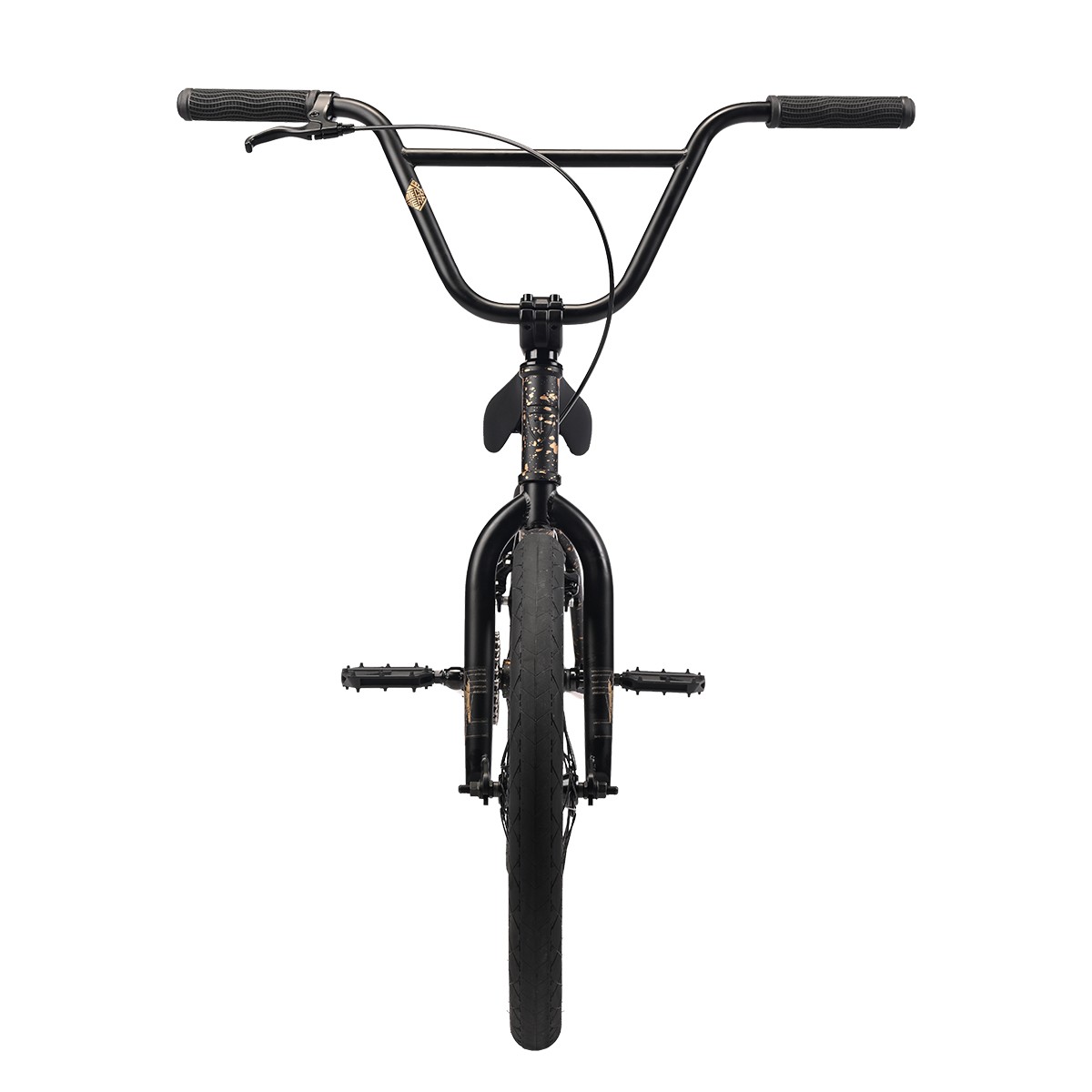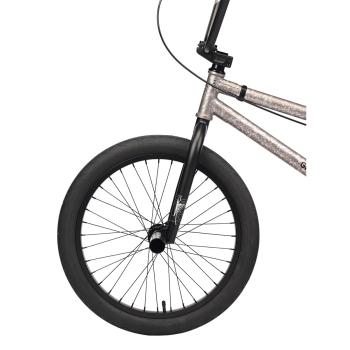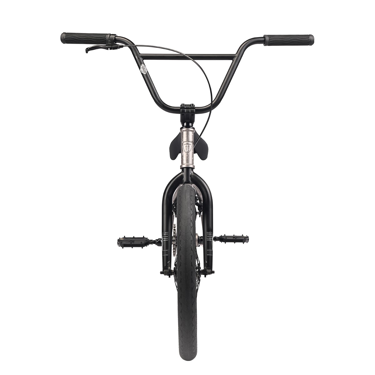 Экстремальный велосипед BMX без переключения передач. Технические особенности: прочная стальная рама (cъемные крепления тормозов, усиленный косынками передний треугольник, заведенные перья 12.8″ / min 12.6″, задний треугольник собран по технологии Invest-Cast, кованые дропауты, натяжитель цепи), жесткая стальная вилка (под топкэп M25, конусные ноги, выбег 25 мм), двойные алюминиевые обода (под AV ниппель), задний клевой тормоз типа U-brake, пеги. Подходит для экстремального катания в дисциплинах парк, стрит, памп, боул. Диаметр колес - 20 дюймов. Вес - 11,4 кг.
