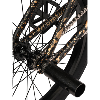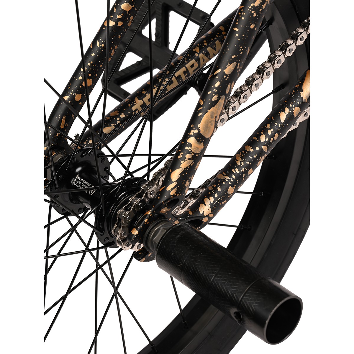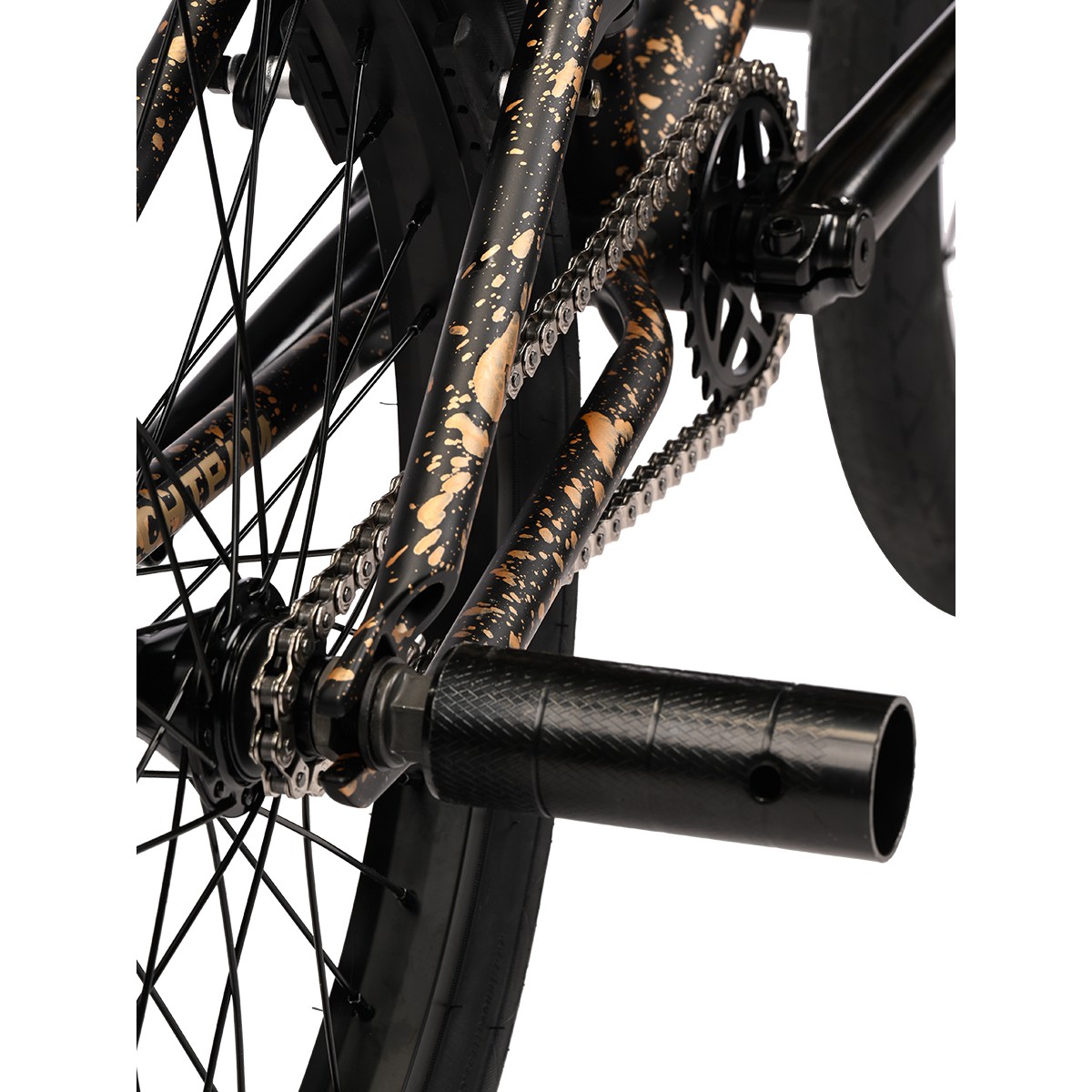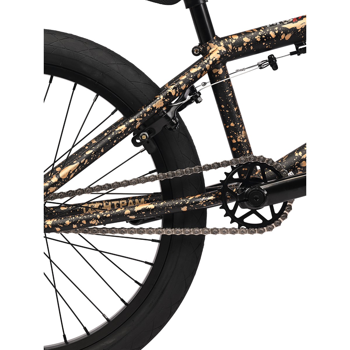 Экстремальный велосипед BMX без переключения передач. Технические особенности: прочная стальная рама (cъемные крепления тормозов, усиленный косынками передний треугольник, заведенные перья 12.8″ / min 12.6″, задний треугольник собран по технологии Invest-Cast, кованые дропауты, натяжитель цепи), жесткая стальная вилка (под топкэп M25, конусные ноги, выбег 25 мм), двойные алюминиевые обода (под AV ниппель), задний клевой тормоз типа U-brake, пеги. Подходит для экстремального катания в дисциплинах парк, стрит, памп, боул. Диаметр колес - 20 дюймов. Вес - 11,4 кг.