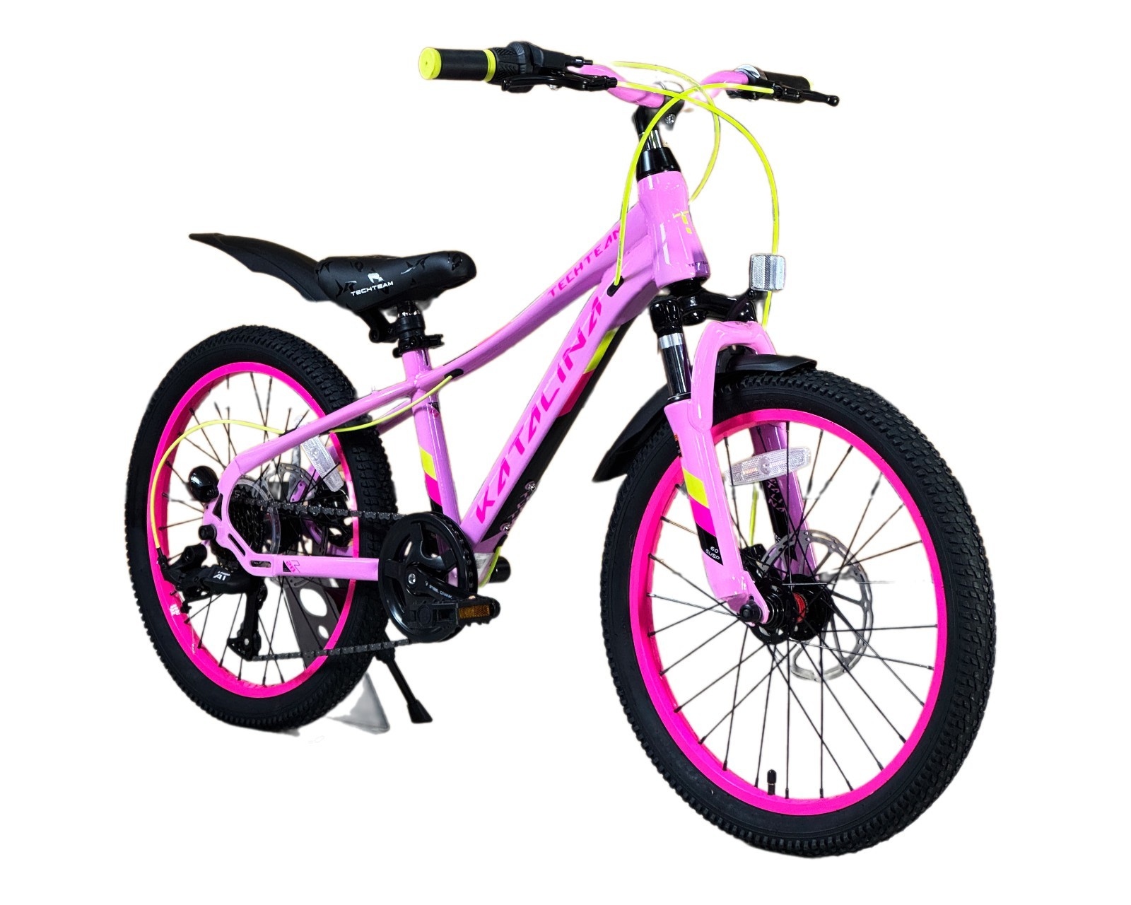 Велосипед, предназначенный для детей в возрасте от пяти до девяти лет, с навесным оборудованием L-TWOO, 6 скоростей. Технические особенности: прочная стальная рама (частично скрытая проводка, кареточный стакан BSA, интегрированный петух, крепление калипера IS), амортизационная вилка (пружинно-эластомерная, рулевой шток 1-1/8″), двойные алюминиевые обода (под AV ниппель), дисковые механические тормоза (роторы 160/160 мм), пластиковые крылья, подножка, катафоты. Подходит для обучения и прогулочного катания в городских условиях. Диаметр колес - 20 дюймов. Вес - 14 кг.