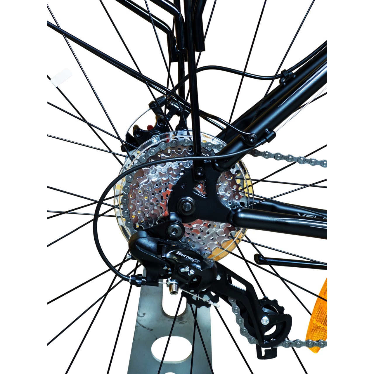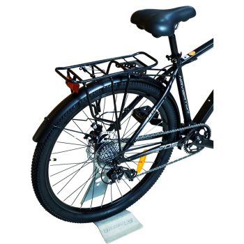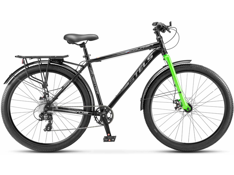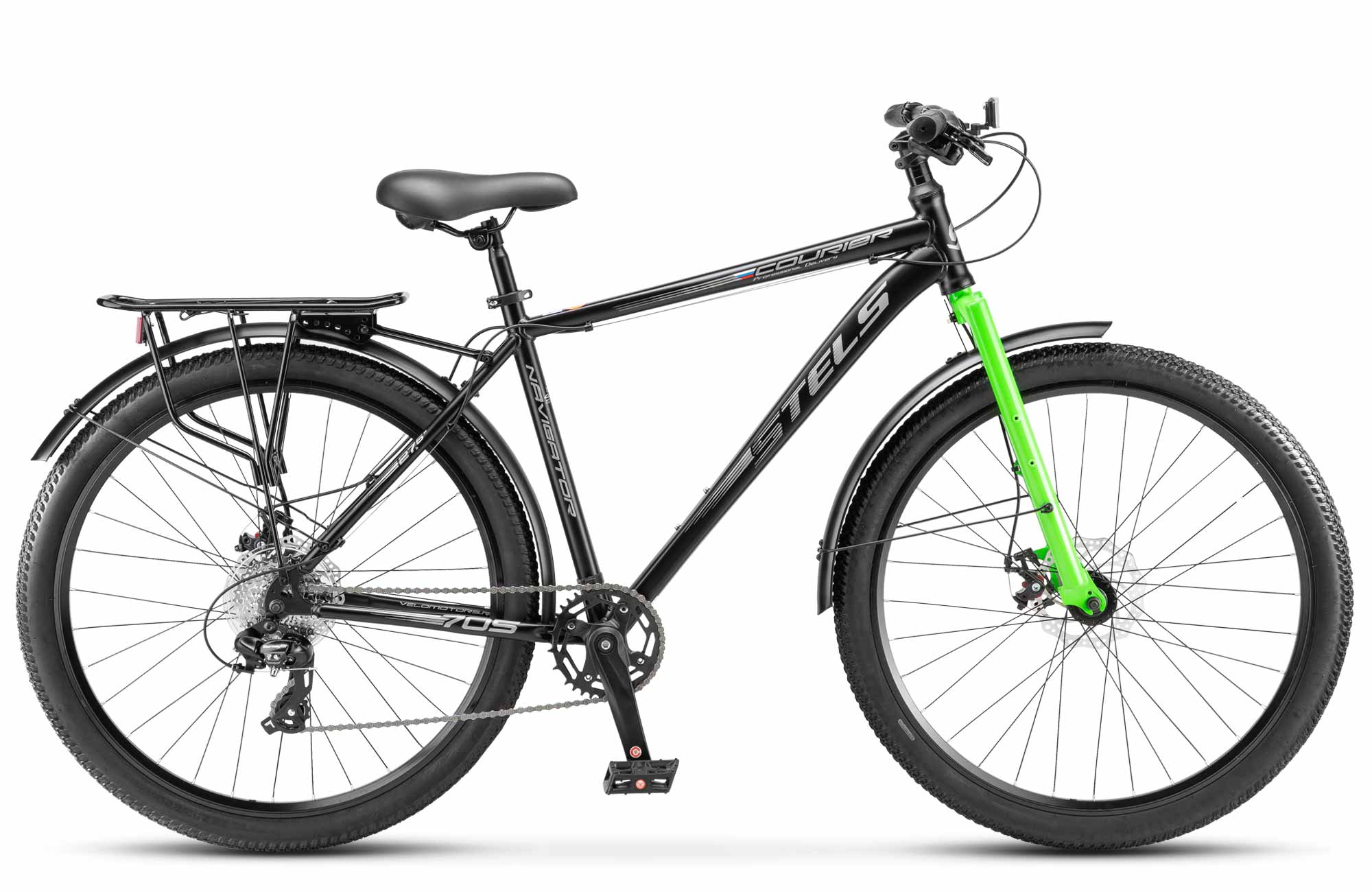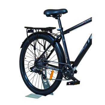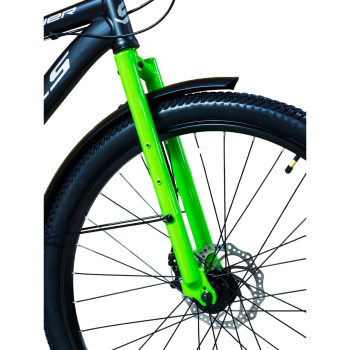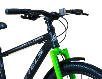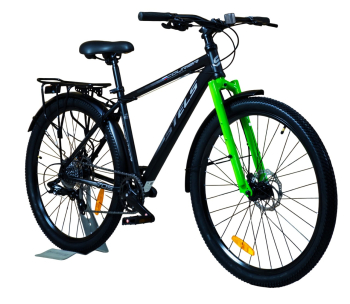 Горный велосипед для начинающих с оборудованием начального класса Shimano, 8 скоростей. Технические особенности: прочная стальная рама (открытая проводка, кареточный стакан BSA, интегрированный петух, прямой рулевой стакан, крепление калипера IS), жесткая стальная вилка (крепление калипера IS), двойные алюминиевые обода (под AV ниппель), дисковые механические тормоза (роторы 160/160 мм), полноразмерные крылья, задний багажник, катафоты. Подходит для прогулочного катания в городских условиях и по несложным маршрутам в лесу. Диаметр колес - 27,5 дюймов. Вес - 18,6 кг.