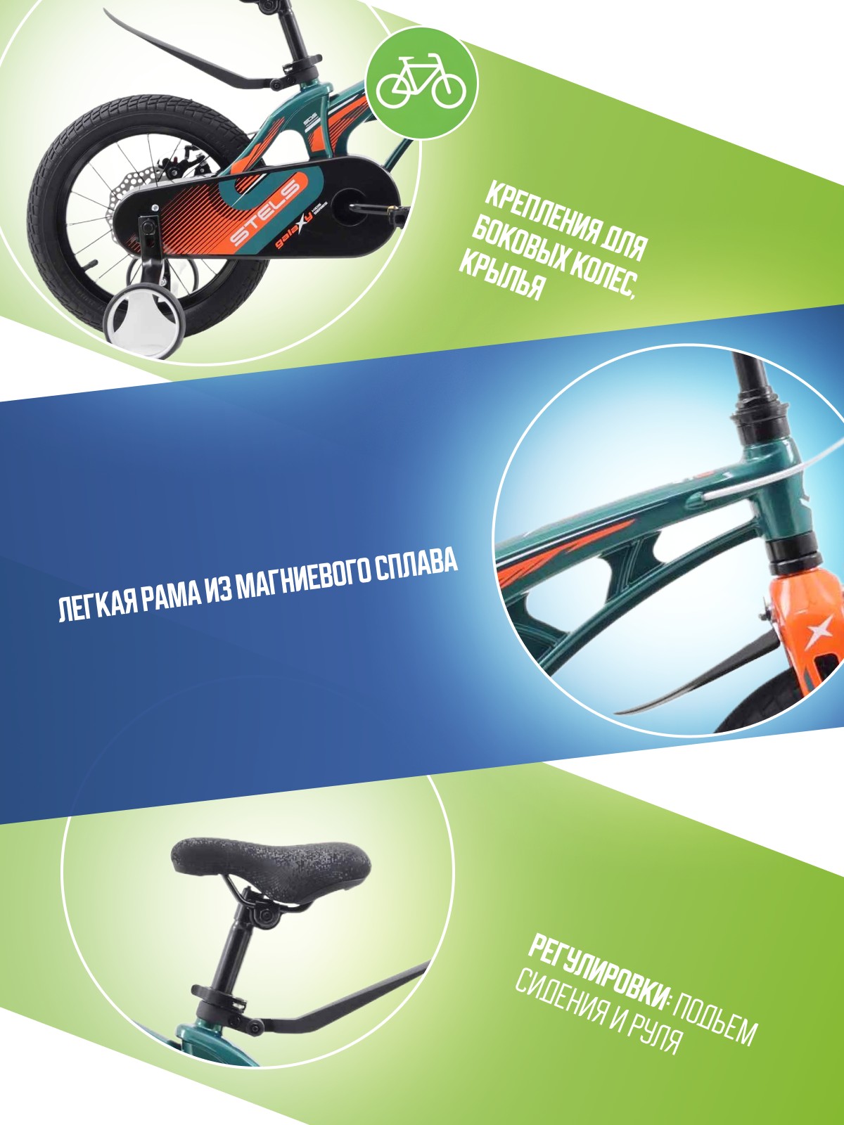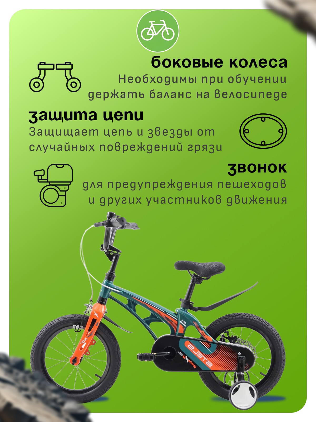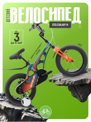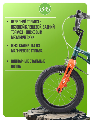 Велосипед, предназначенный для детей в возрасте от двух до четырех лет, без переключения передач. Технические особенности: легкая рама из магниевого сплава (скрытая проводка), жесткая вилка из магниевого сплава (крепление калипера IS), одинарные стальные обода (под AV ниппель), передний тормоз - ободной клещевой, задний тормоз - дисковый механический (ротор 140 мм), полная защита цепи, пластиковые крылья, съемные боковые колеса, звонок. Подходит для обучения и прогулочного катания в городских условиях. Диаметр колес - 14 дюймов. Вес - 8 кг.