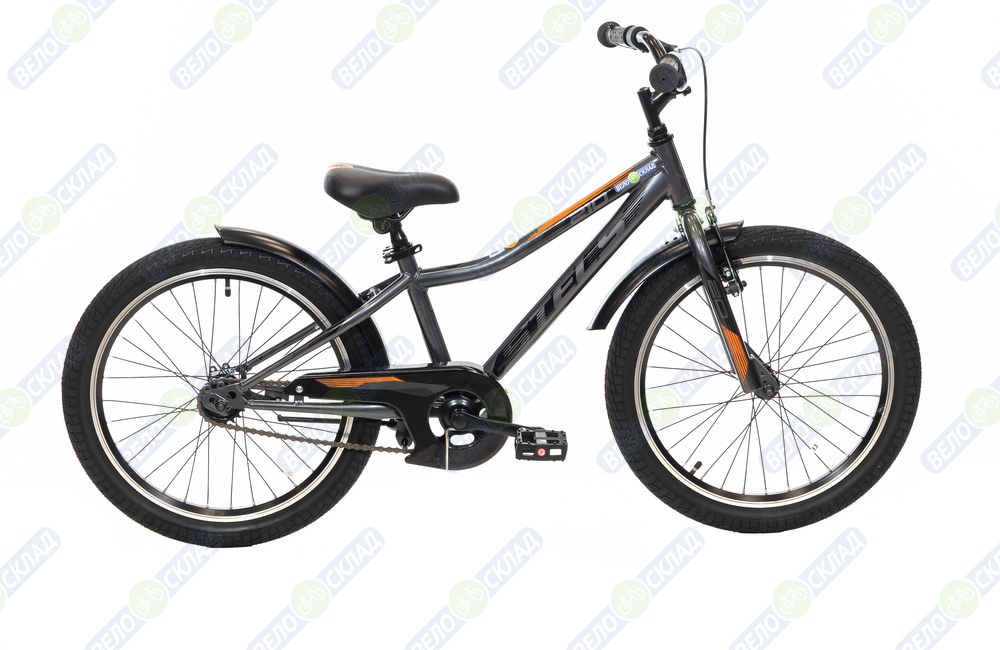 Велосипед, предназначенный для детей в возрасте от пяти до девяти лет, без переключения передач. Технические особенности: прочная стальная рама (прямой рулевой стакан, кареточный стакан BSA), жесткая стальная вилка, одинарные алюминиевые обода (под AV ниппель), передний тормоз - ободной (V-типа), задний тормоз - ножной, защита цепи, крылья, катафоты, звонок, подножка. Подходит для обучения и прогулочного катания в городских условиях. Диаметр колес - 20 дюймов. Вес - 12 кг.