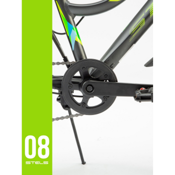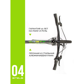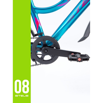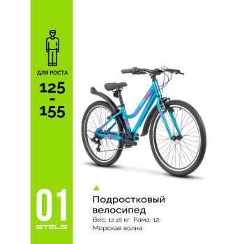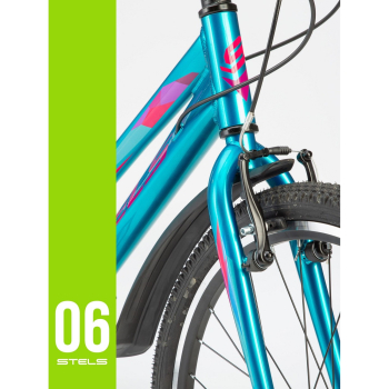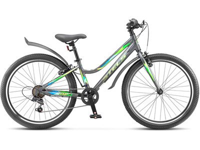 Велосипед, предназначенный для детей в возрасте от восьми до тринадцати лет, с оборудованием начального класса Shimano, 6 скоростей. Технические особенности: легкая алюминиевая рама (частично скрытая проводка, прямой рулевой стакан, кареточный стакан BSA, интегрированный петух), жесткая стальная вилка, двойные алюминиевые обода (под AV ниппель), надежные ободные тормоза V-типа, защита цепи, пластиковые крылья, катафоты. Подходит для прогулочного катания в городских условиях и по несложным маршрутам в лесу. Диаметр колес - 24 дюйма. Вес - 12,18 кг.