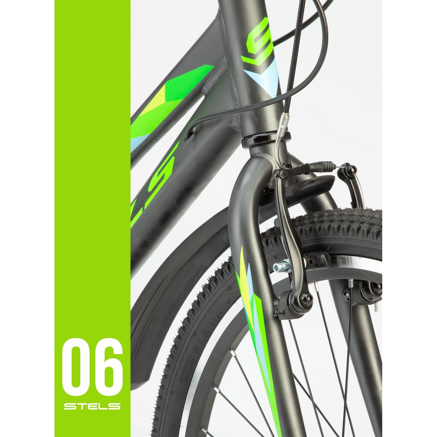 Велосипед, предназначенный для детей в возрасте от восьми до тринадцати лет, с оборудованием начального класса Shimano, 6 скоростей. Технические особенности: легкая алюминиевая рама (частично скрытая проводка, прямой рулевой стакан, кареточный стакан BSA, интегрированный петух), жесткая стальная вилка, двойные алюминиевые обода (под AV ниппель), надежные ободные тормоза V-типа, защита цепи, пластиковые крылья, катафоты. Подходит для прогулочного катания в городских условиях и по несложным маршрутам в лесу. Диаметр колес - 24 дюйма. Вес - 12,18 кг.