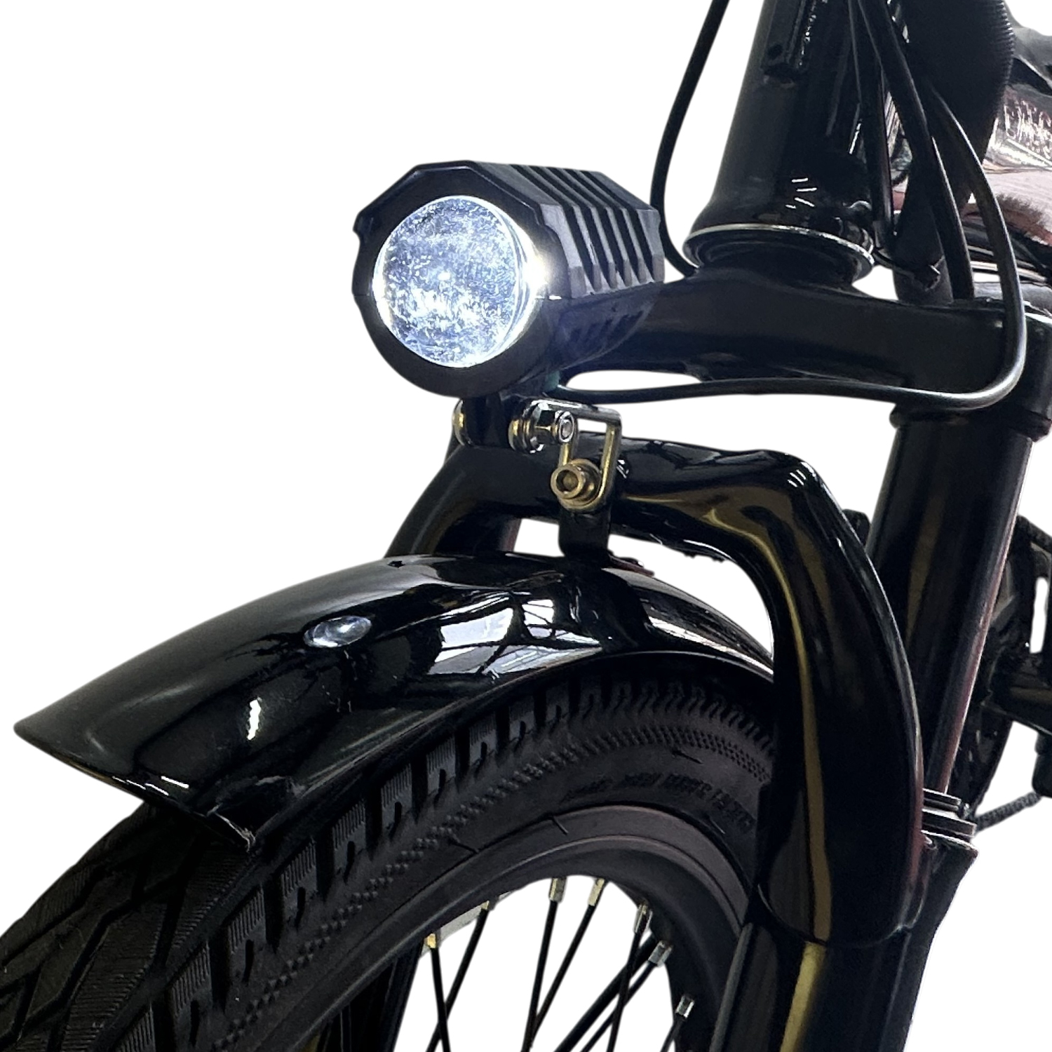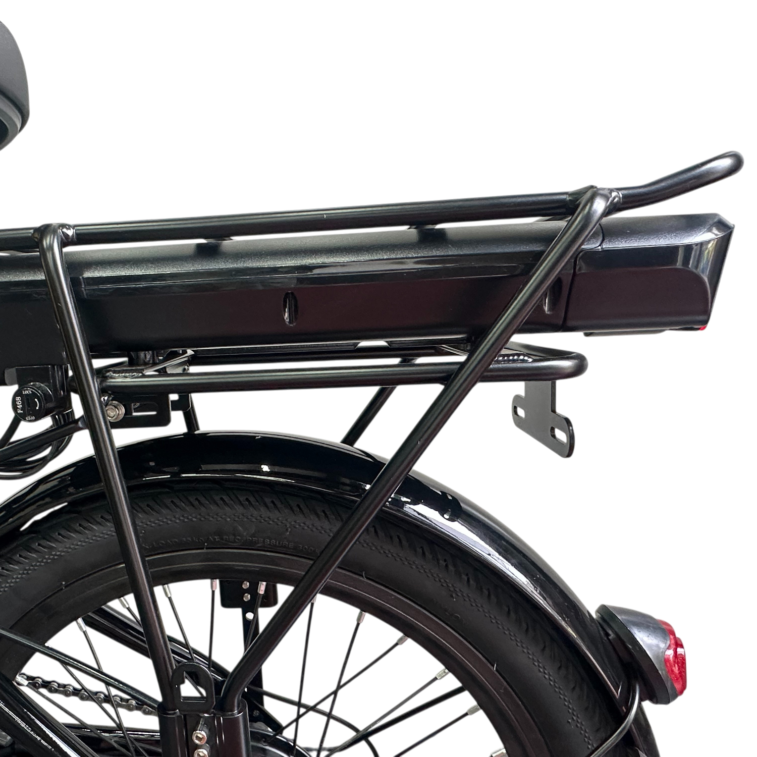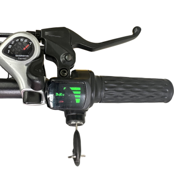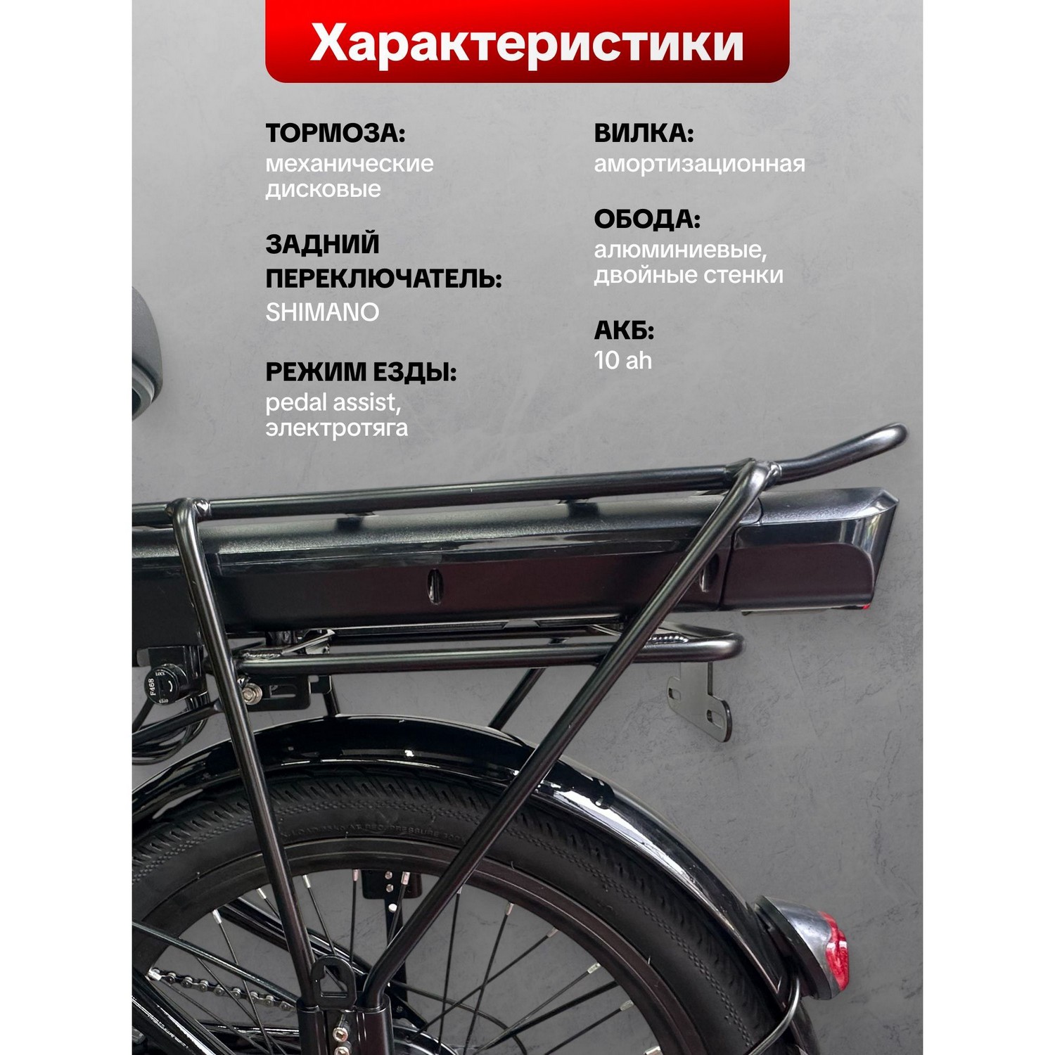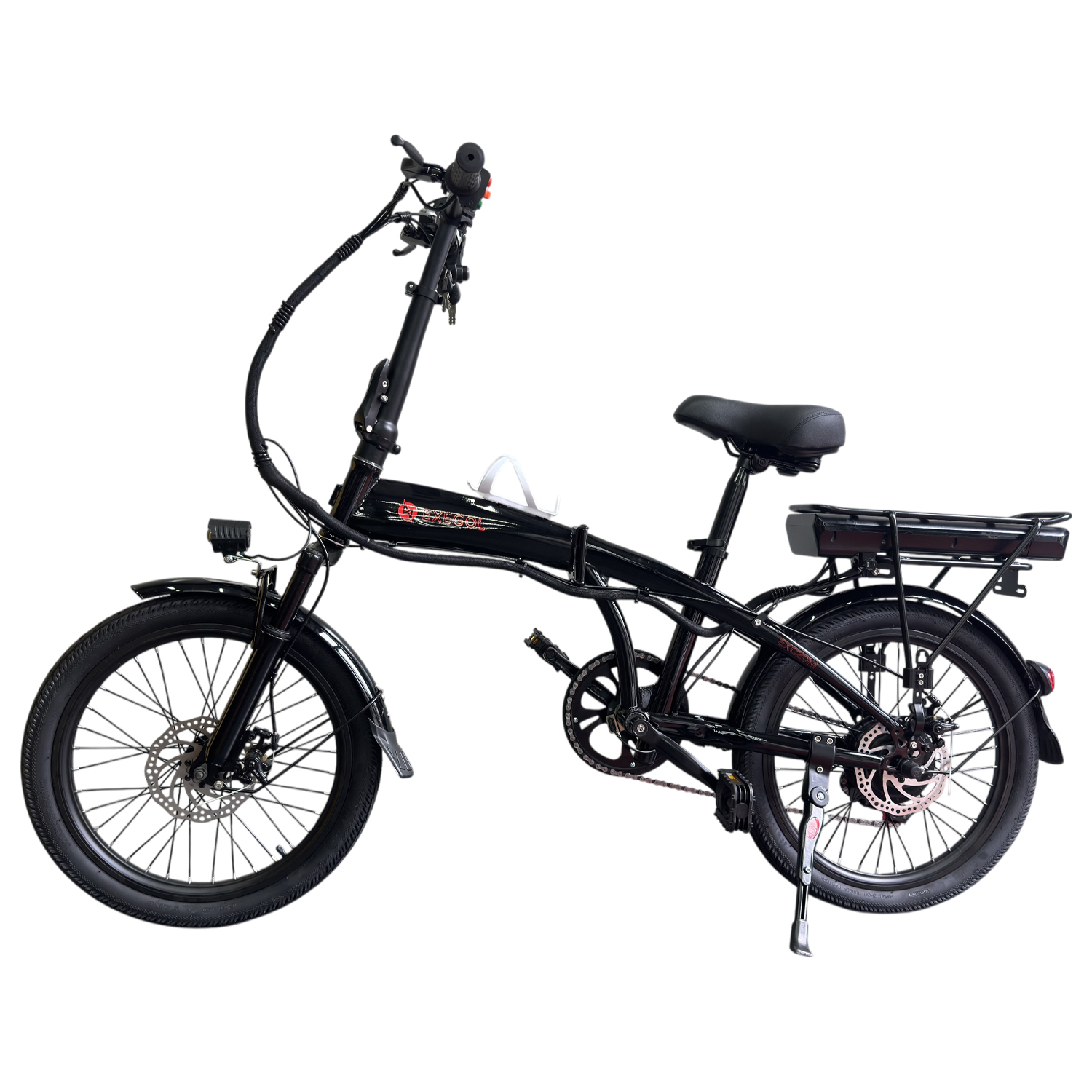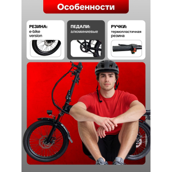 Комфортабельный складной электровелосипед с оборудованием начального класса Shimano, 7 скоростей. Максимальная нагрузка: до 120 кг. Максимальная скорость: 25 км/ч. Пробег на одной зарядке: до 40 км. Время полной зарядки: 8 часов. Режимы езды: pedal assist, электротяга. Подходит для прогулочного катания в городских условиях и по несложным маршрутам в лесу. Диаметр колес - 20 дюймов. Вес - 22 кг.