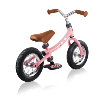 Беговел для детей возрастом от трех до шести лет, без переключения передач. Технические особенности: прочная стальная рама (реверсивная конструкция для растущего ребенка), жесткая стальная вилка, одинарные стальные обода (под AV ниппель), тормоза не предусмотрены конструкцией (торможение ногами), съемные подножки. Подходит для обучения и прогулочного катания в городских условиях. Диаметр колес - 10 дюймов. Вес - 4,02 кг.