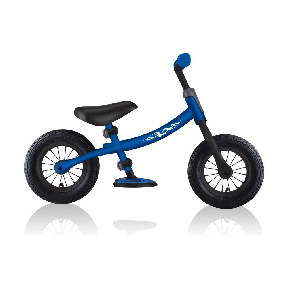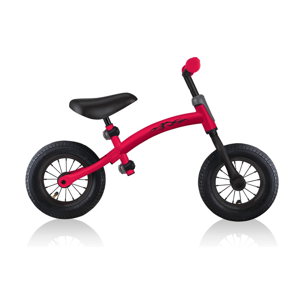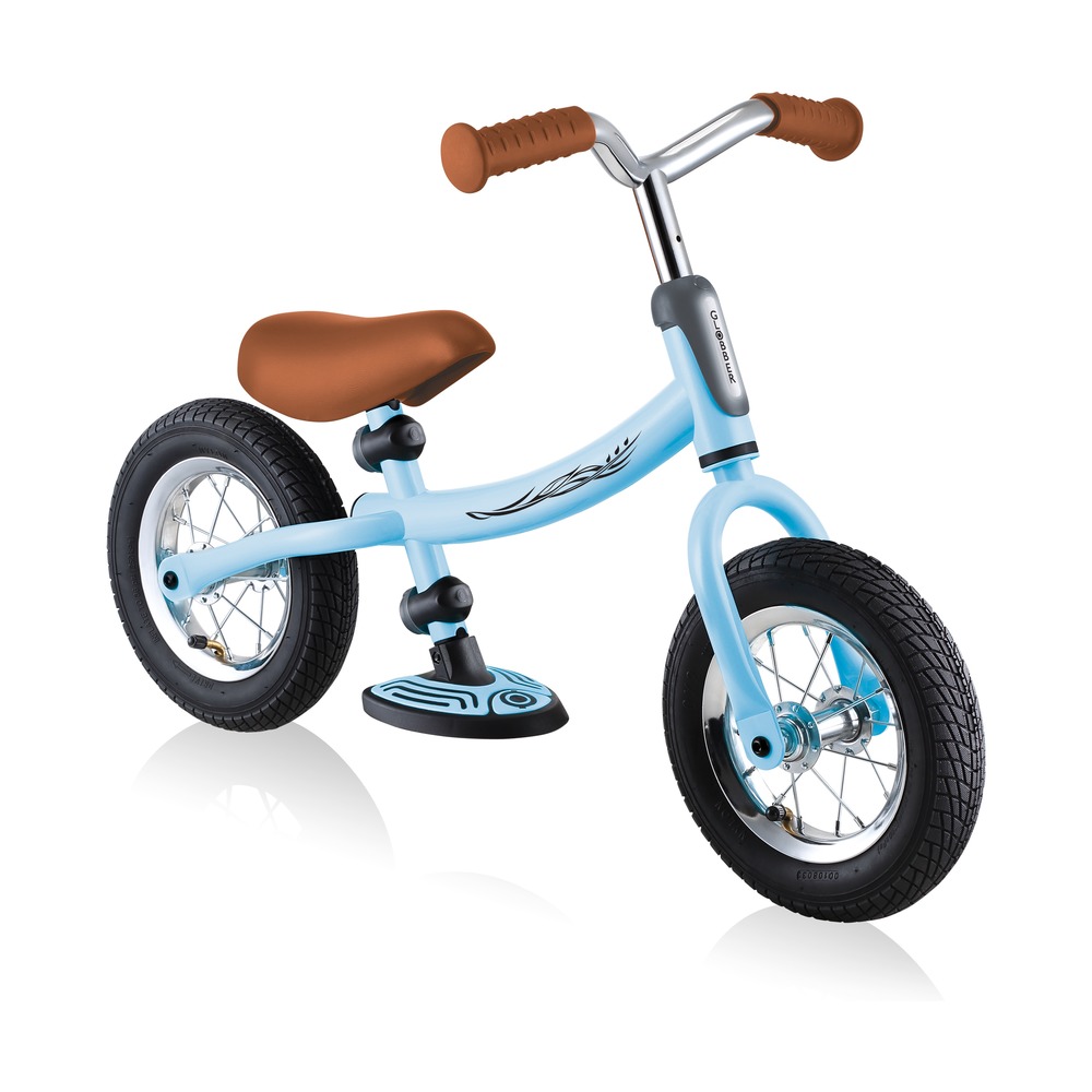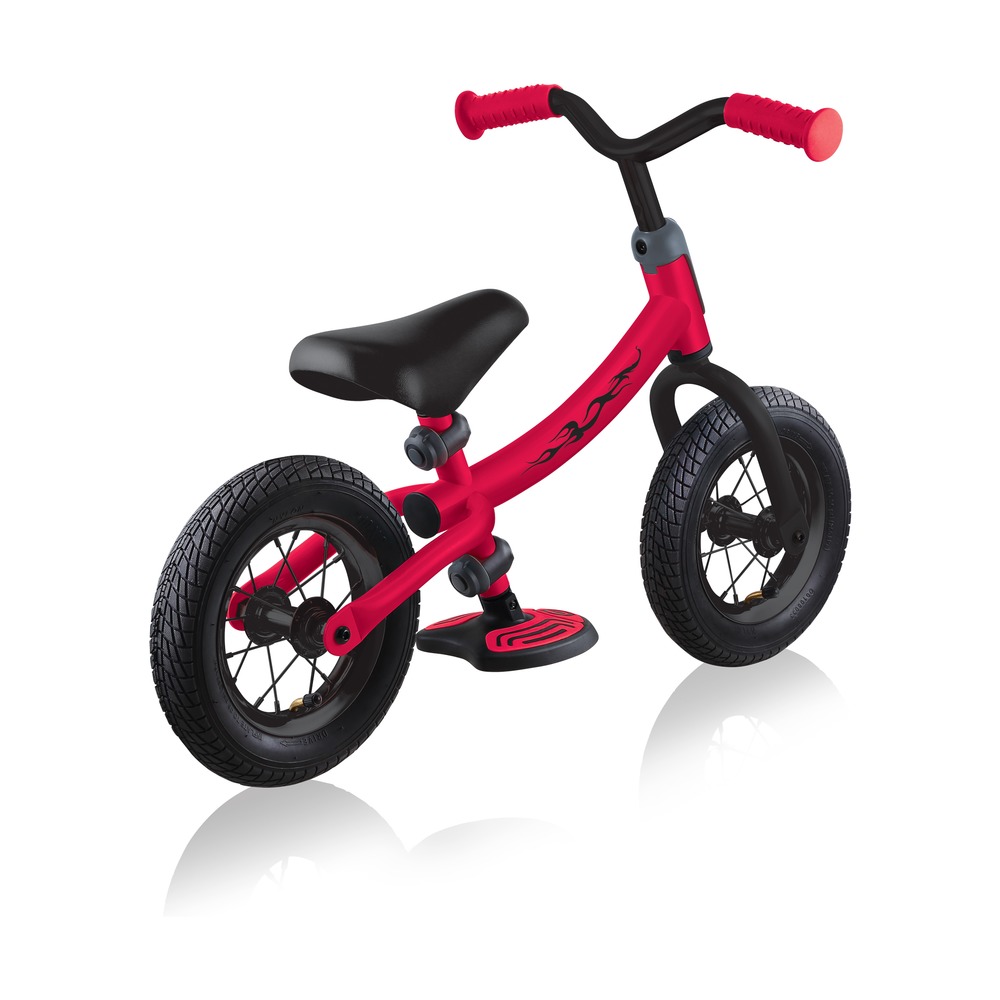 Беговел для детей возрастом от трех до шести лет, без переключения передач. Технические особенности: прочная стальная рама (реверсивная конструкция для растущего ребенка), жесткая стальная вилка, одинарные стальные обода (под AV ниппель), тормоза не предусмотрены конструкцией (торможение ногами), съемные подножки. Подходит для обучения и прогулочного катания в городских условиях. Диаметр колес - 10 дюймов. Вес - 4,02 кг.