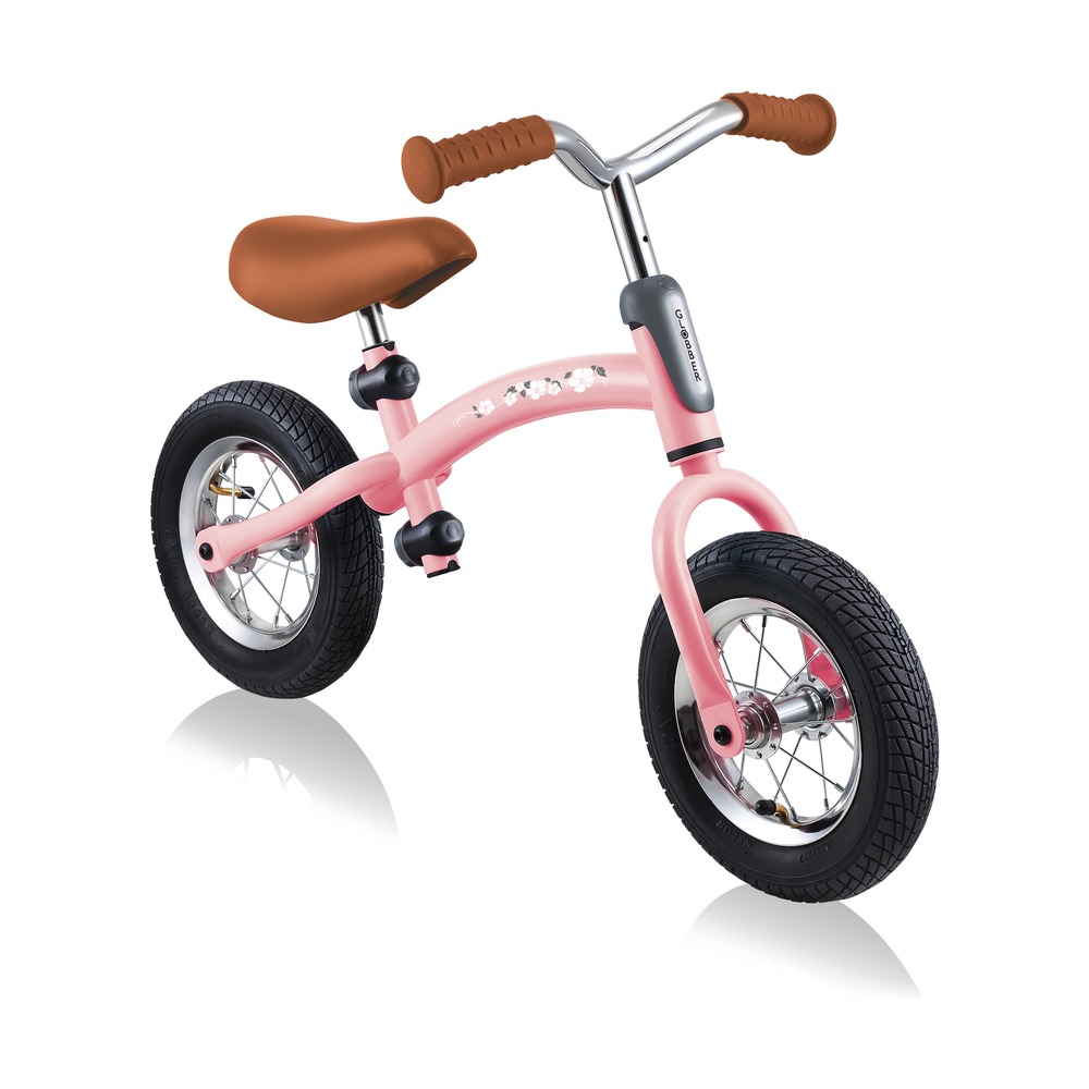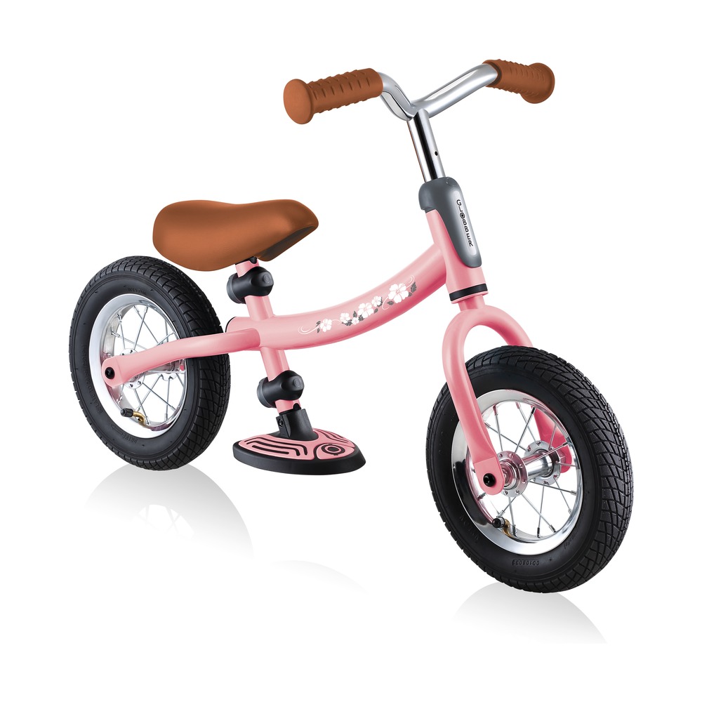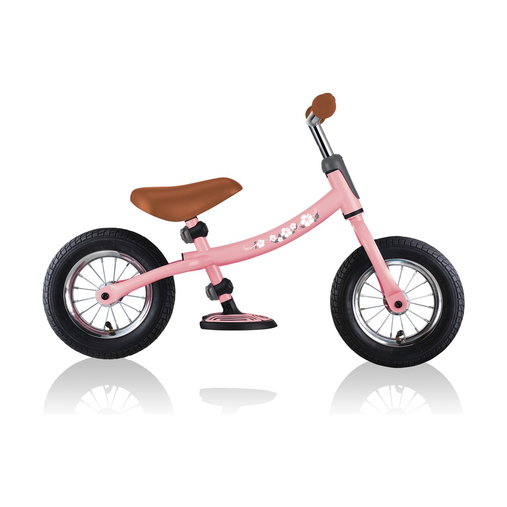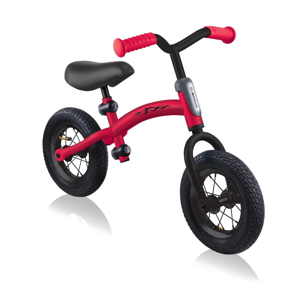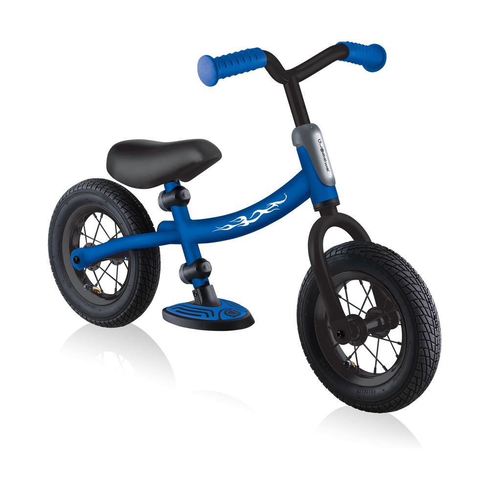 Беговел для детей возрастом от трех до шести лет, без переключения передач. Технические особенности: прочная стальная рама (реверсивная конструкция для растущего ребенка), жесткая стальная вилка, одинарные стальные обода (под AV ниппель), тормоза не предусмотрены конструкцией (торможение ногами), съемные подножки. Подходит для обучения и прогулочного катания в городских условиях. Диаметр колес - 10 дюймов. Вес - 4,02 кг.
