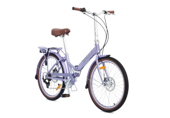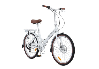 Складной велосипед с оборудованием начального класса Shimano, 7 скоростей. Подходит для прогулочного катания в городских условиях и по ровным проселочным дорогам. Размер в сложенном виде: 91×75×36 см. Диаметр колес - 24 дюйма. Вес - 14,9 кг.