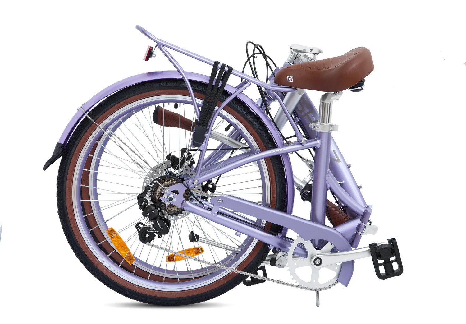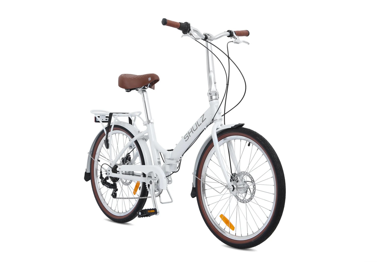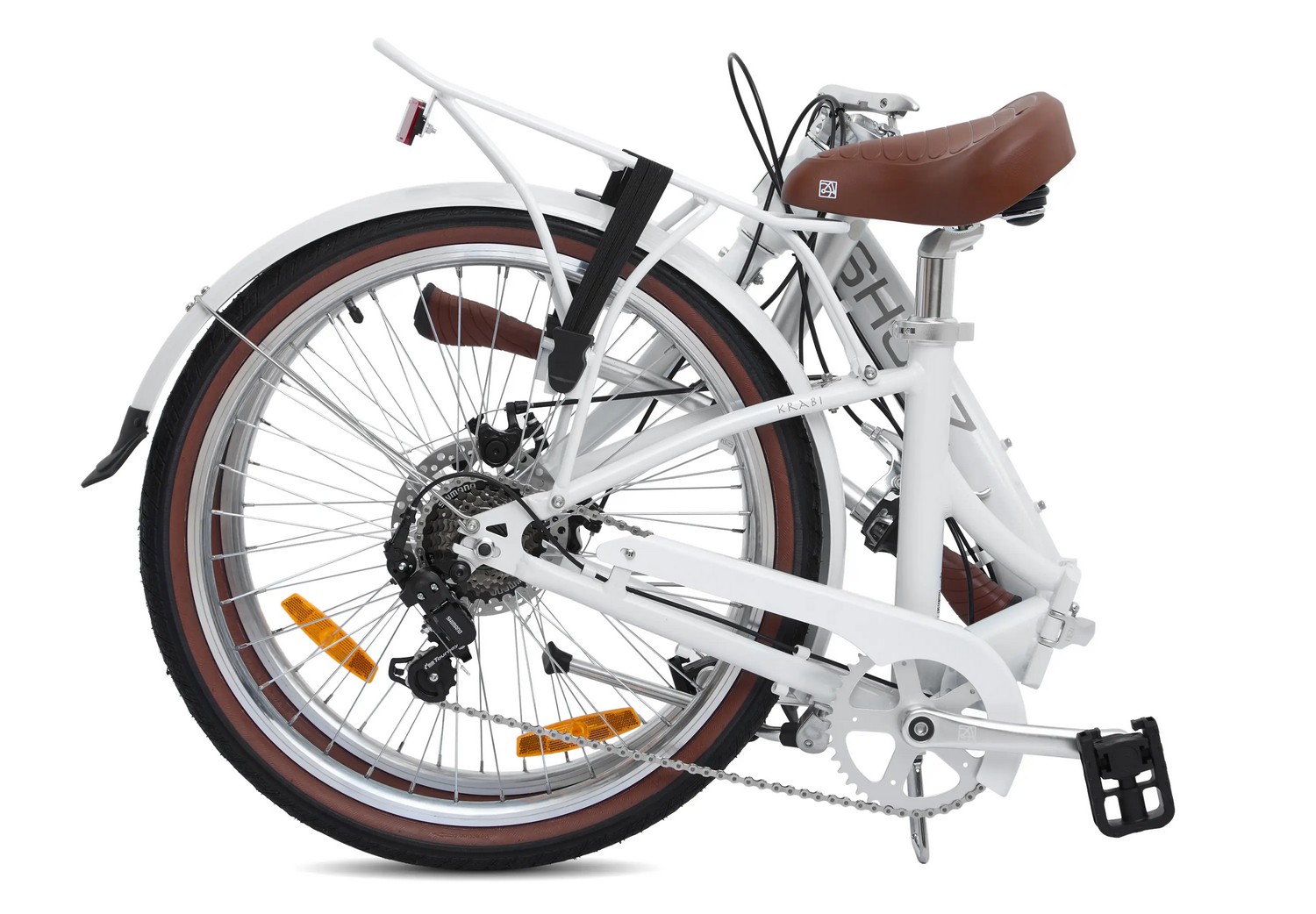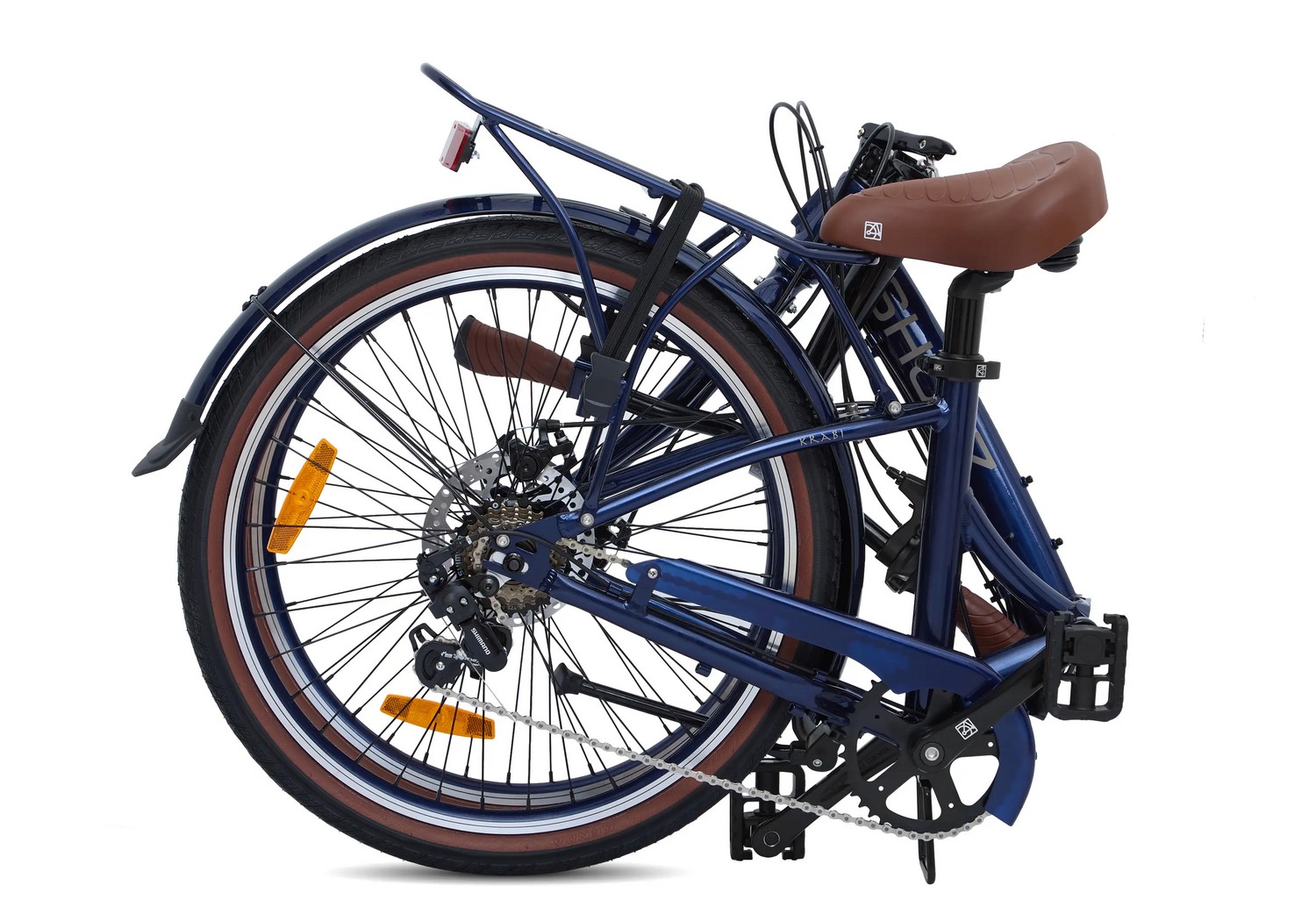 Складной велосипед с оборудованием начального класса Shimano, 7 скоростей. Подходит для прогулочного катания в городских условиях и по ровным проселочным дорогам. Размер в сложенном виде: 91×75×36 см. Диаметр колес - 24 дюйма. Вес - 14,9 кг.