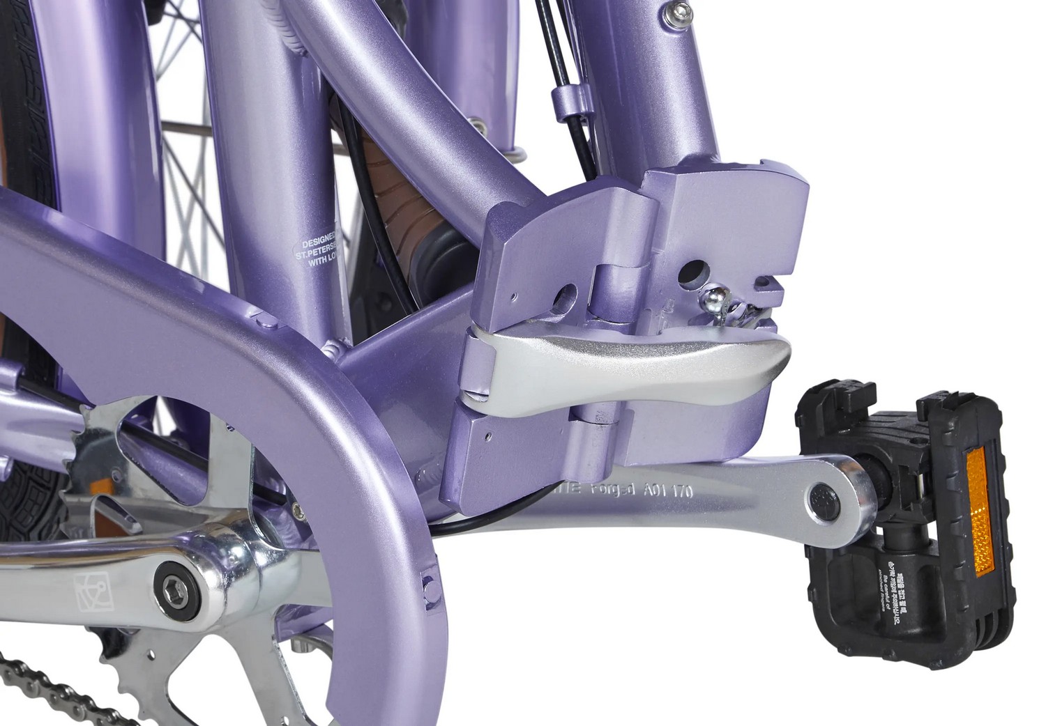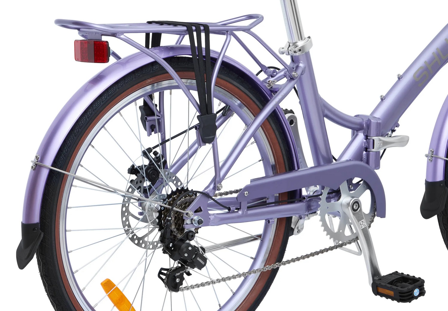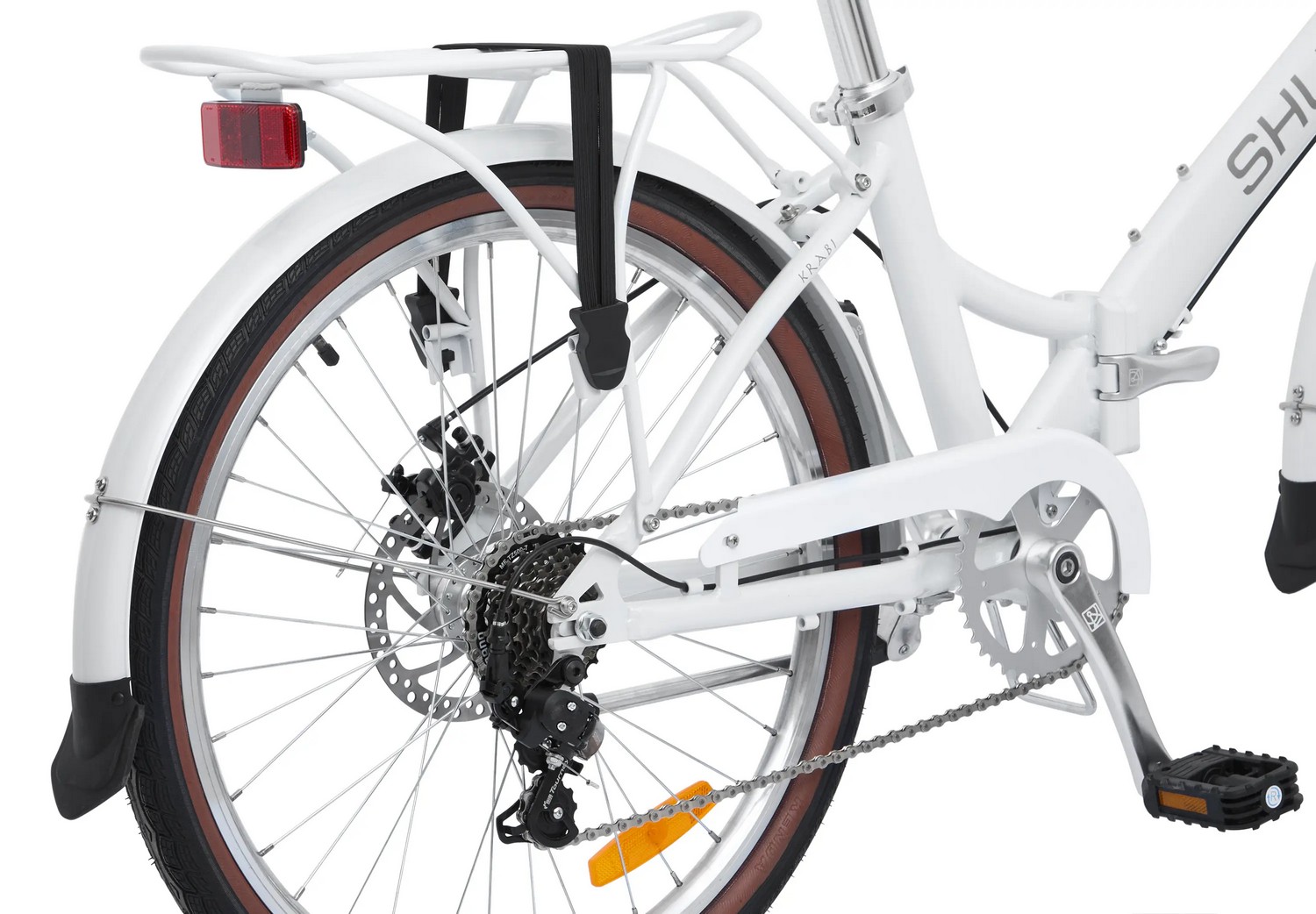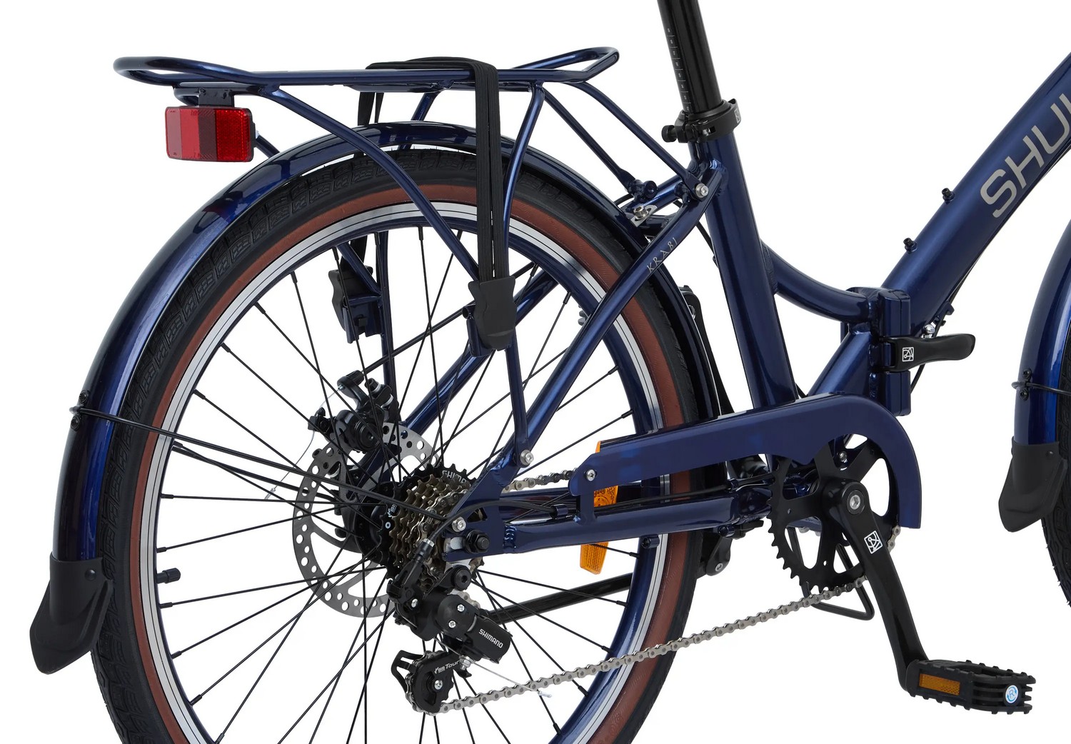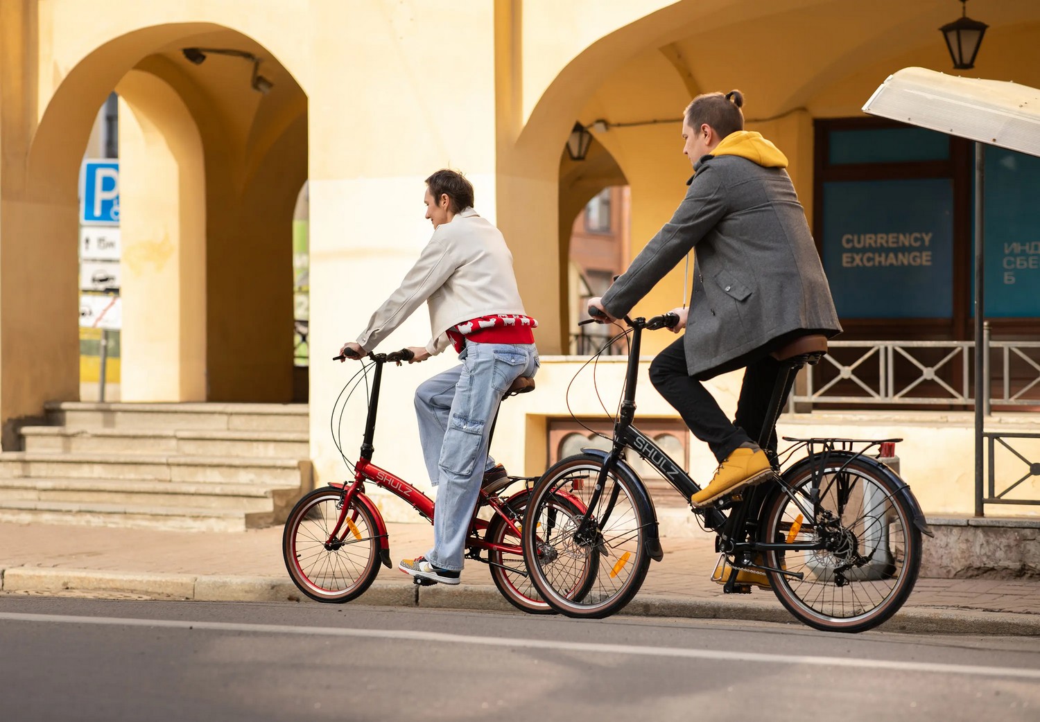 Складной велосипед с оборудованием начального класса Shimano, 7 скоростей. Подходит для прогулочного катания в городских условиях и по ровным проселочным дорогам. Размер в сложенном виде: 91×75×36 см. Диаметр колес - 24 дюйма. Вес - 14,9 кг.
