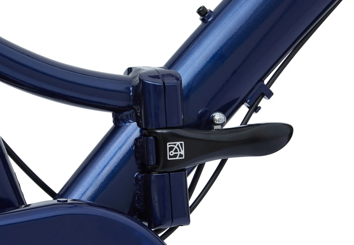 - легкая алюминиевая рама (сплав 6061, внешняя проводка, регулируемый механизм складывания, кареточный стакан BSA, крепление калипера IS),