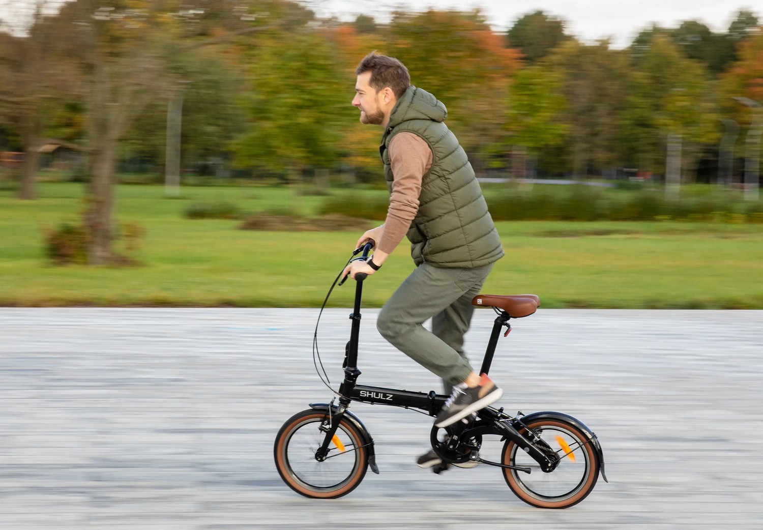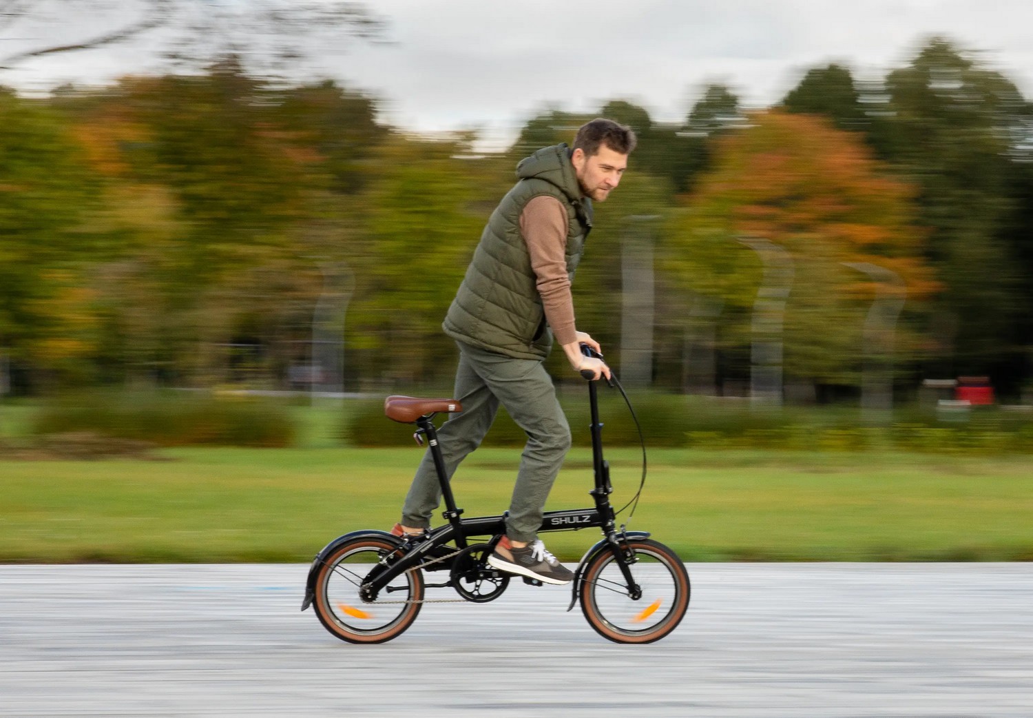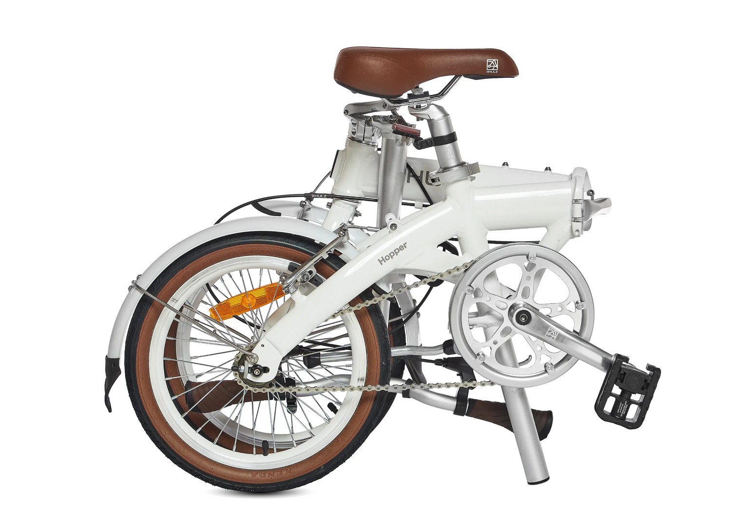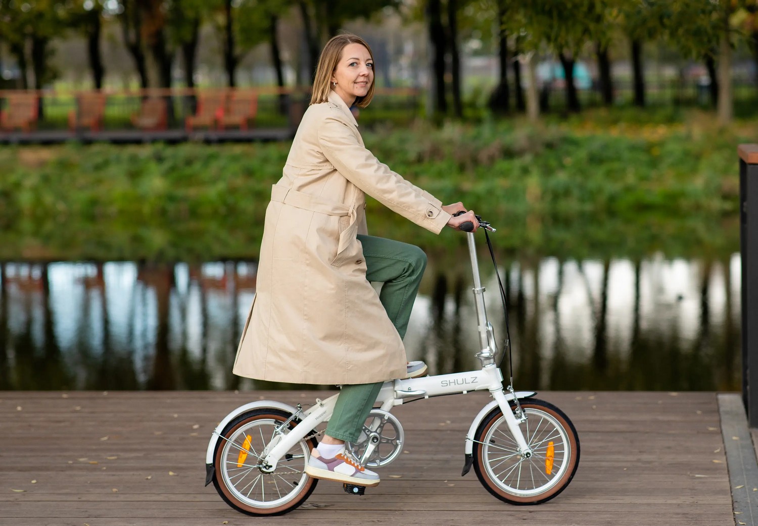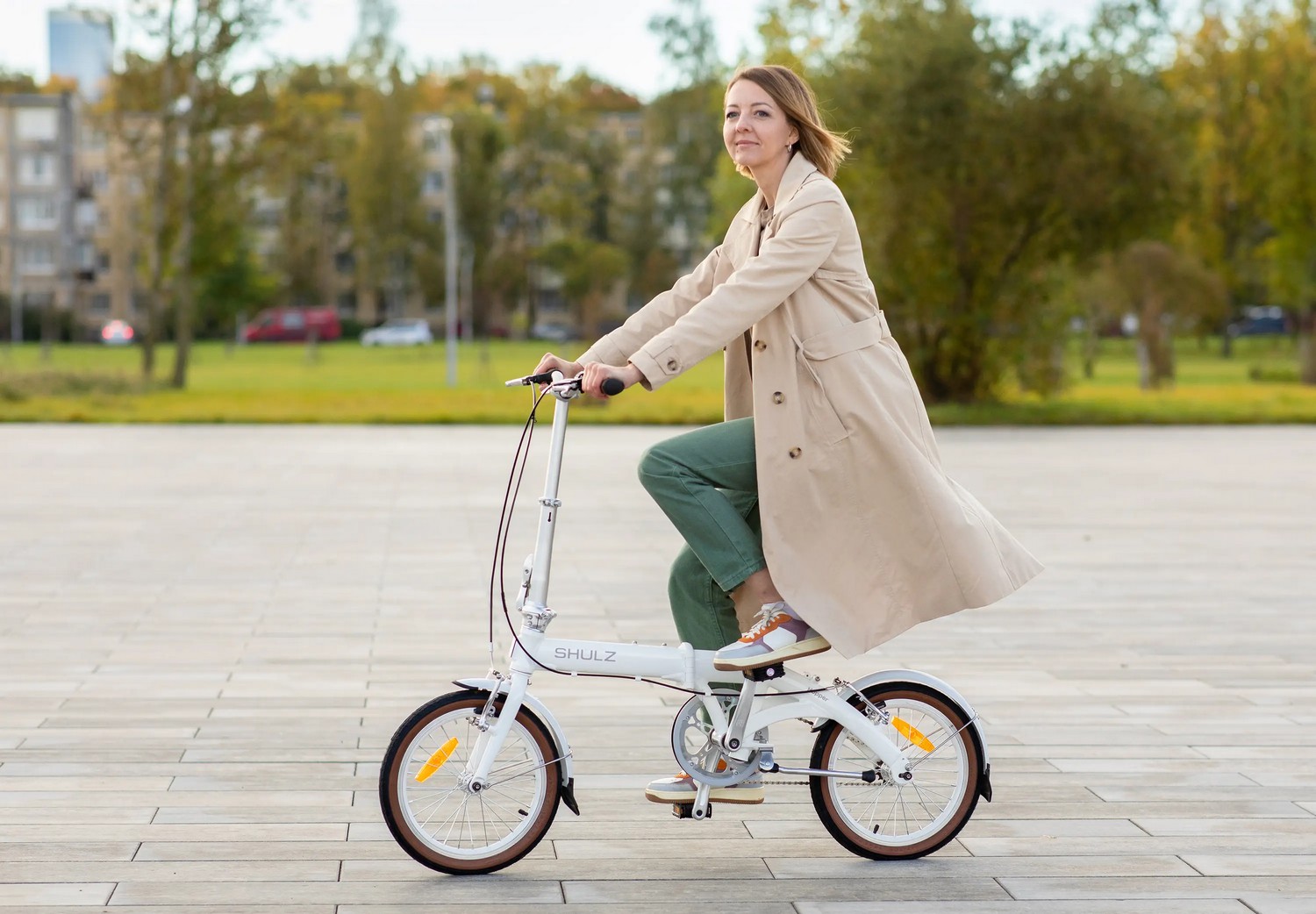 Компактный складной велосипед без переключения передач. Подходит для прогулочного катания в городских условиях. Размер в сложенном виде: 75×63×36 см. Максимальная нагрузка на раму: до 100 кг. Диаметр колес - 16 дюймов. Вес - 10,1 кг.