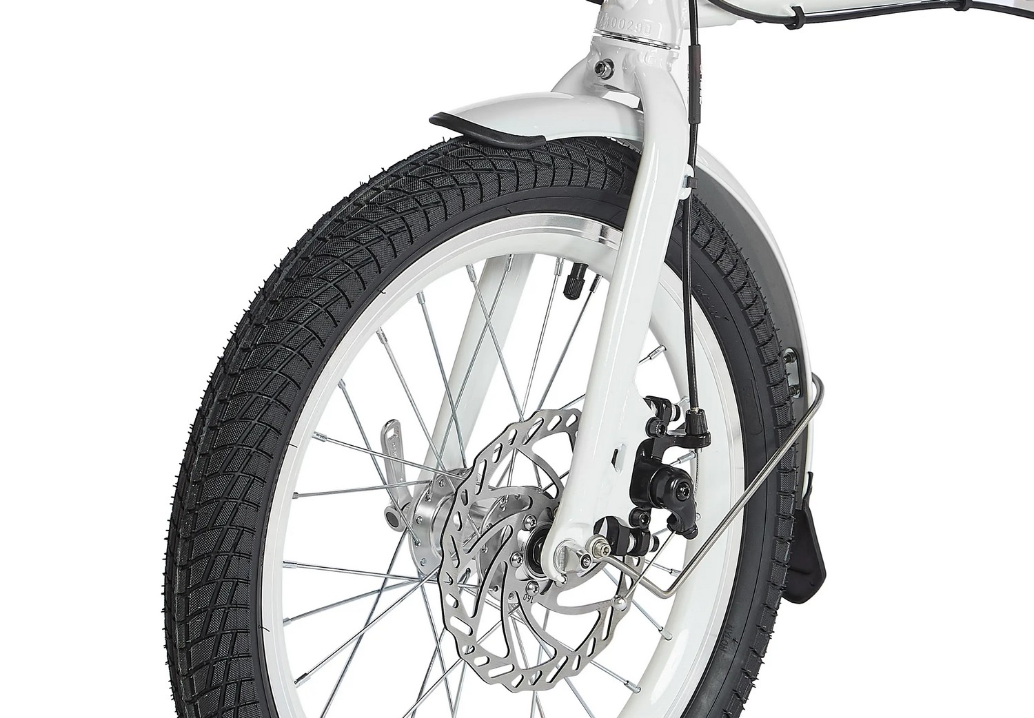 Компактный складной велосипед с навесным оборудованием Microshift, 8 скоростей. Подходит для прогулочного катания в городских условиях. Размер в сложенном виде: 82×70×36 см. Максимальная нагрузка на раму: до 100 кг. Диаметр колес - 18 дюймов. Вес - 13,7 кг.
