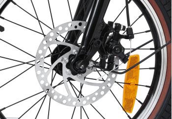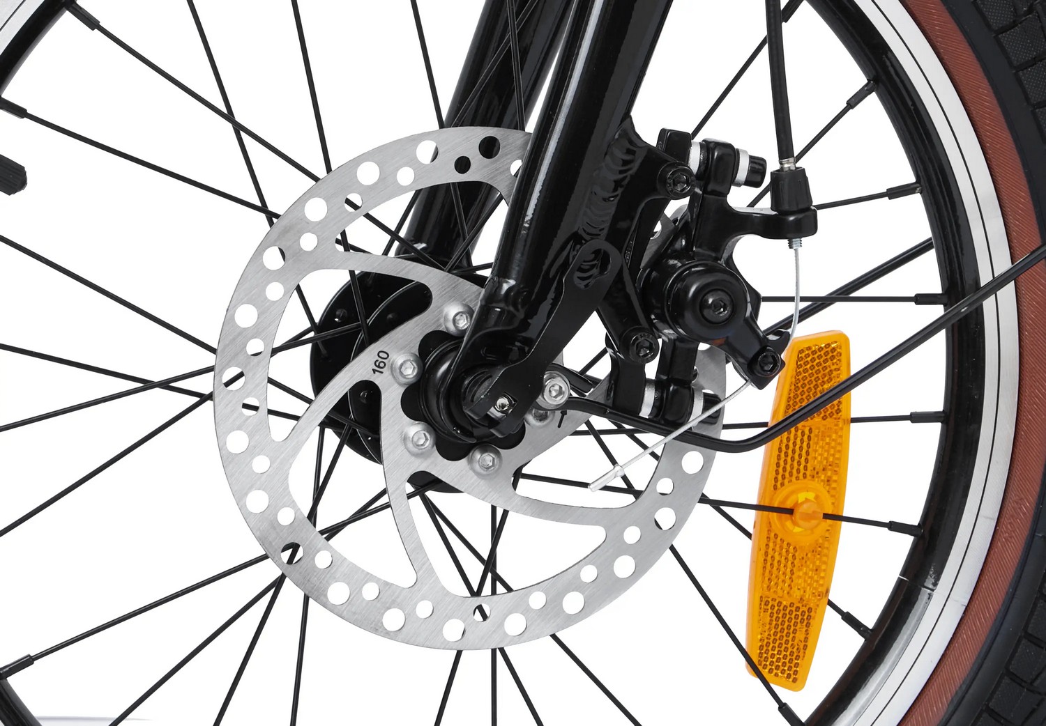 - легкая алюминиевая рама (сплав 6061, внешняя проводка, усиленный механизм складывания, кареточный стакан BSA, съемный петух, крепление калипера IS),