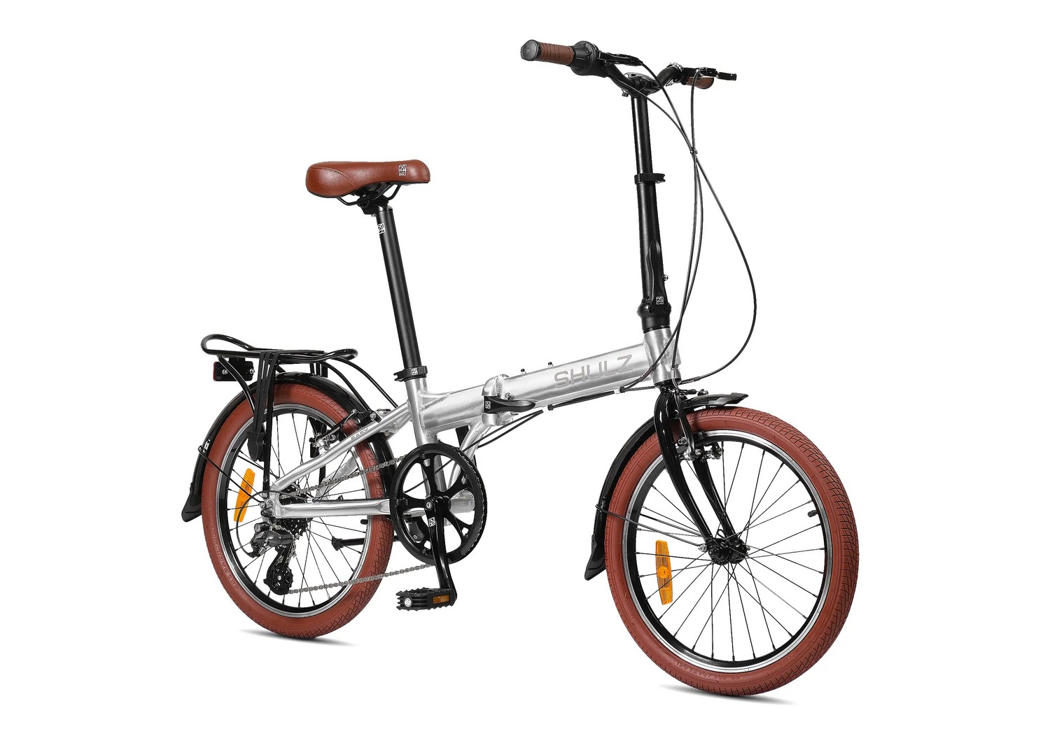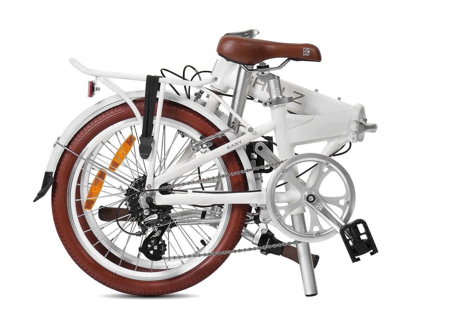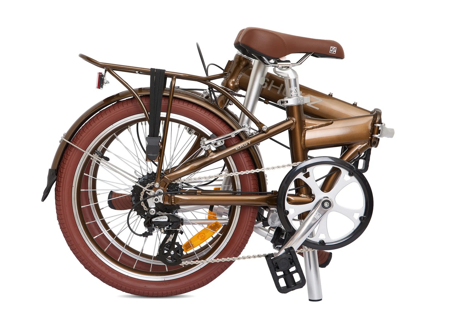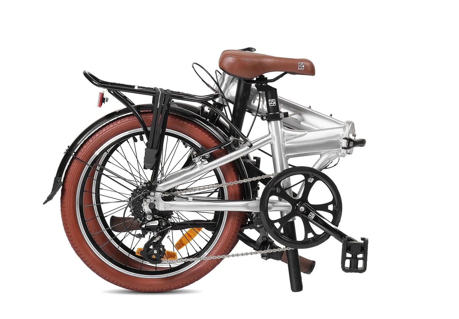 Складной прогулочный велосипед с навесным оборудованием Shimano/Microshift, 8 скоростей. Подходит для прогулочного катания в городских условиях. Размер в сложенном виде: 85×66×35 см. Максимальная нагрузка на раму: до 100 кг. Диаметр колес - 20 дюймов. Вес - 13,3 кг.