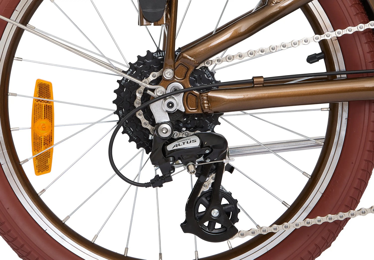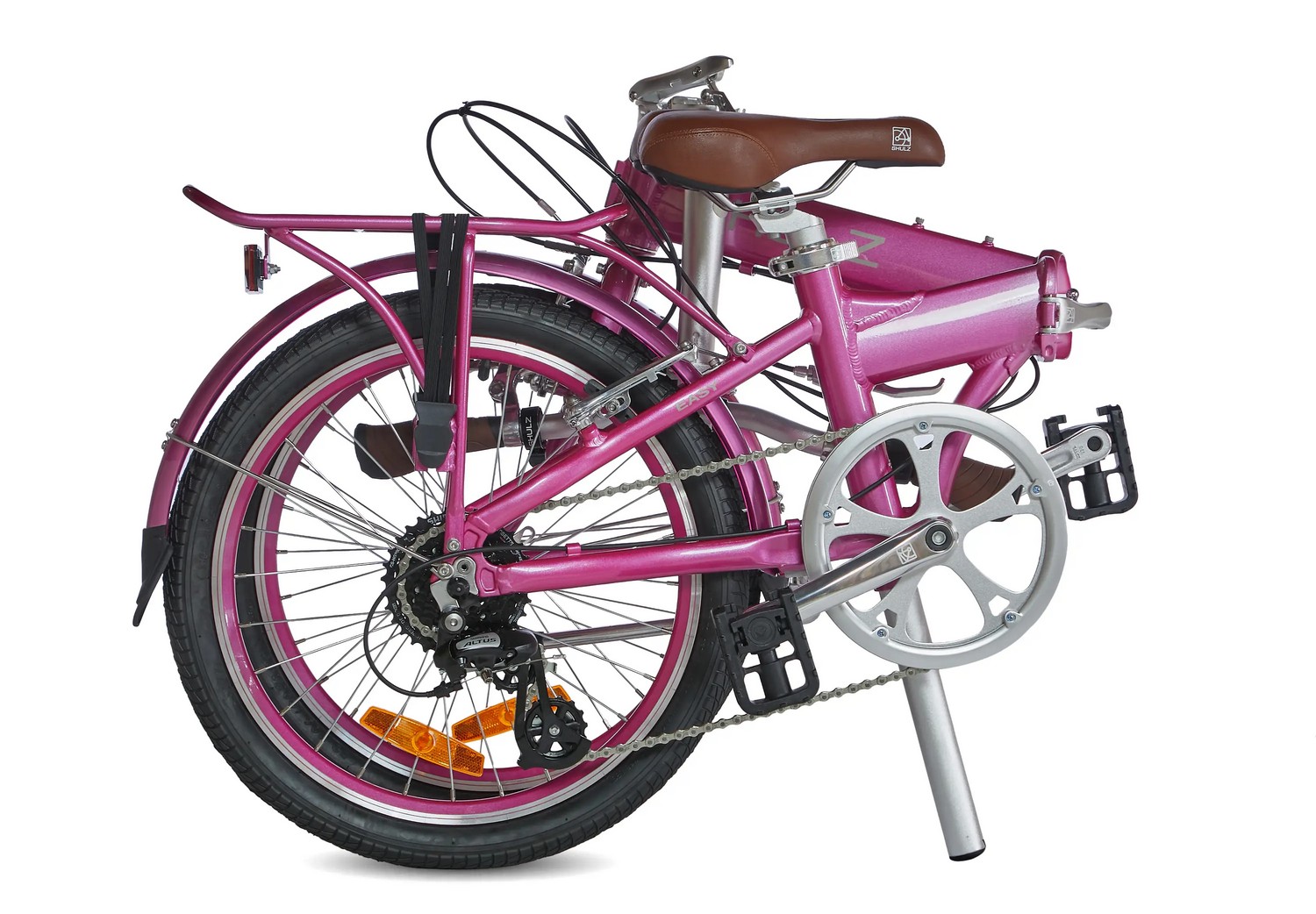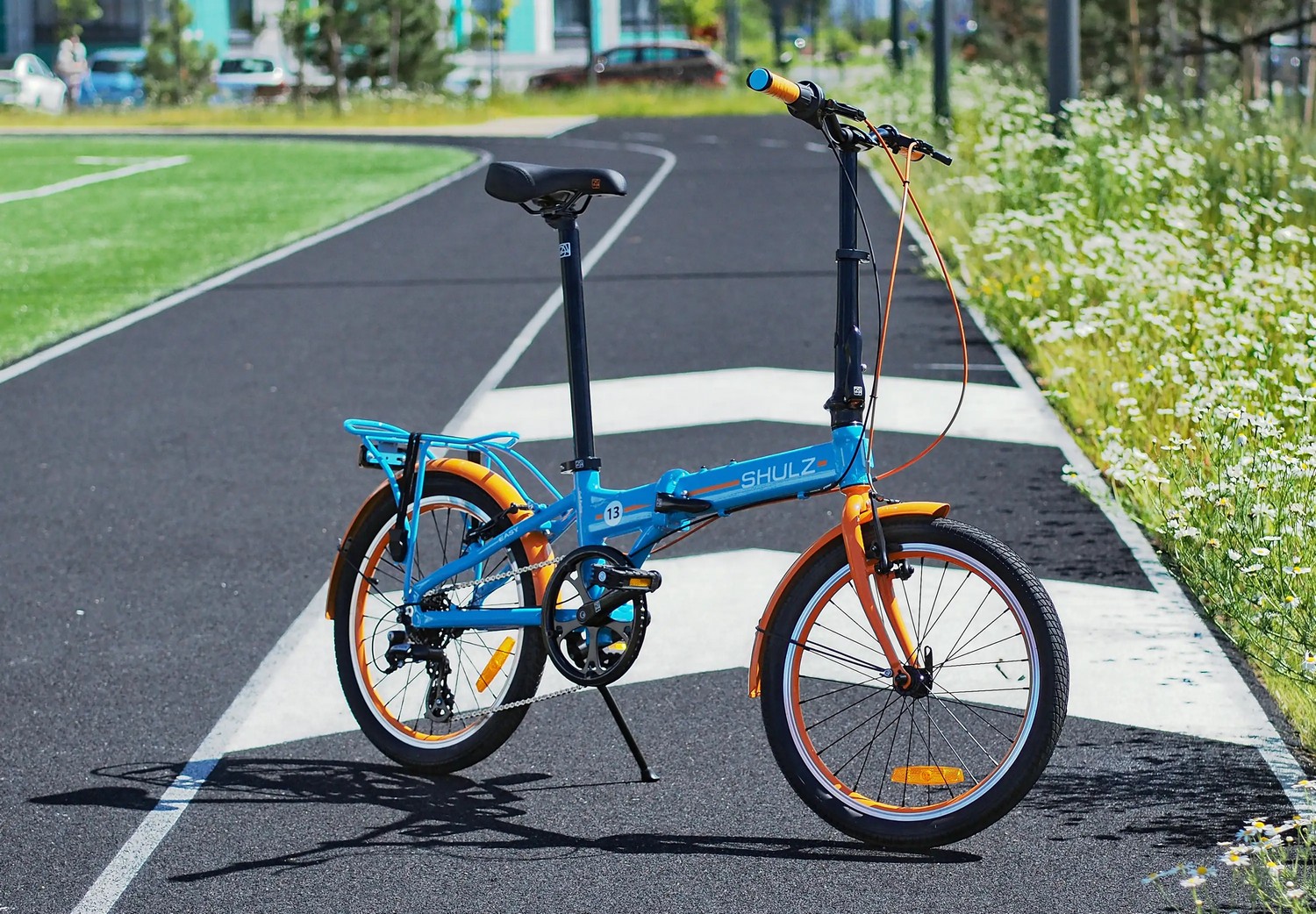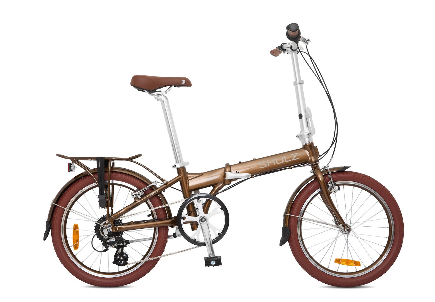 Складной прогулочный велосипед с навесным оборудованием Shimano/Microshift, 8 скоростей. Подходит для прогулочного катания в городских условиях. Размер в сложенном виде: 85×66×35 см. Максимальная нагрузка на раму: до 100 кг. Диаметр колес - 20 дюймов. Вес - 13,3 кг.