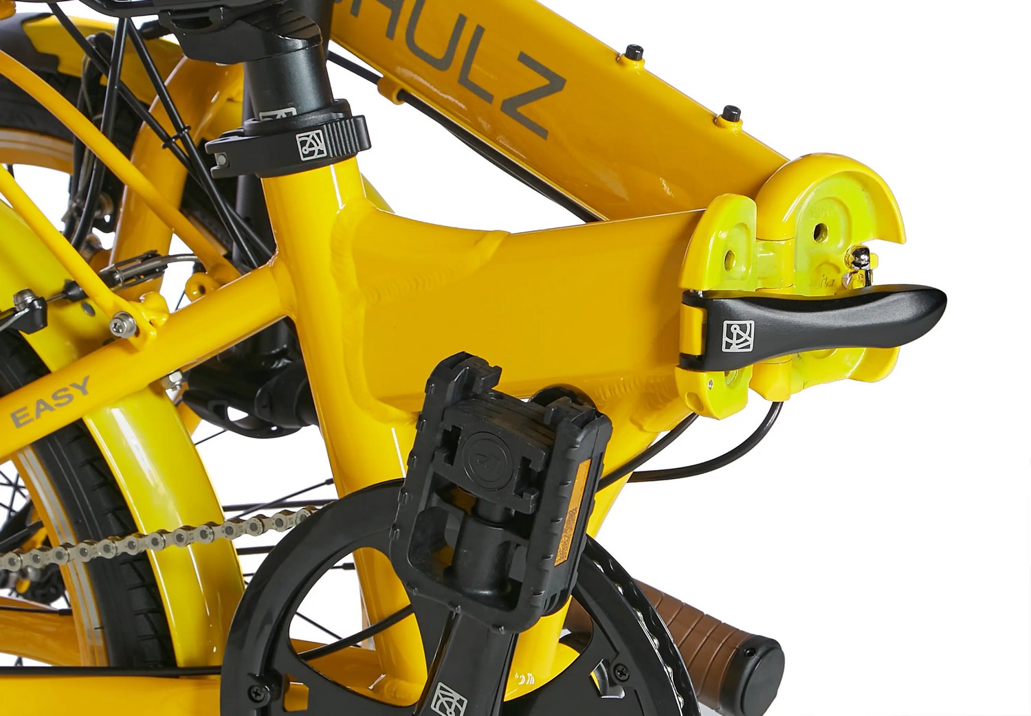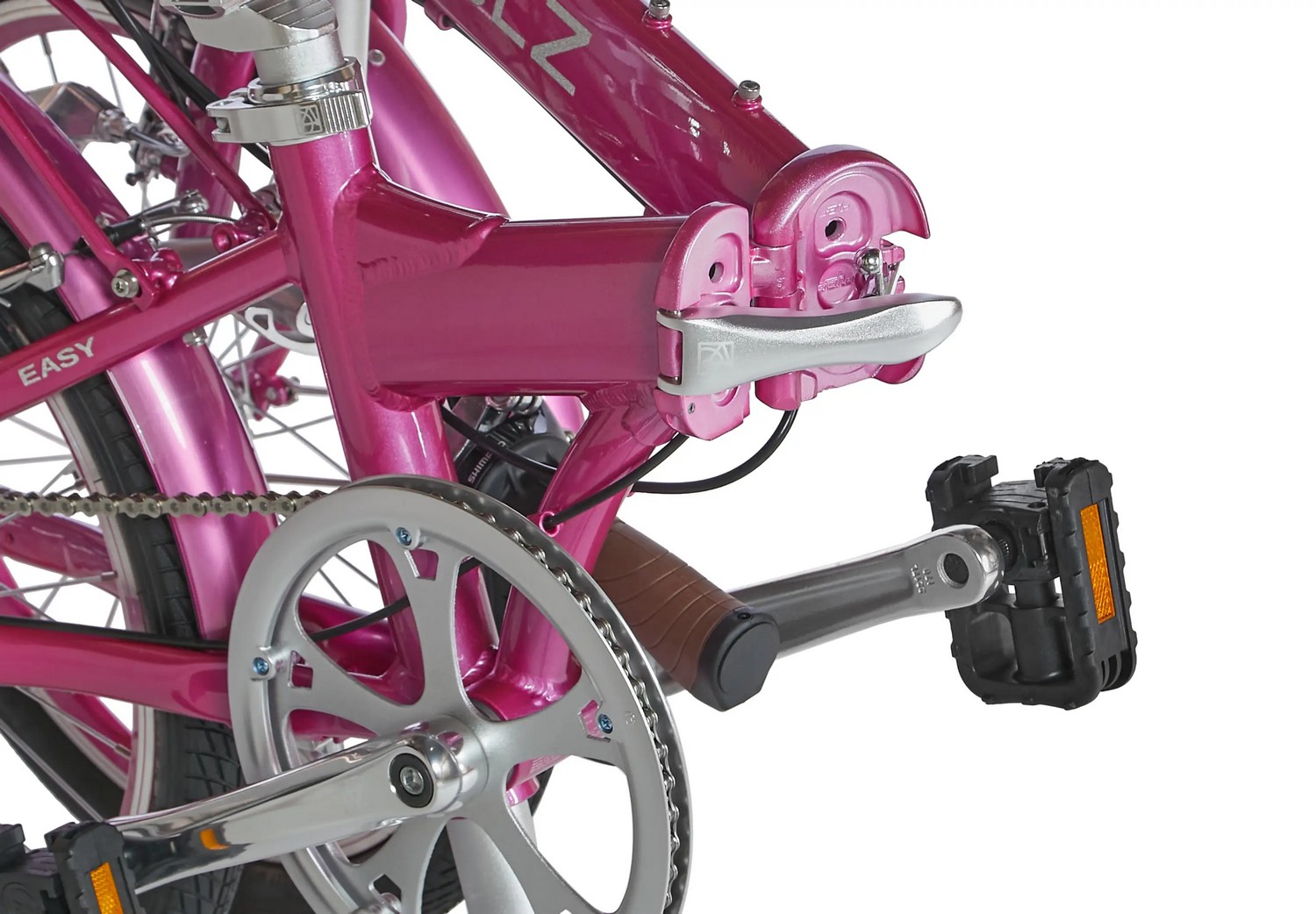 - легкая алюминиевая рама (сплав 6061, внешняя проводка, регулируемый механизм складывания, кареточный стакан BSA, съемный петух),