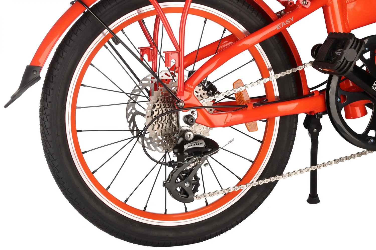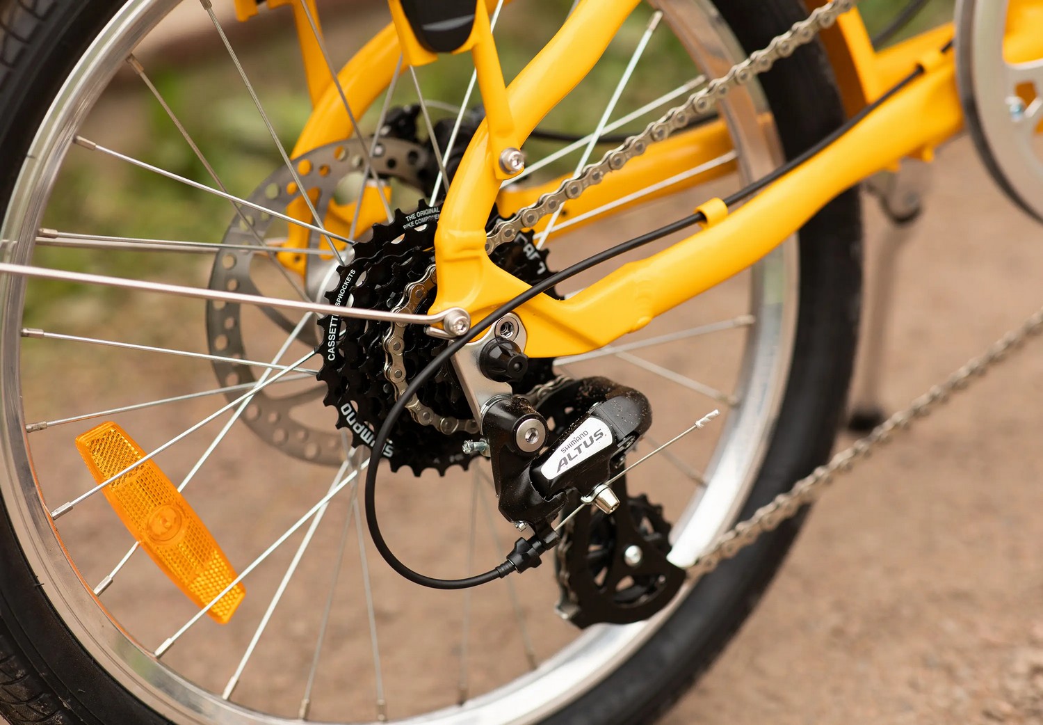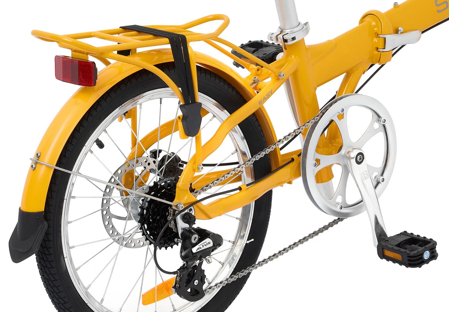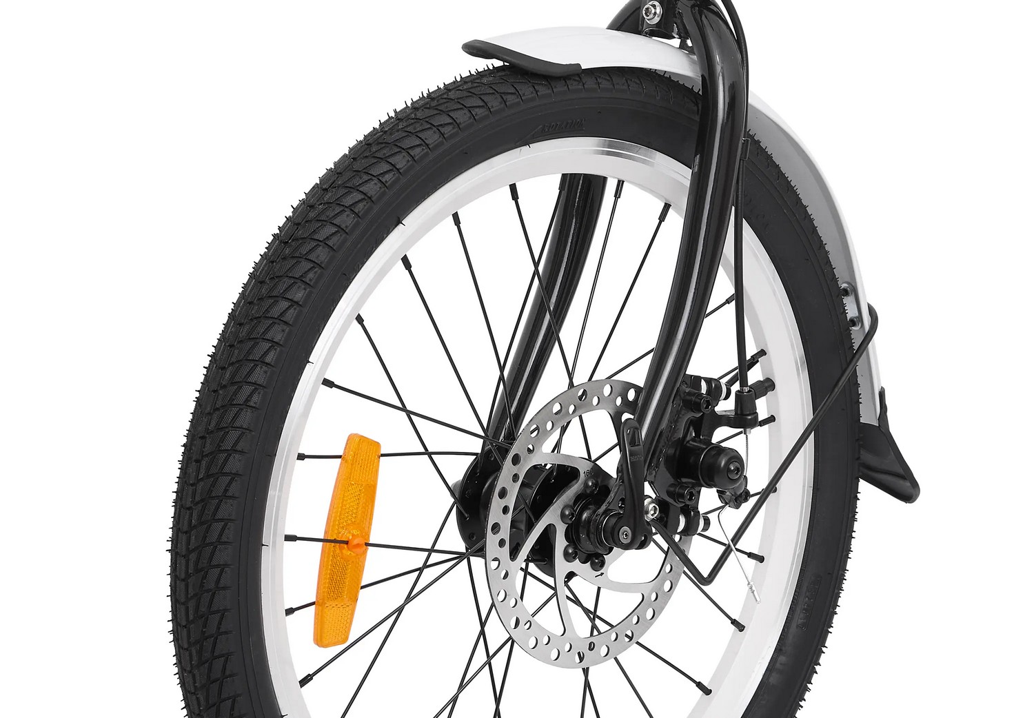 Складной прогулочный велосипед с навесным оборудованием Shimano, 8 скоростей. Подходит для прогулочного катания в городских условиях. Размер в сложенном виде: 85×66×35 см. Максимальная нагрузка на раму: до 100 кг. Диаметр колес - 20 дюймов. Вес - 13,8 кг.