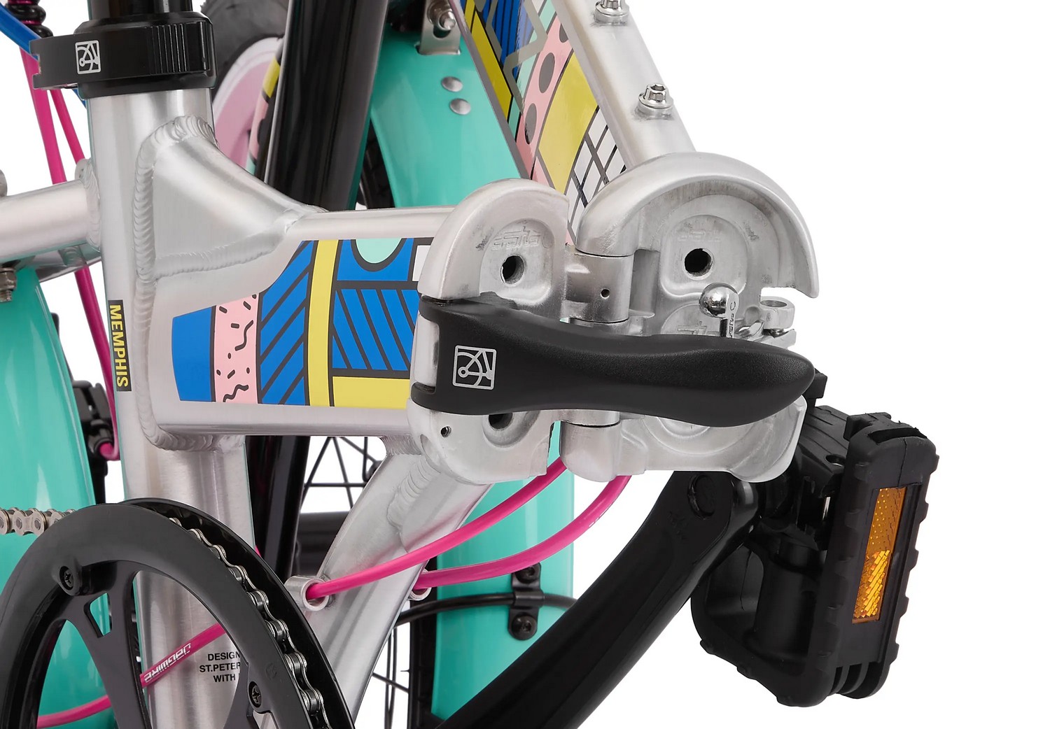 - легкая алюминиевая рама (сплав 6061, внешняя проводка, регулируемый механизм складывания, кареточный стакан BSA, съемный петух, крепление калипера Post Mount),