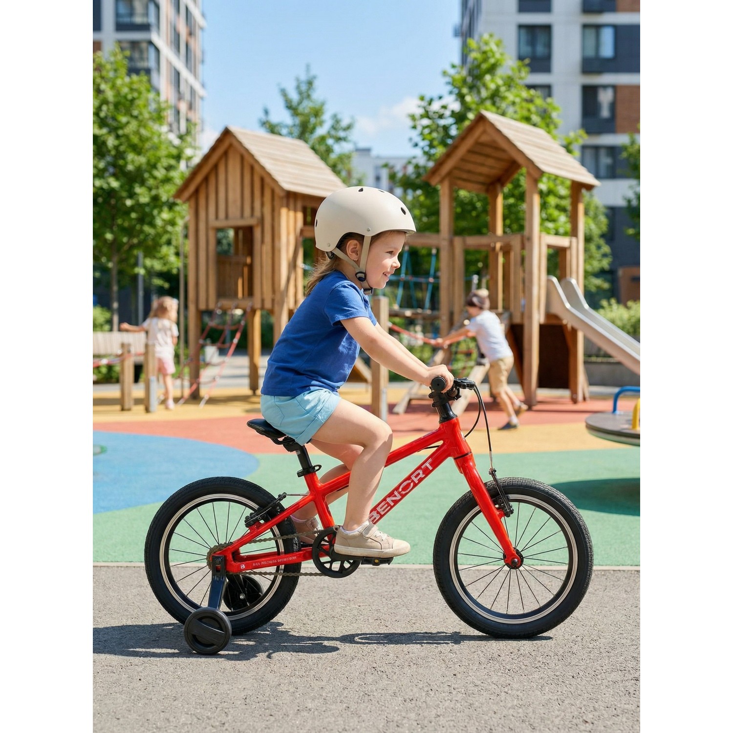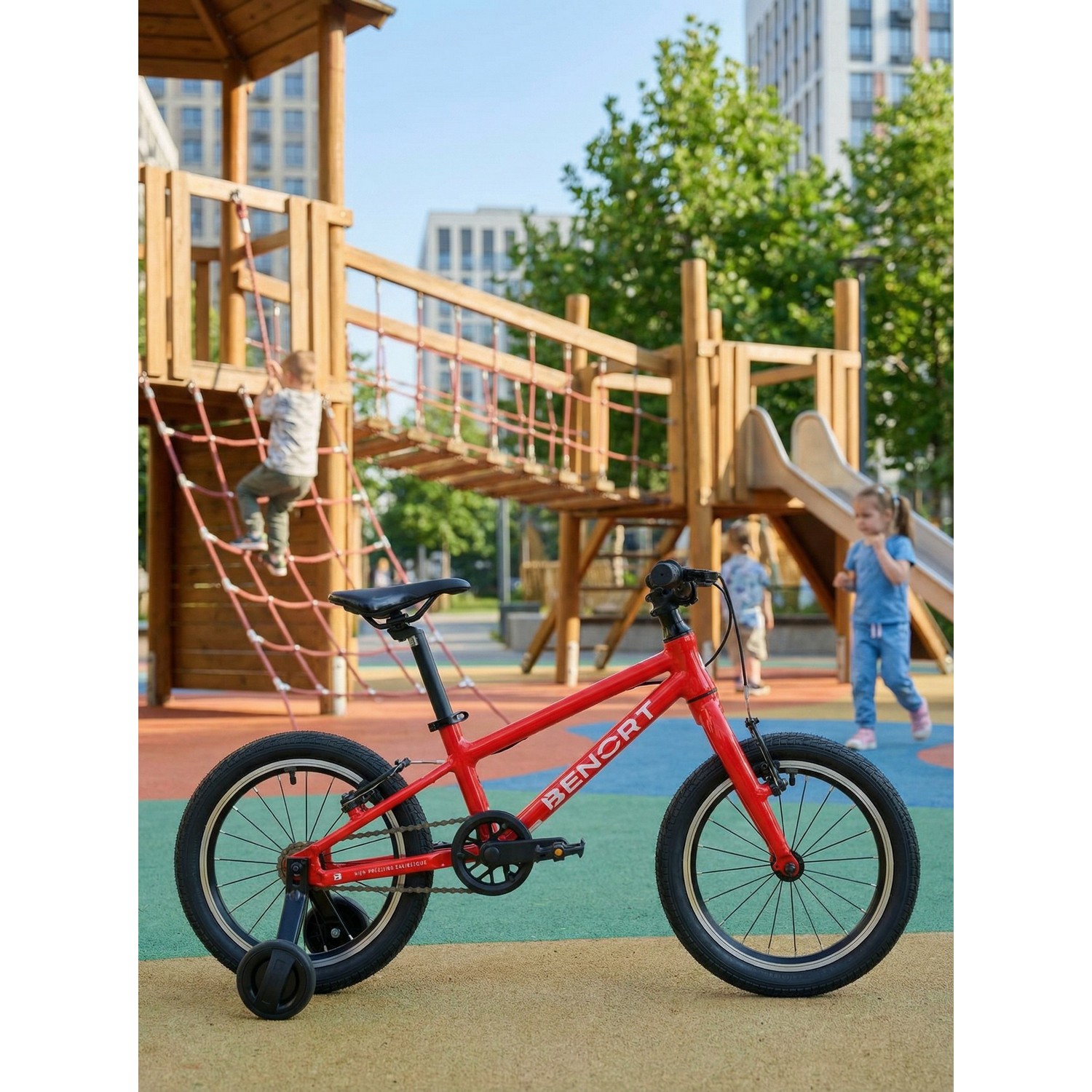 Детский велосипед Benort Amber 16 создан для первых уверенных шагов в мир велоспорта. Его легкая рама и жесткая вилка из алюминиевого сплава 6061 обеспечивают низкий вес (всего 7,5 кг) и отличную управляемость. Благодаря инновационной технологии компенсации швов рама и вилка выглядят почти бесшовными, придавая байку стильный и современный облик. Ободные тормоза с эргономичными ручками, адаптированными под маленькую ладонь, обеспечивают надежное и безопасное торможение. В комплекте — съёмные боковые колёса для обучения и плпастиковая защита звезды, предотвращающая попадание одежды в цепь. Анатомическое спортивное седло делает поездки максимально комфортными даже на длительных дистанциях.