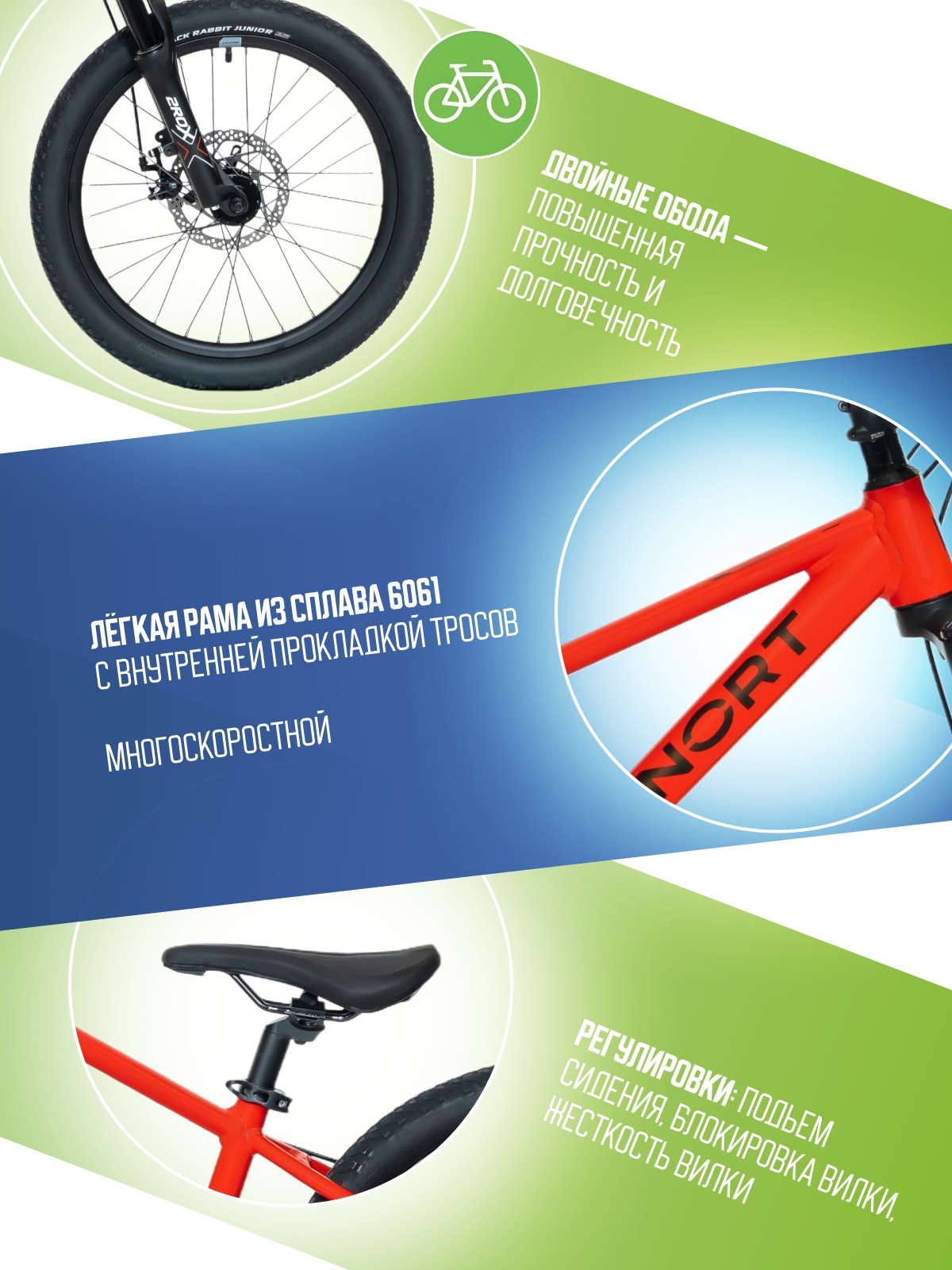 - Рама и вилка из лёгкого и прочного алюминия 6061