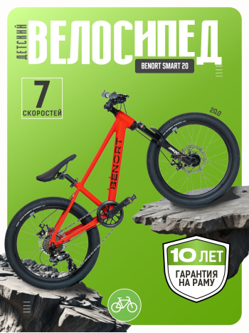 Детский велосипед Benort Smart 20 — отличный выбор для ребёнка, который уже уверенно держится в седле и готов к более активным поездкам по городу и лёгкому бездорожью. Благодаря амортизационной вилке с оптимальным ходом 50 мм юный райдер будет чувствовать себя комфортно даже на неровной дороге. Лёгкая алюминиевая рама из сплава 6061 с внутренней прокладкой тросов придаёт велосипеду современный, аккуратный вид и защищает управляющие элементы от повреждений. 7-скоростная трансмиссия Shimano Tourney позволяет легко подбирать передачу под любой рельеф, а дисковые механические тормоза обеспечивают надёжное и предсказуемое торможение в любых погодных условиях. Удобные тормозные ручки, разработанные специально для детской ладони, делают управление интуитивным и безопасным. Втулки с промышленными подшипниками обеспечивают плавный накат, снижают вес и увеличивают срок службы компонентов. Benort Smart 20 — это надёжный, функциональный и комфортный транспорт для юных райдеров.