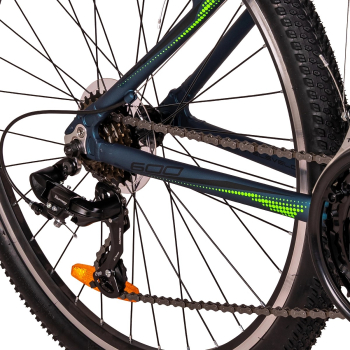 Передает вращение от шатунов на кассету. Теоретически цепь представляет собой подшипники скольжения (втулки), соединенные между собой боковыми пластинами. Цепи разнятся по длине, то есть количеству звеньев, и по ширине. Чем больше скоростей на велосипеде, тем цепь уже. Данный элемент является открытым, поэтому нуждается в частой смазке и чистке. Во многом плавное переключение передач, а соответственно и ход велосипеда зависят от смазки цепи и степени ее загрязнения.