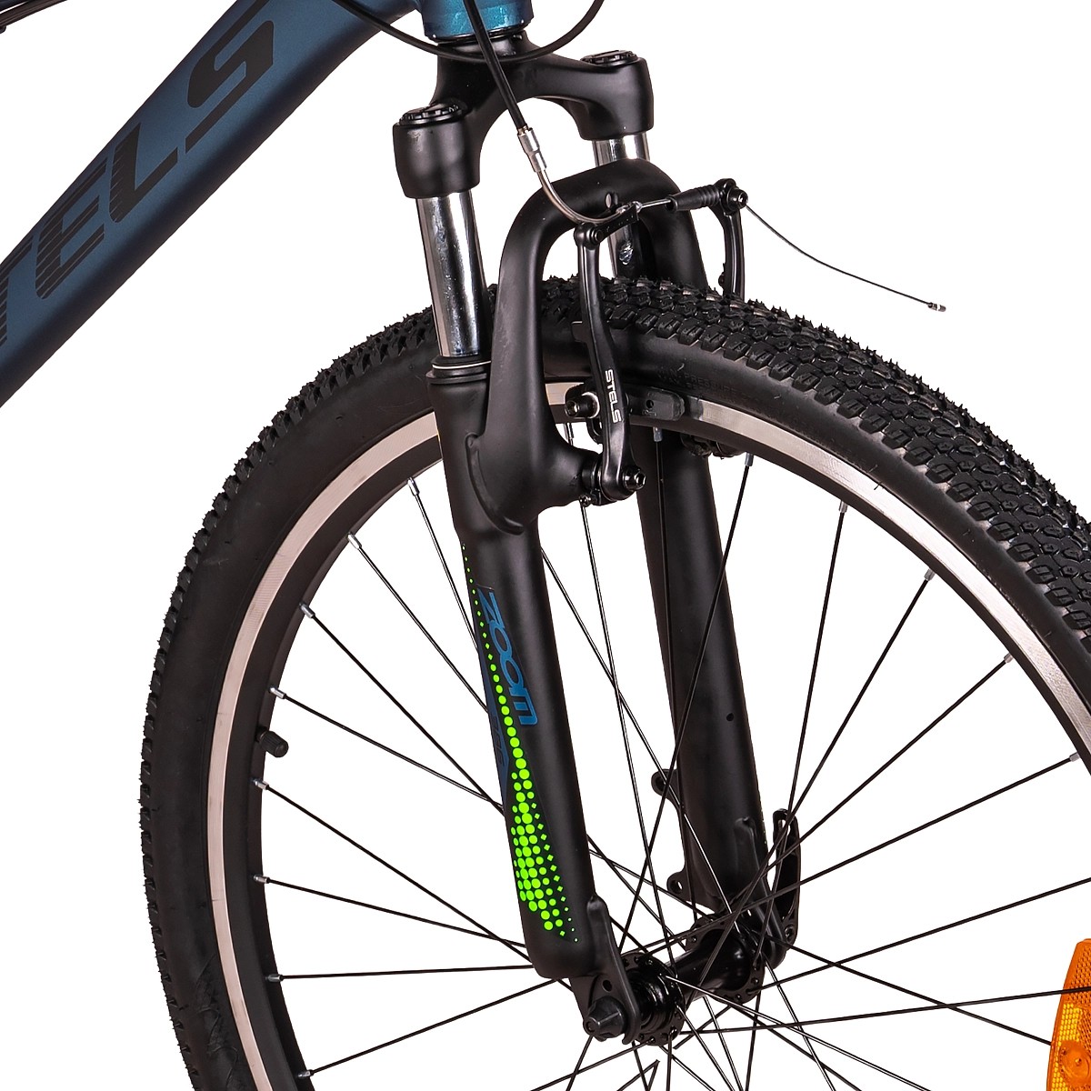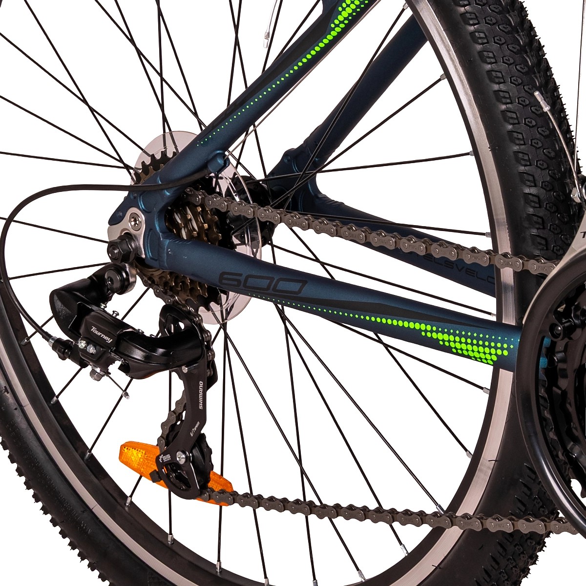 Женский горный велосипед с навесным оборудованием Shimano, 21 скорость. Технические особенности: легкая алюминиевая рама (открытая проводка, кареточный стакан BSA, прямой рулевой стакан, съемный петух), амортизационная вилка (пружинно-эластомерная, ход 60 мм, крепление калипера IS и под V-brake), двойные алюминиевые обода (под AV ниппель), надежные ободные тормоза V-brake, защита цепи, катафоты, подножка. Подходит для прогулочного катания в городских условиях и по несложным маршрутам в лесу. Диаметр колес - 26 дюймов. Вес - 14,32 кг.