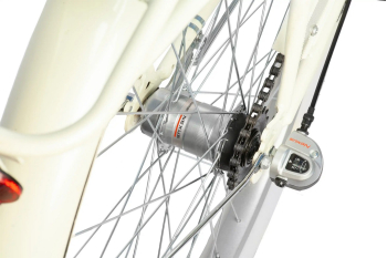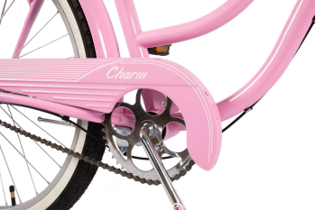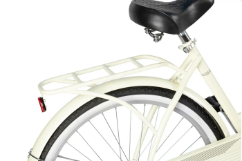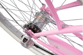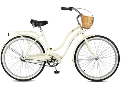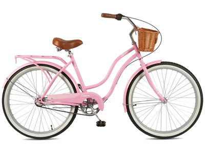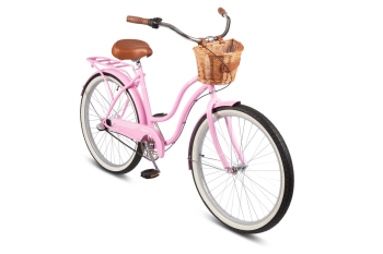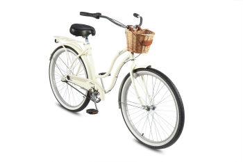 Женский комфортабельный круизер с оборудованием планетарного типа Shimano, 3 скорости. Технические особенности: прочная стальная рама (Hi-Ten, прямой рулевой стакан, интегрированный багажник), жесткая стальная вилка, одинарные стальные обода (под ниппель AV), ножные педальные тормоза, полноразмерные крылья, защита цепи, задний багажник, комфортное седло с пружинами, передняя корзина, подножка. Подходит для прогулочного катания в городских условиях. Диаметр колес - 26 дюймов. Вес - 17,2 кг.
