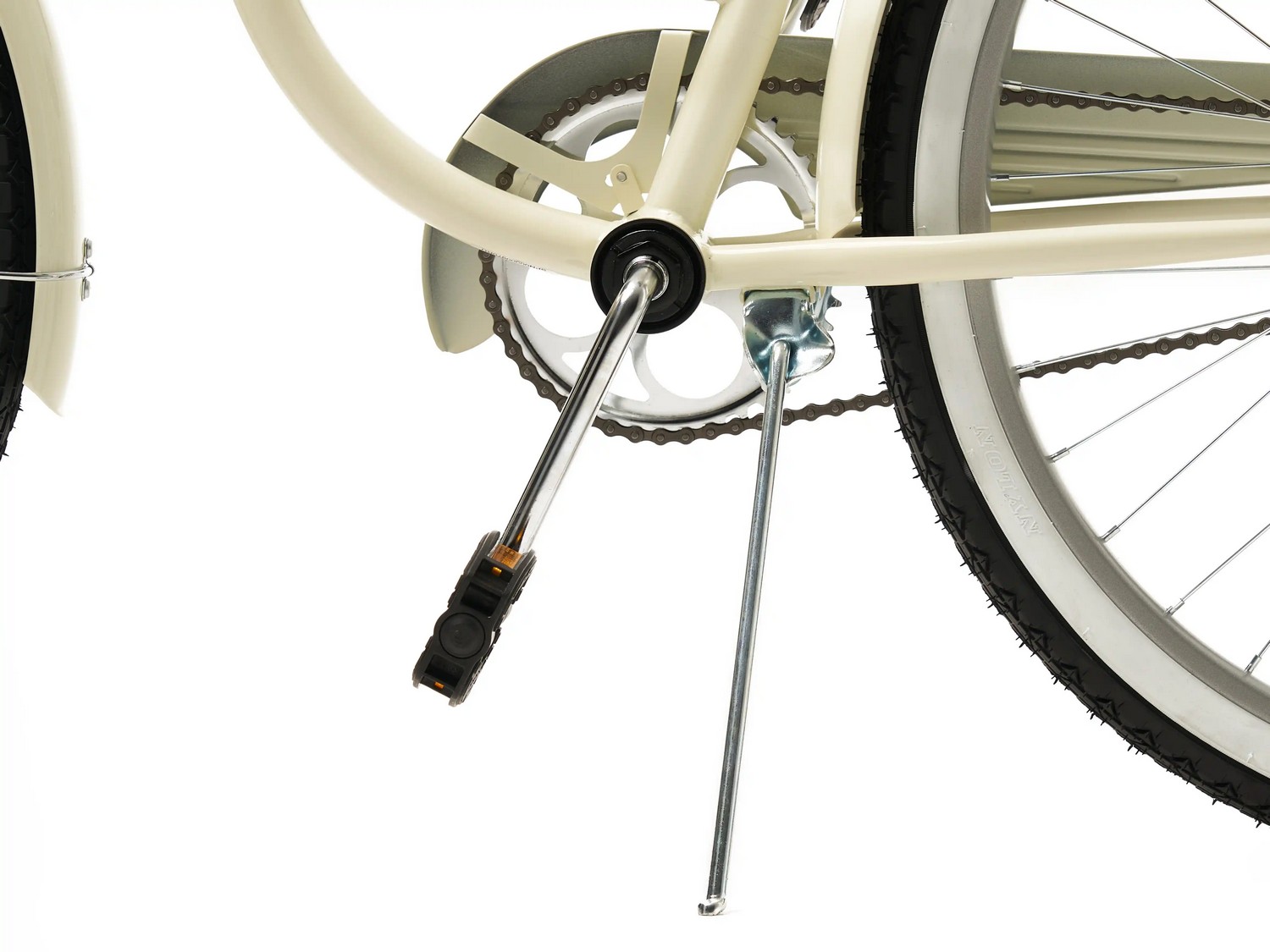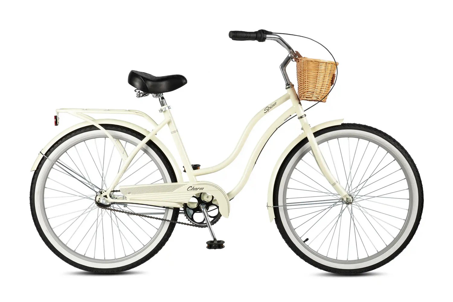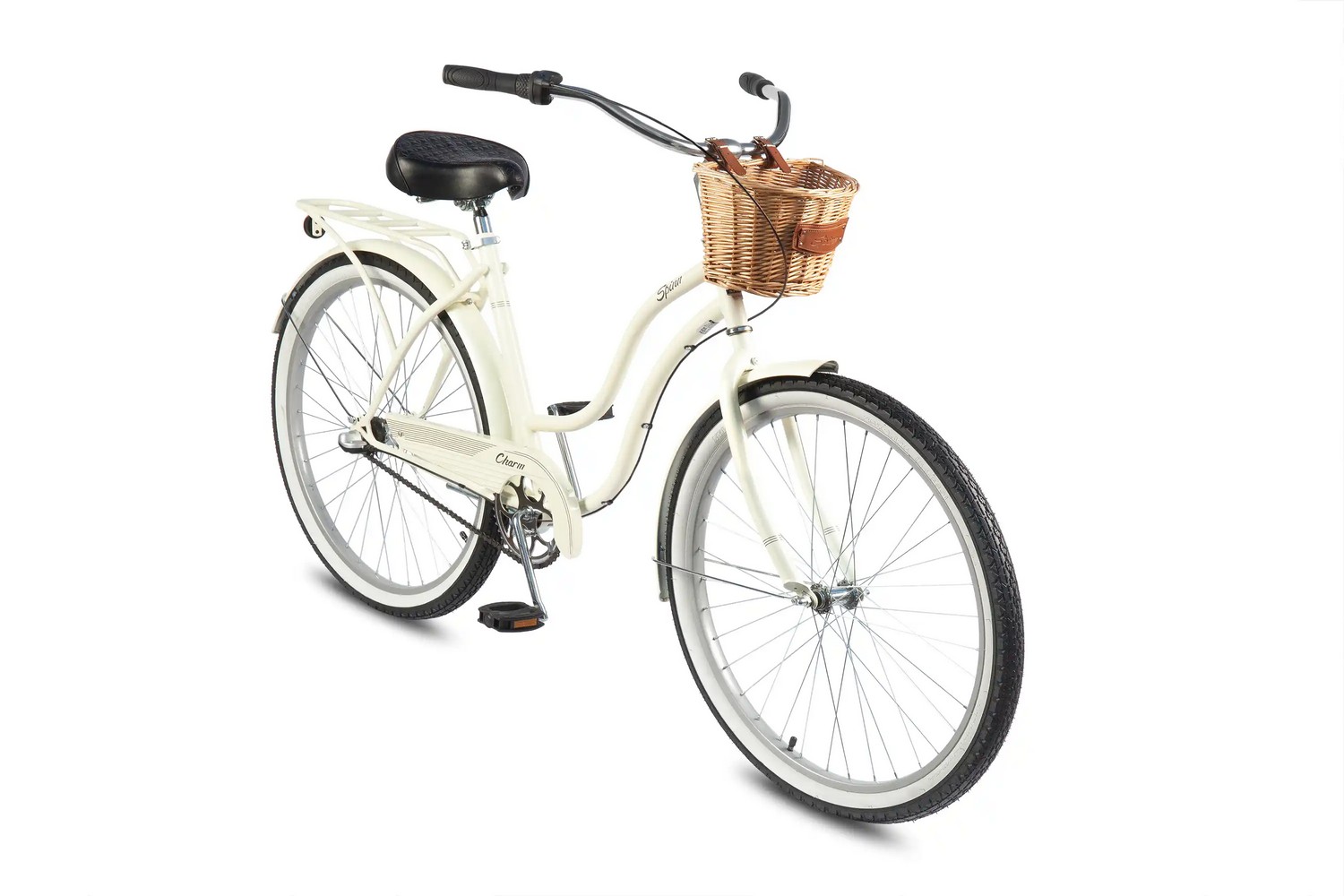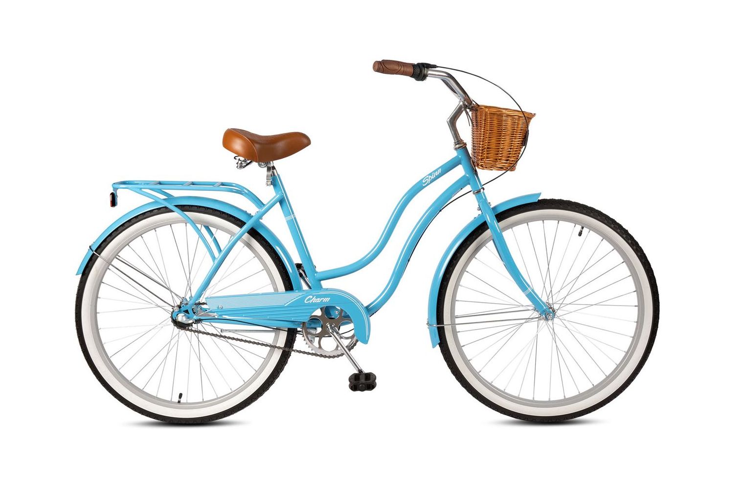 Женский комфортабельный круизер с оборудованием планетарного типа Shimano, 3 скорости. Технические особенности: прочная стальная рама (Hi-Ten, прямой рулевой стакан, интегрированный багажник), жесткая стальная вилка, одинарные стальные обода (под ниппель AV), ножные педальные тормоза, полноразмерные крылья, защита цепи, задний багажник, комфортное седло с пружинами, передняя корзина, подножка. Подходит для прогулочного катания в городских условиях. Диаметр колес - 26 дюймов. Вес - 17,2 кг.