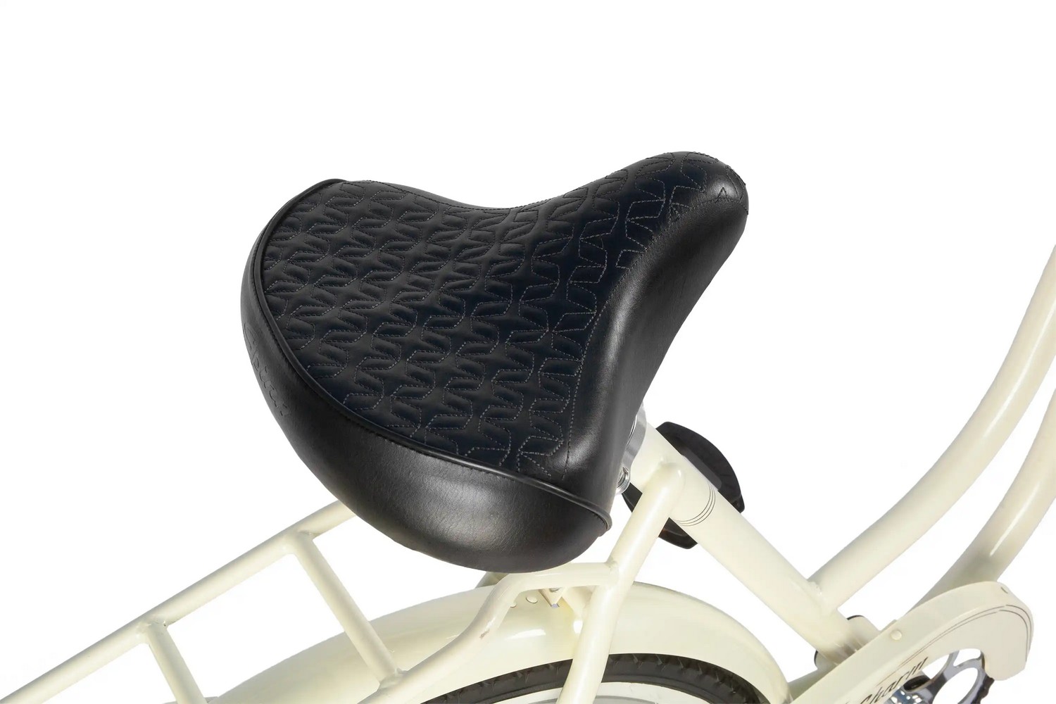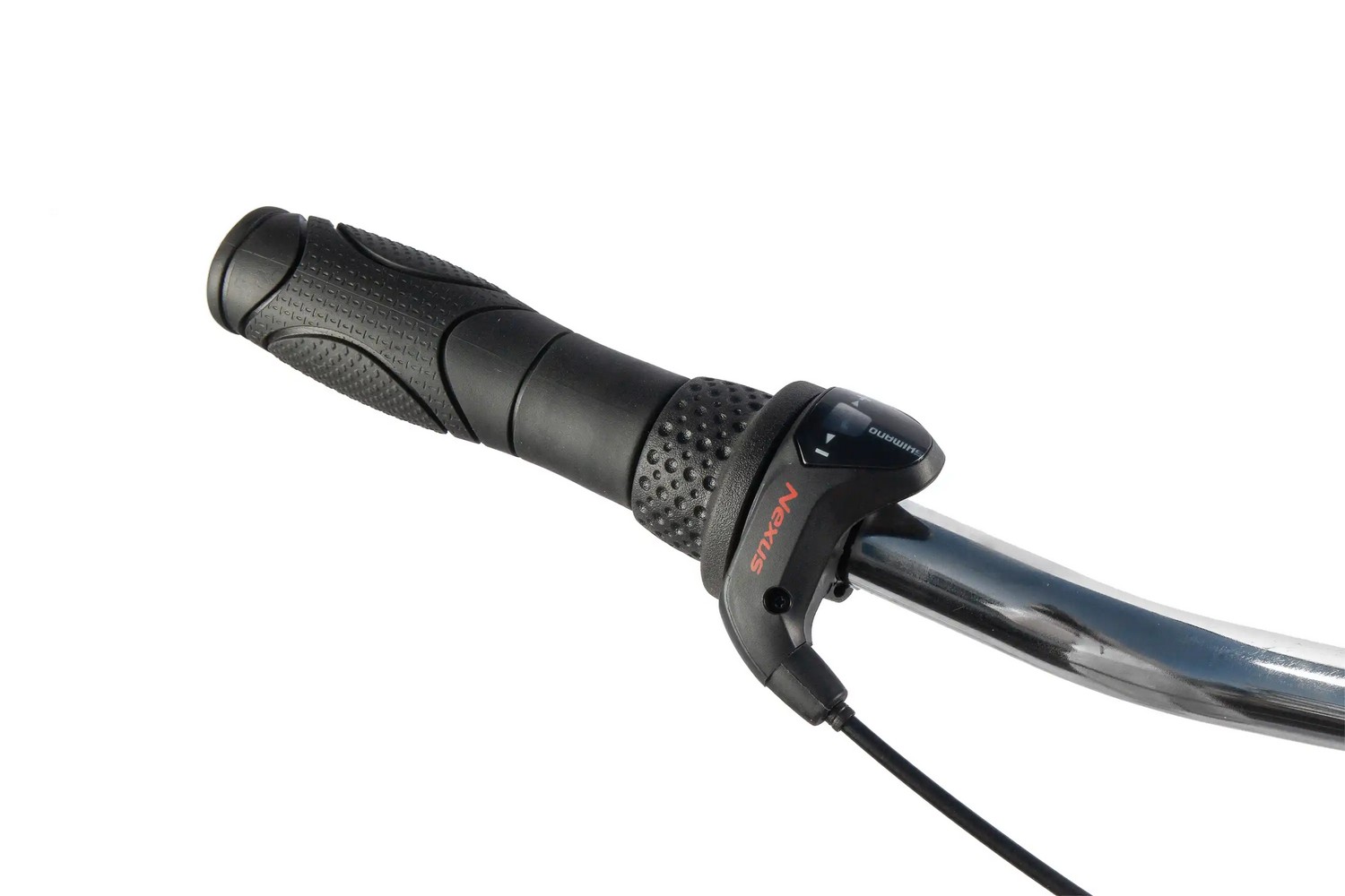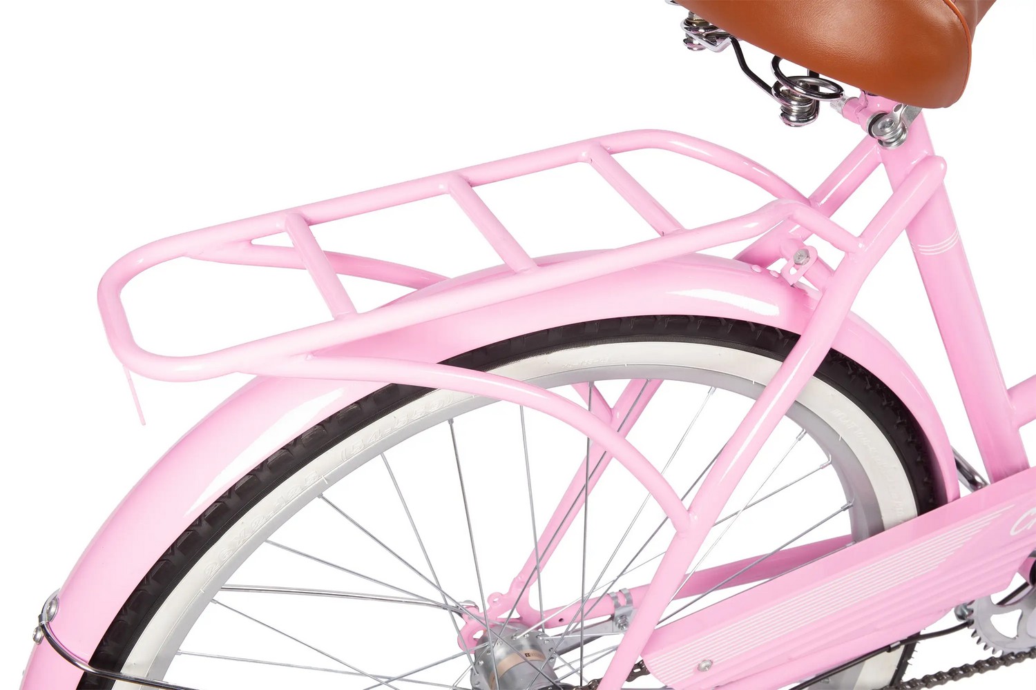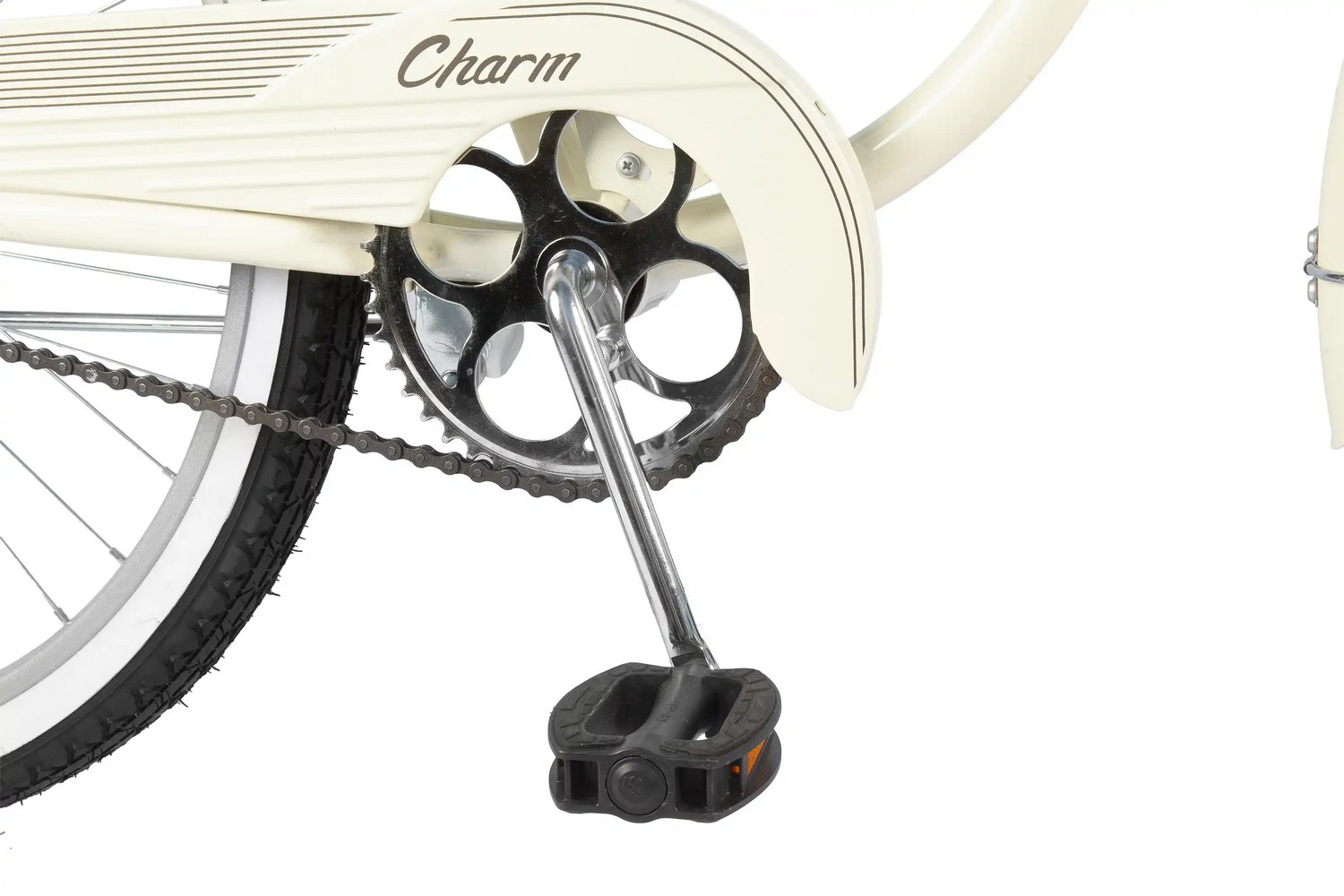 Женский комфортабельный круизер с оборудованием планетарного типа Shimano, 3 скорости. Технические особенности: прочная стальная рама (Hi-Ten, прямой рулевой стакан, интегрированный багажник), жесткая стальная вилка, одинарные стальные обода (под ниппель AV), ножные педальные тормоза, полноразмерные крылья, защита цепи, задний багажник, комфортное седло с пружинами, передняя корзина, подножка. Подходит для прогулочного катания в городских условиях. Диаметр колес - 26 дюймов. Вес - 17,2 кг.